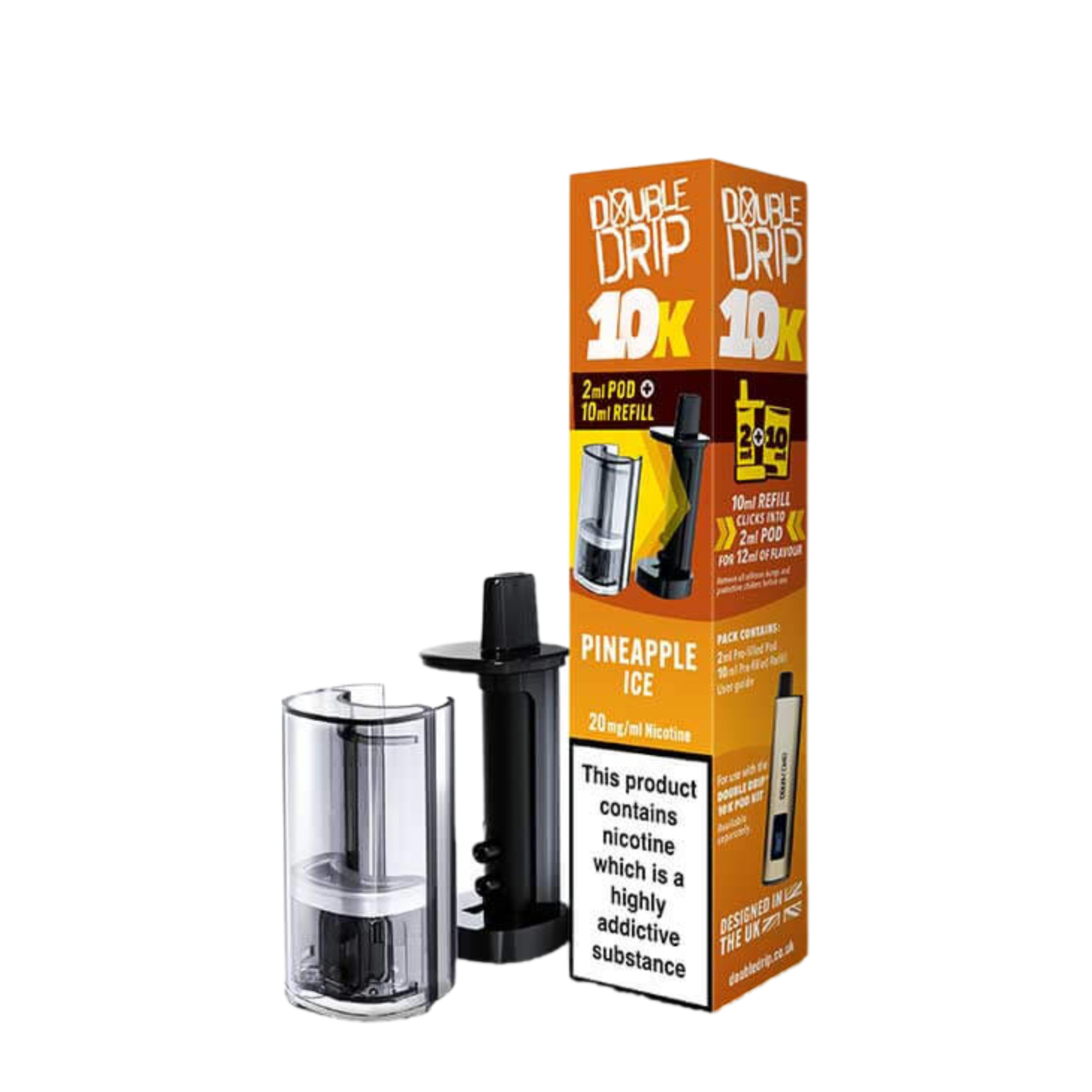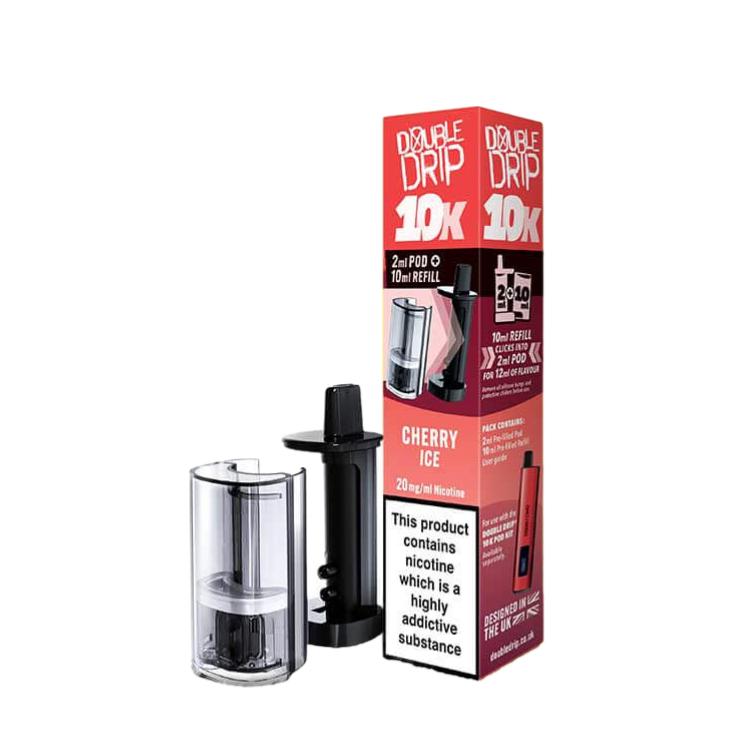 The Double Drip 10k Refill Pack has been designed to keep your device performing at its best and is specifically made for use with the Double Drip 10k Prefilled Vape Kit. Each pack includes a 2ml prefilled pod and a 10ml refill container, both built with longevity in mind. These pods are not only cost effective but also incredibly easy to use. When the 2ml pod starts to run low, the 10ml refill container automatically fills it back up, allowing you to vape for longer without interruption.
