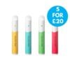 With 20mg nicotine strength, the Aquios Bar delivers both purer taste and smoother vapour along with a faster satisfaction than most traditional disposable vapes. The built in 450mAh battery ensures that it will last up to approximately 600 puffs with each of the flavours on offer. Each Aquois Bar has a lower vaping temperature as well and has reduced dehydration with it being 30% water.