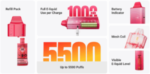 The exact number of puffs you get will depend on how you vape. Taking longer or deeper draws will naturally use up the liquid faster, while lighter puffs can help stretch it out. But in generaly 5500 puffs is enough to last a couple of days before needing a replacement.