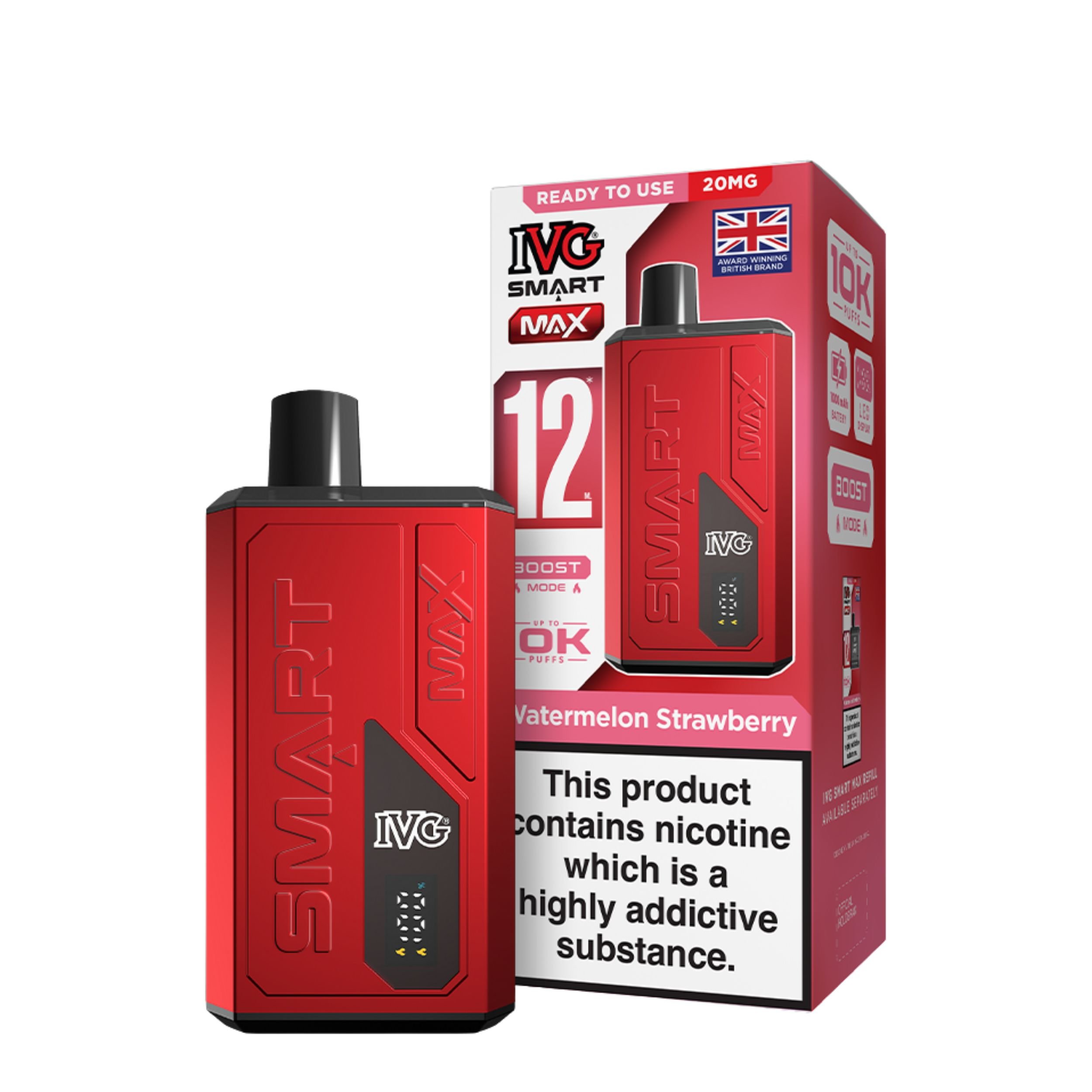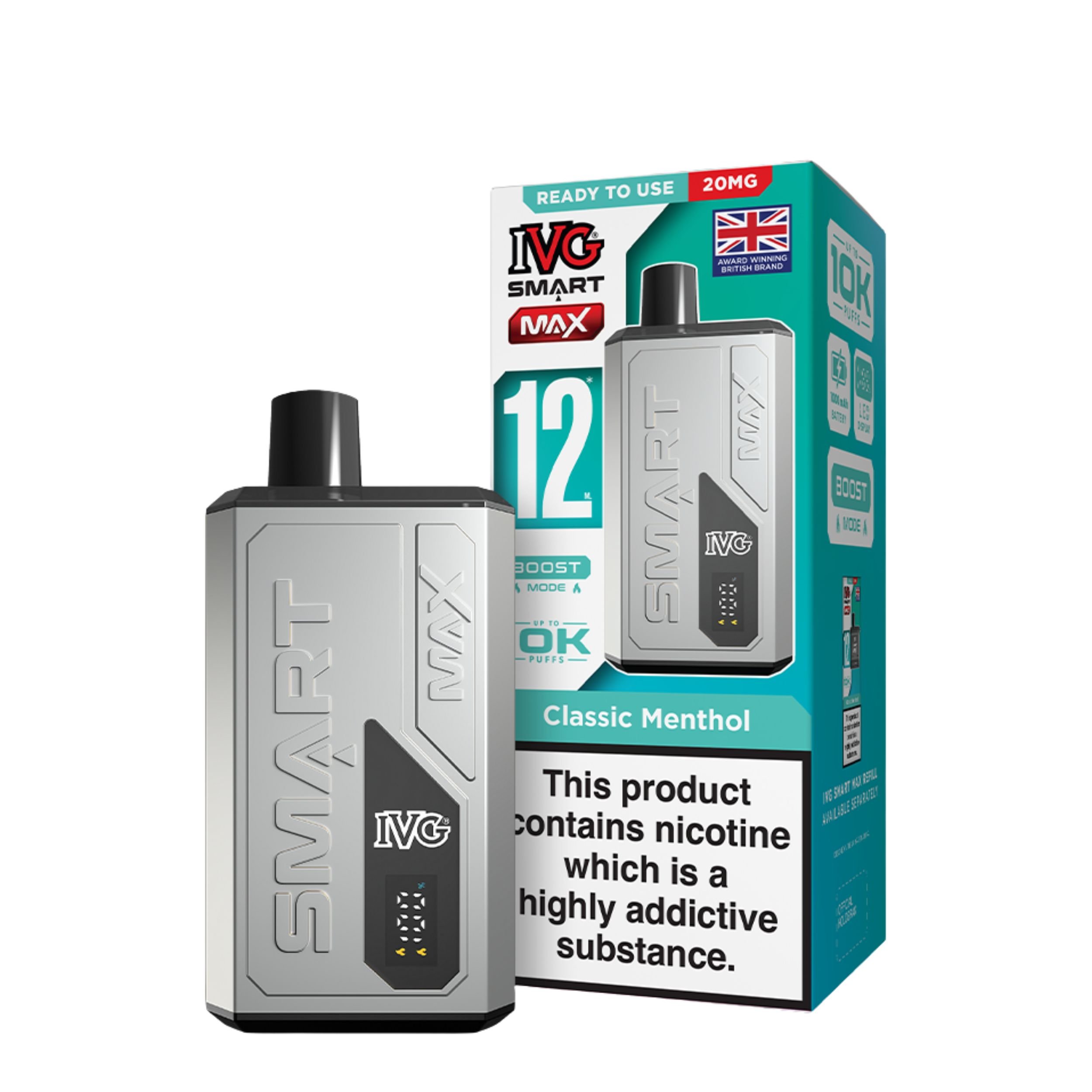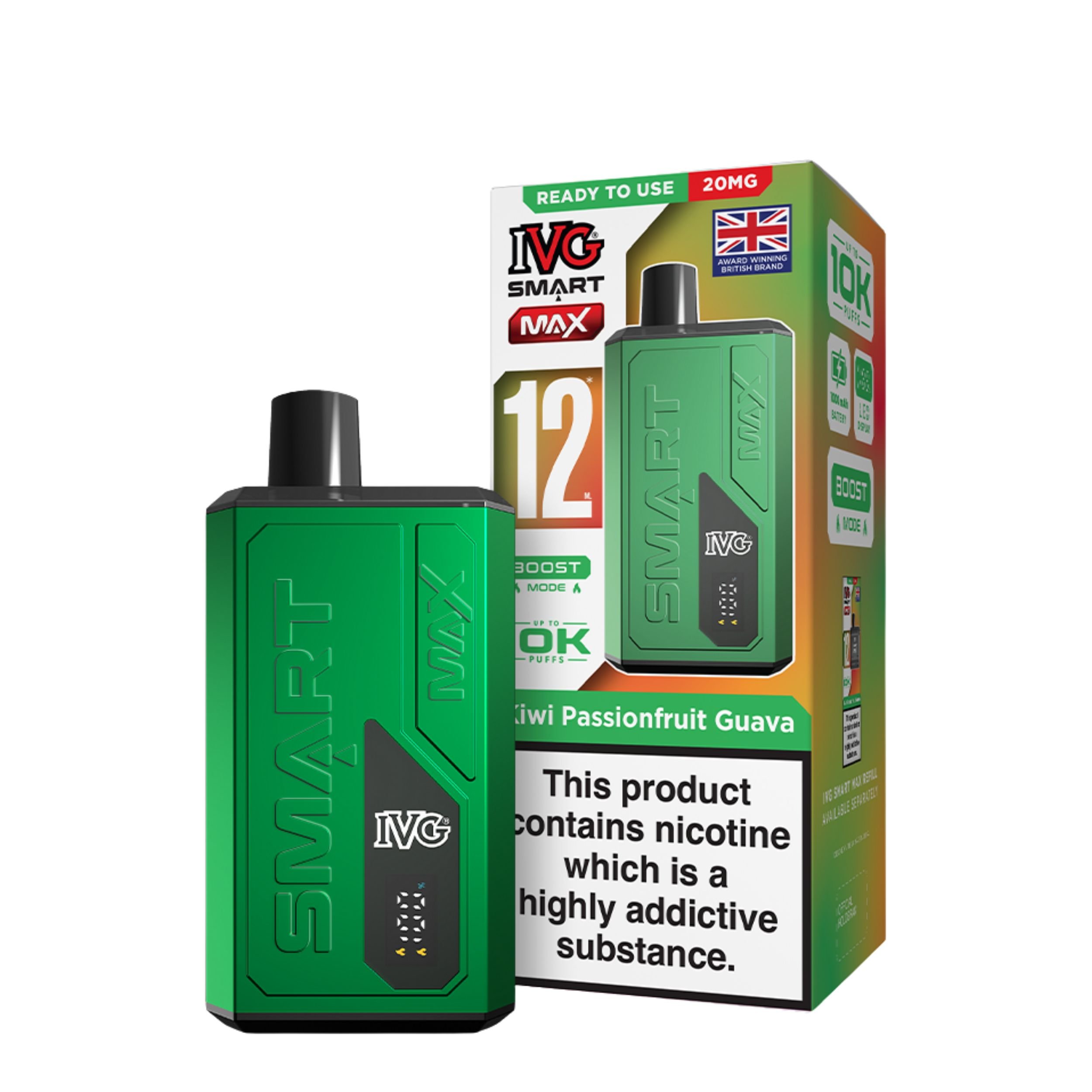 Looking for a hassle free and powerful vape? The IVG Smart Max Prefilled Pod Vape Kit is your new go to device. Packed with smart features and designed by one of the UK’s most trusted vape brands, IVG, this device blends performance, convenience, and quality in one sleek package.