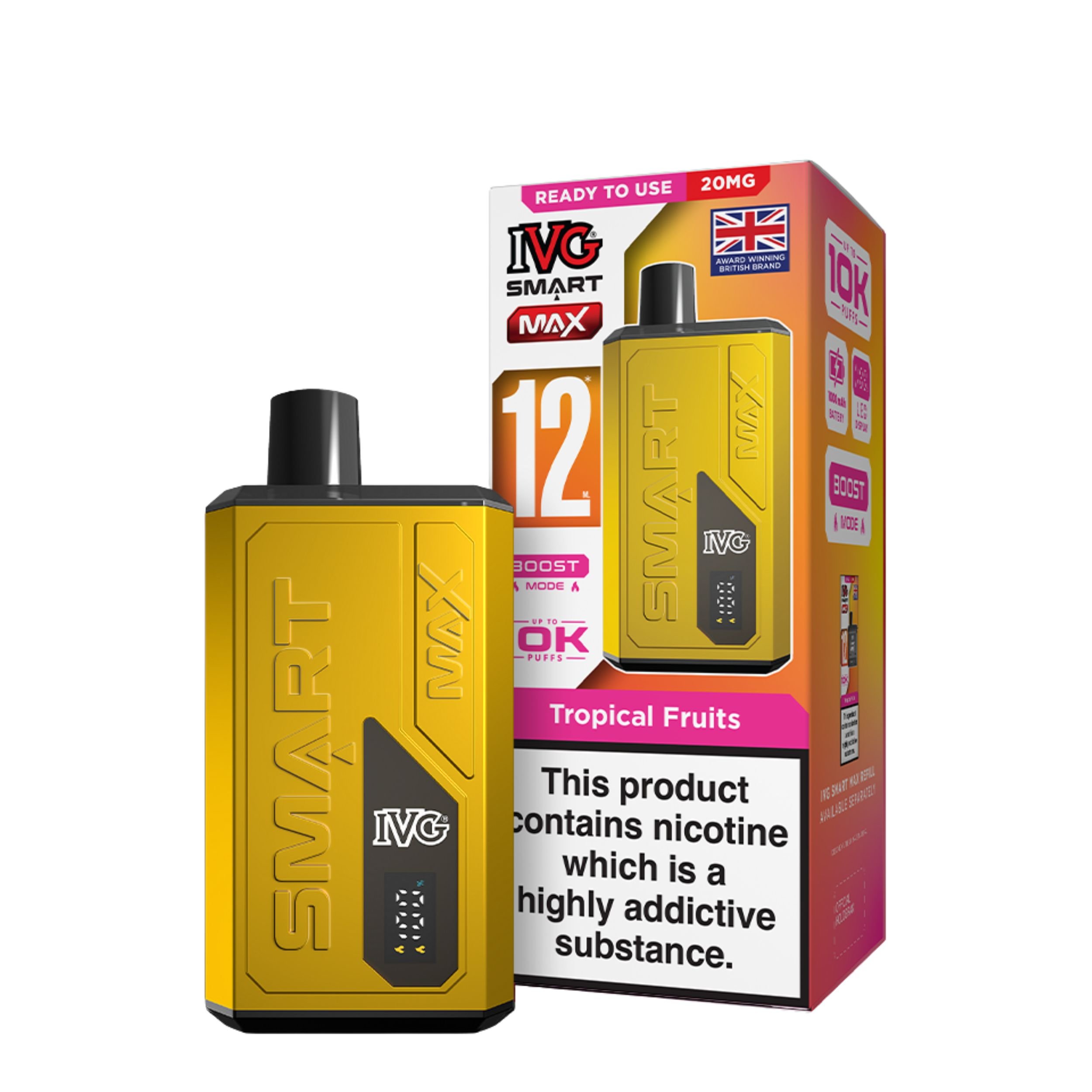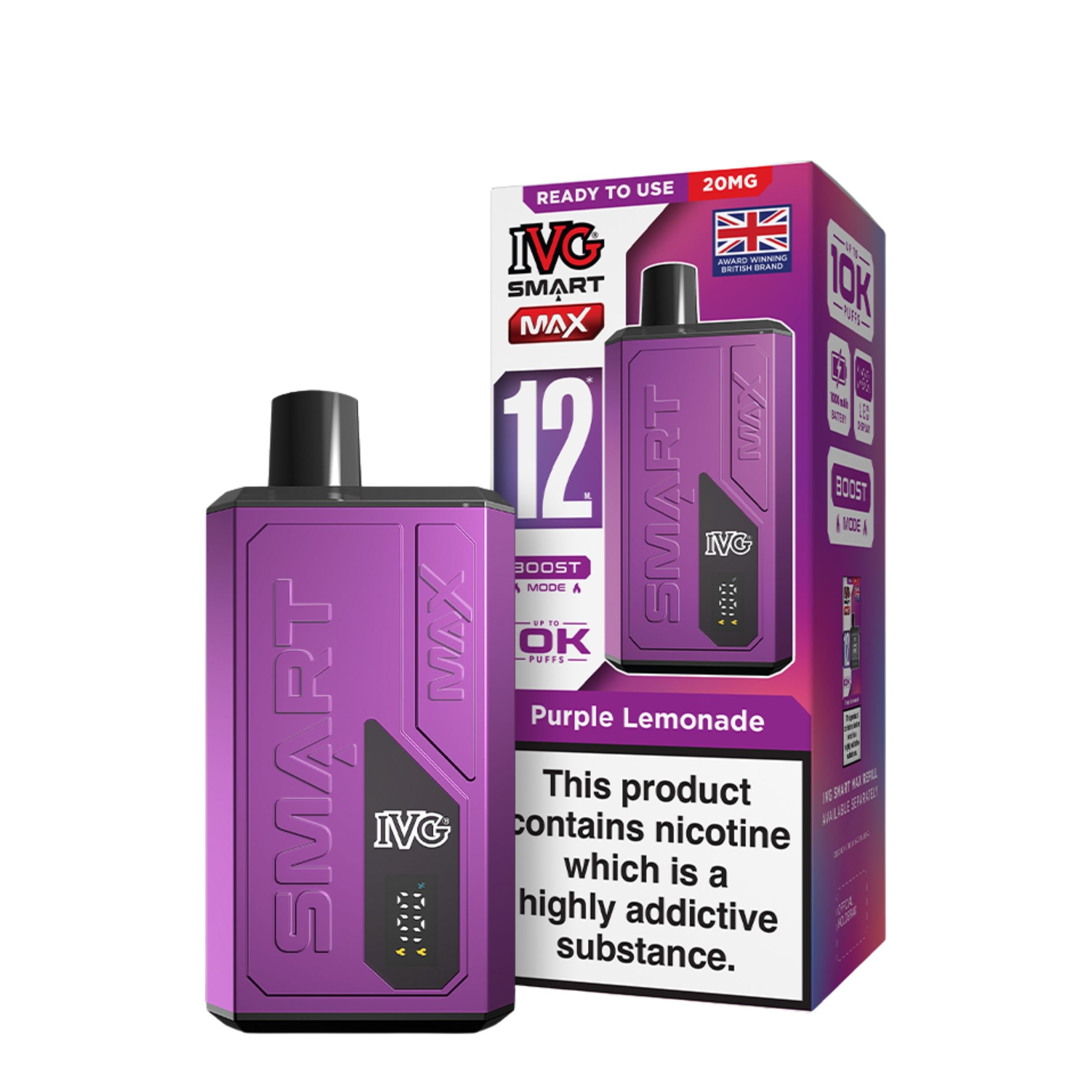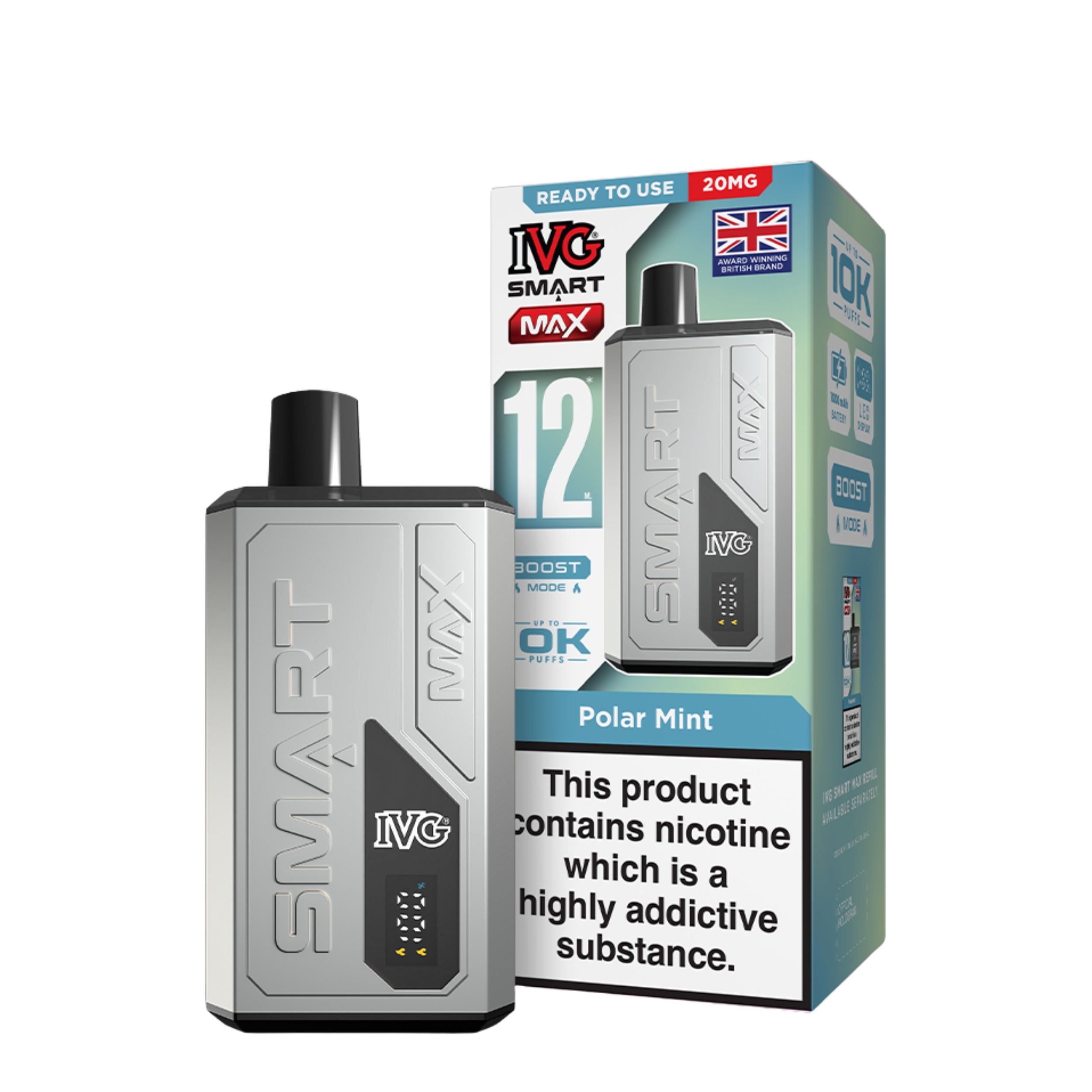 Looking for a hassle free and powerful vape? The IVG Smart Max Prefilled Pod Vape Kit is your new go to device. Packed with smart features and designed by one of the UK’s most trusted vape brands, IVG, this device blends performance, convenience, and quality in one sleek package.