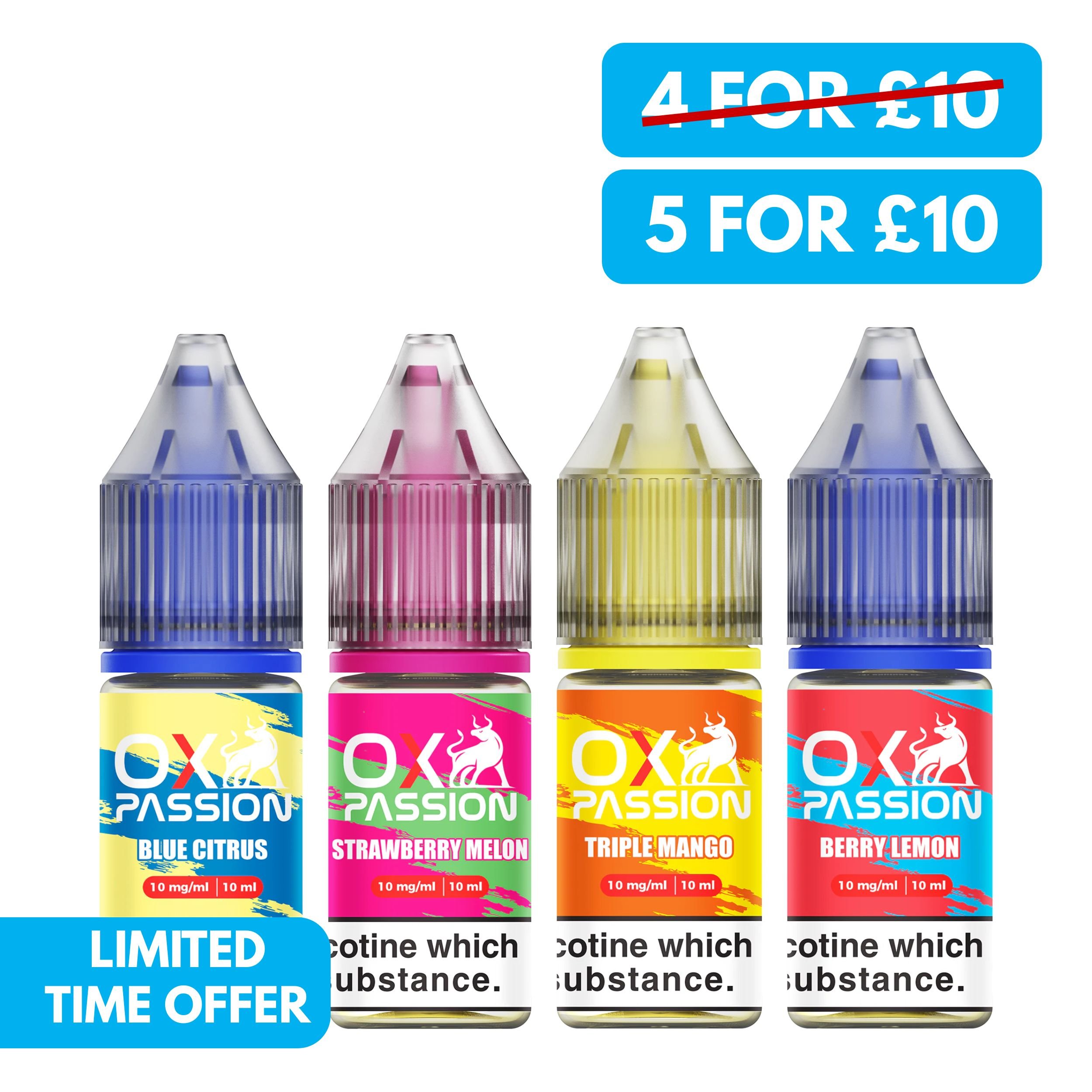The OX Passion liquids are a nicotine salt e-liquid, offering quick craving relief by being absorbed into the bloodstream faster, and with a more gentle throat hit compared to freebase liquids.