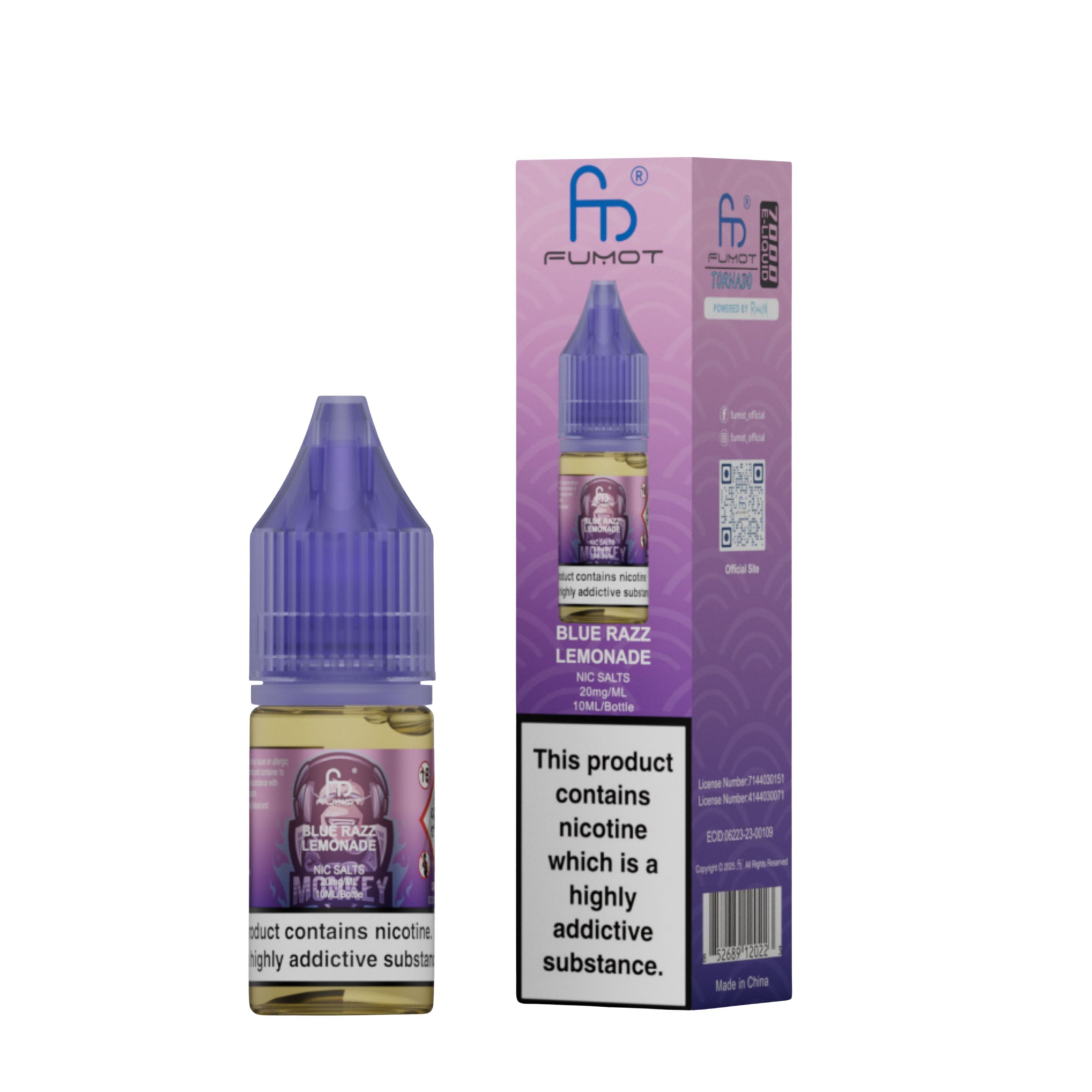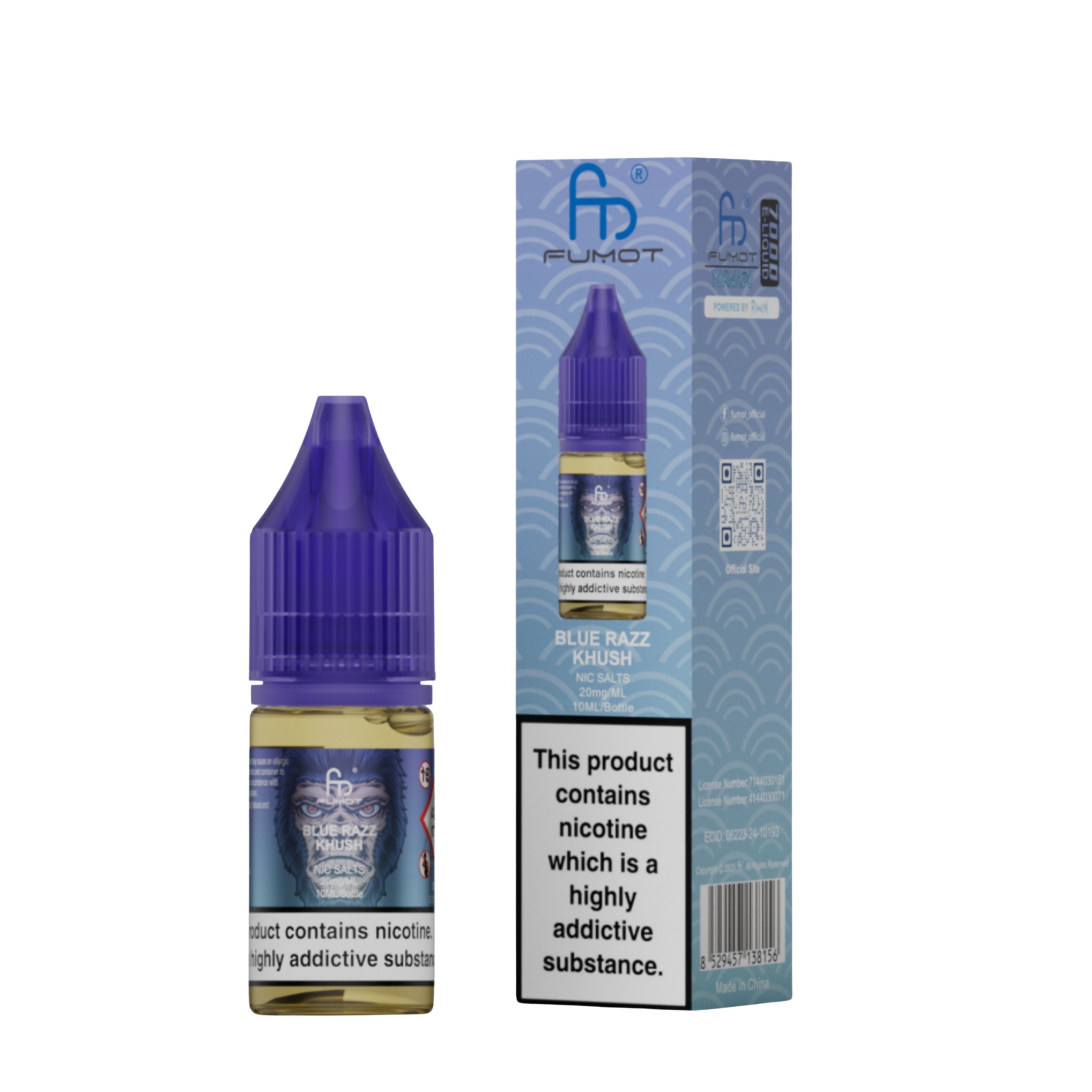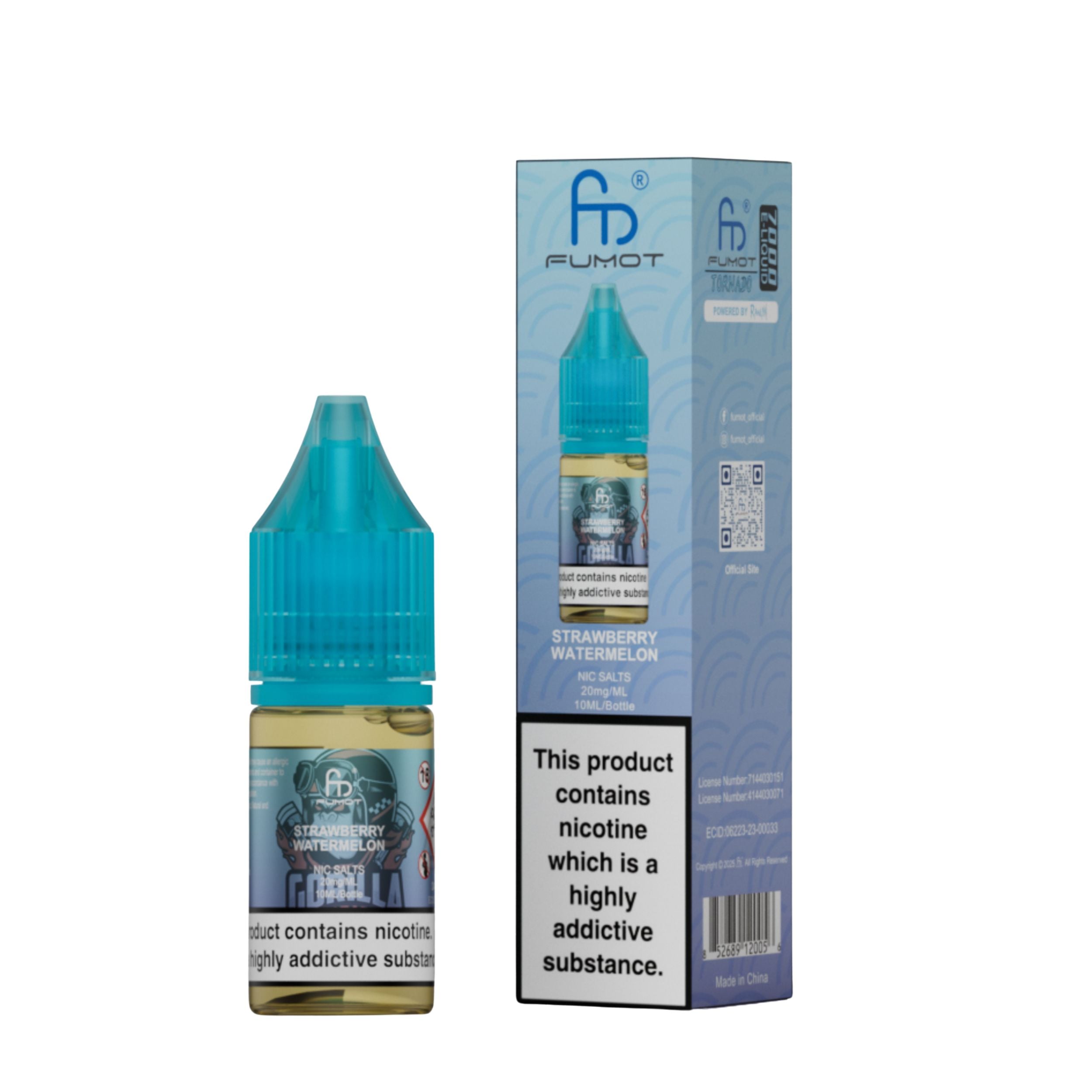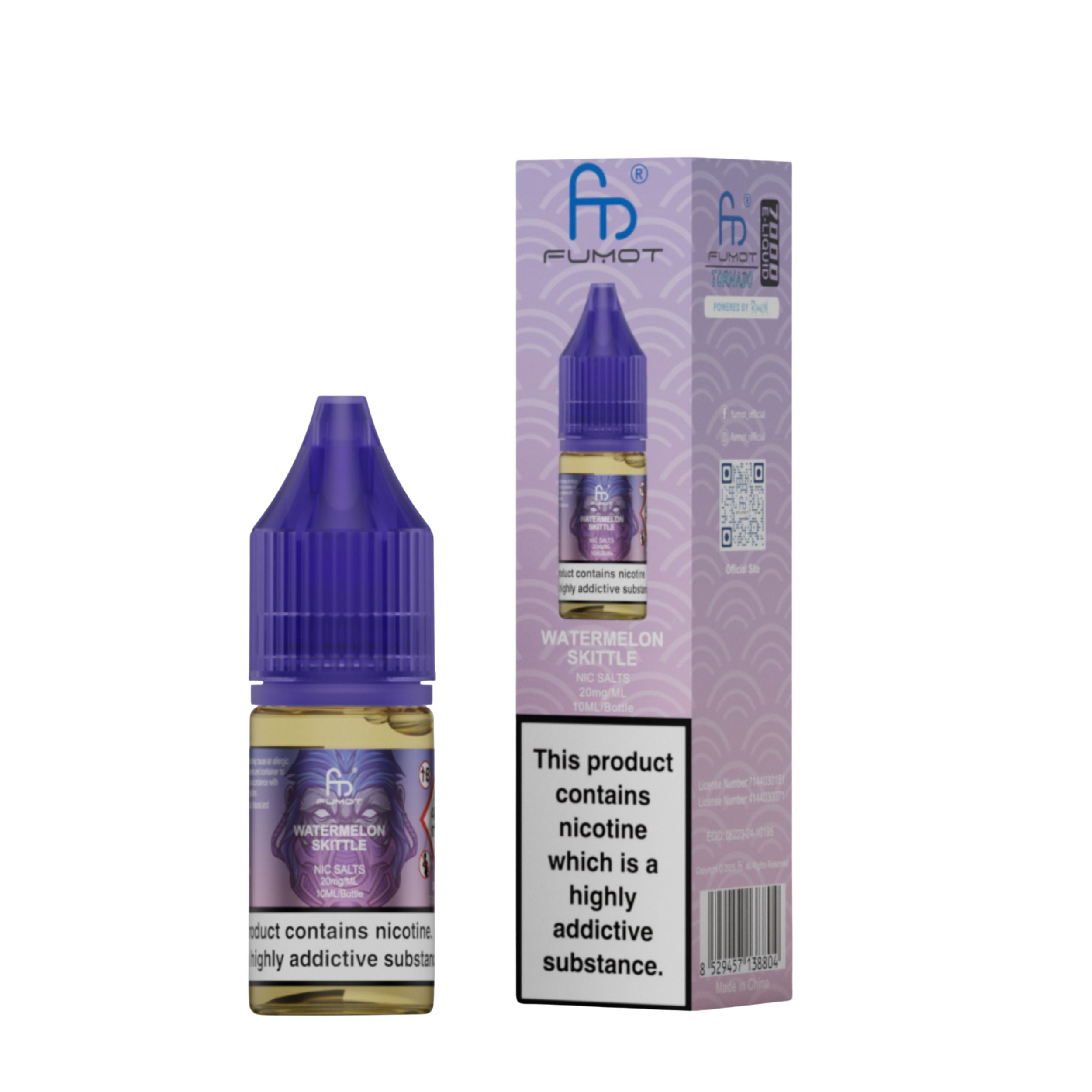 Each bottle contains 10ml of e-liquid in a 20mg nicotine strength. R and M Nic Salts are a 50VG/50PG ratio which makes them perfect for pod kits and a mouth-to-lung (MTL) vaping style. 10ml of e-liquid is roughly equivalent to 3200 puffs. The nic salt comes with a childproof cap and tamper-evident seal for secure, worry-free use. Ecologically friendly with a recyclable bottle and box.