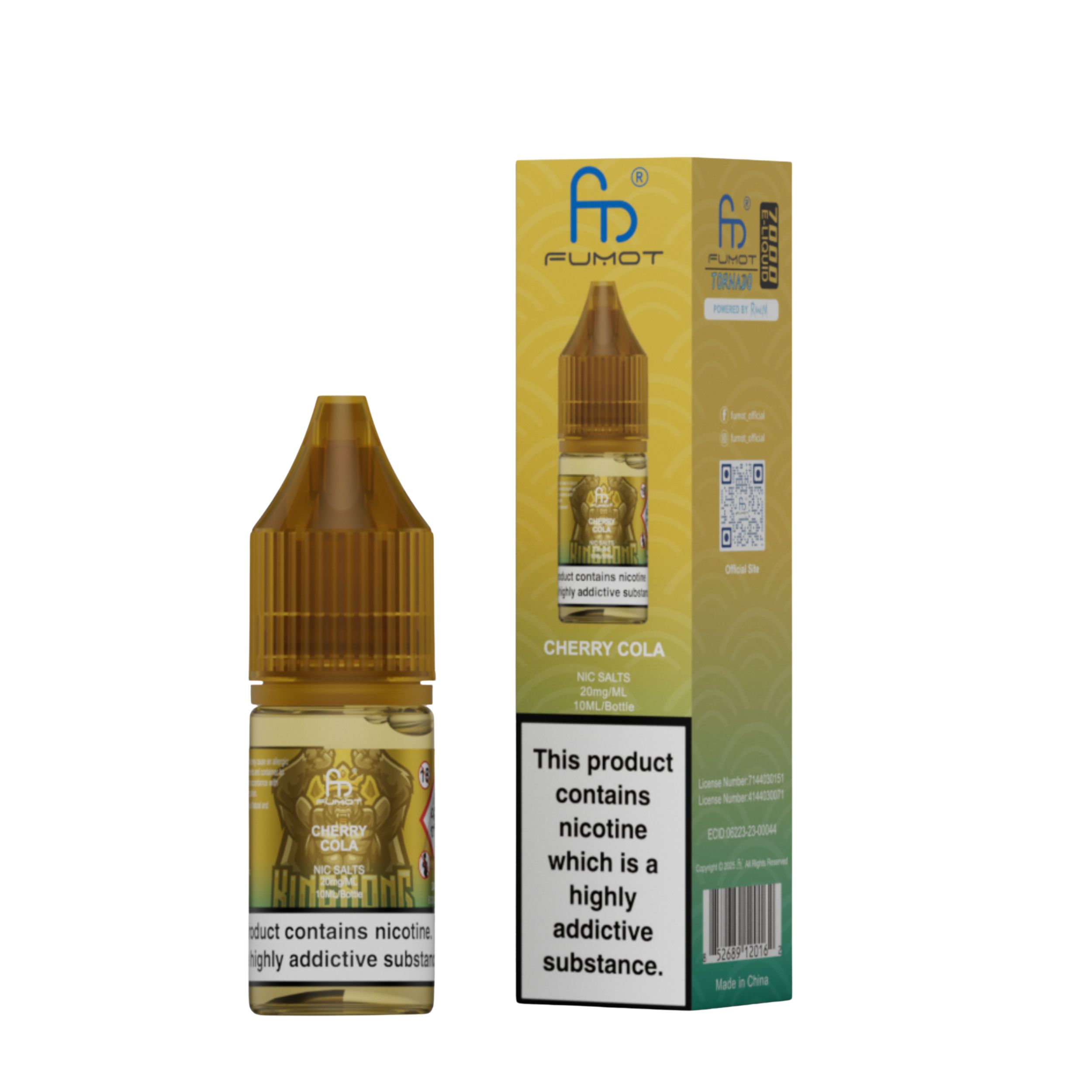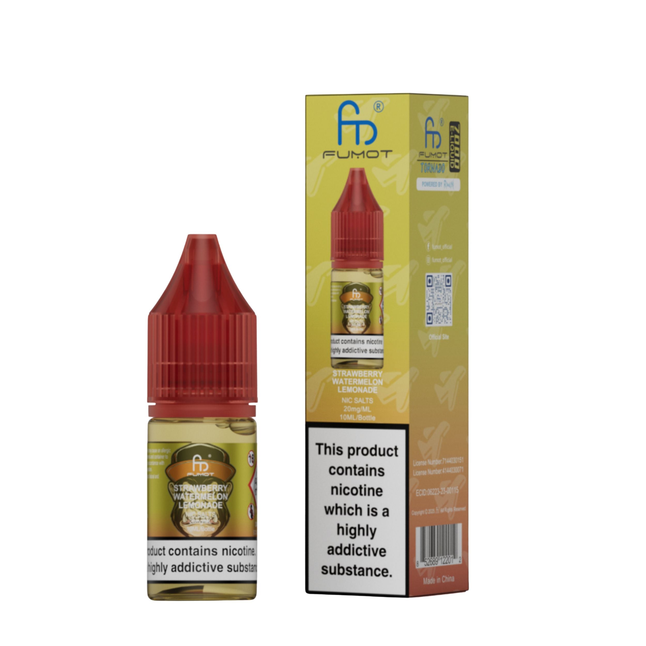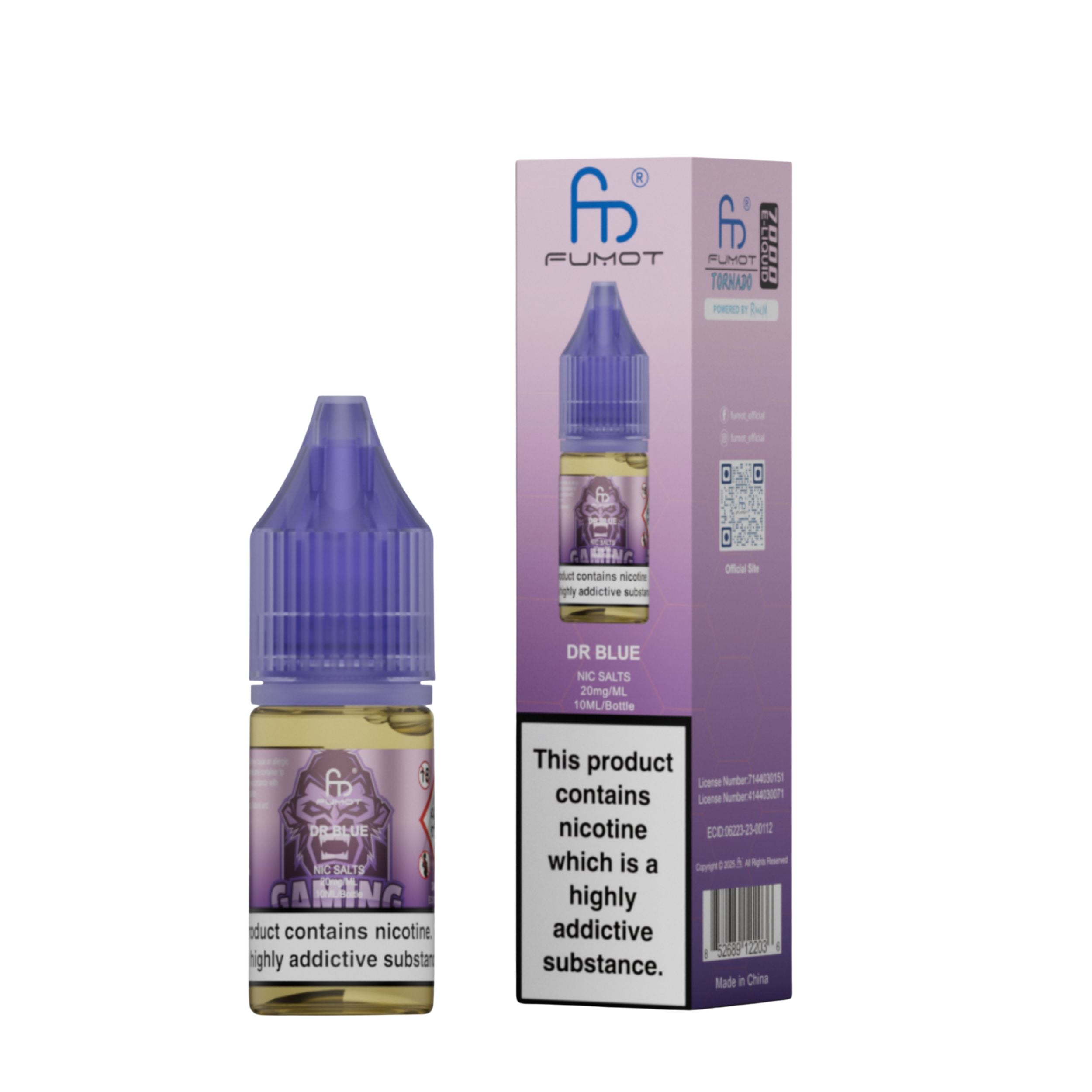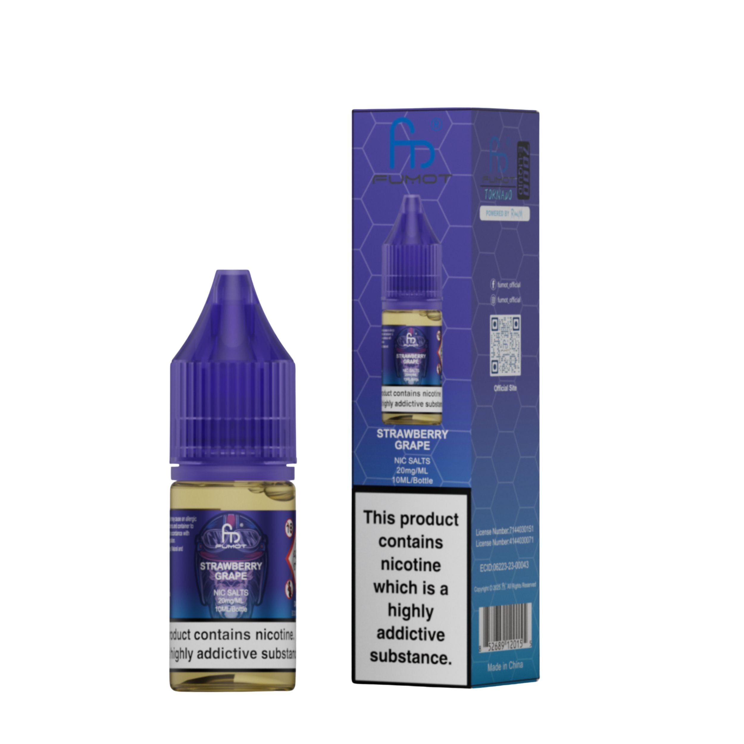 Each bottle contains 10ml of e-liquid in a 20mg nicotine strength. R and M Nic Salts are a 50VG/50PG ratio which makes them perfect for pod kits and a mouth-to-lung (MTL) vaping style. 10ml of e-liquid is roughly equivalent to 3200 puffs. The nic salt comes with a childproof cap and tamper-evident seal for secure, worry-free use. Ecologically friendly with a recyclable bottle and box.