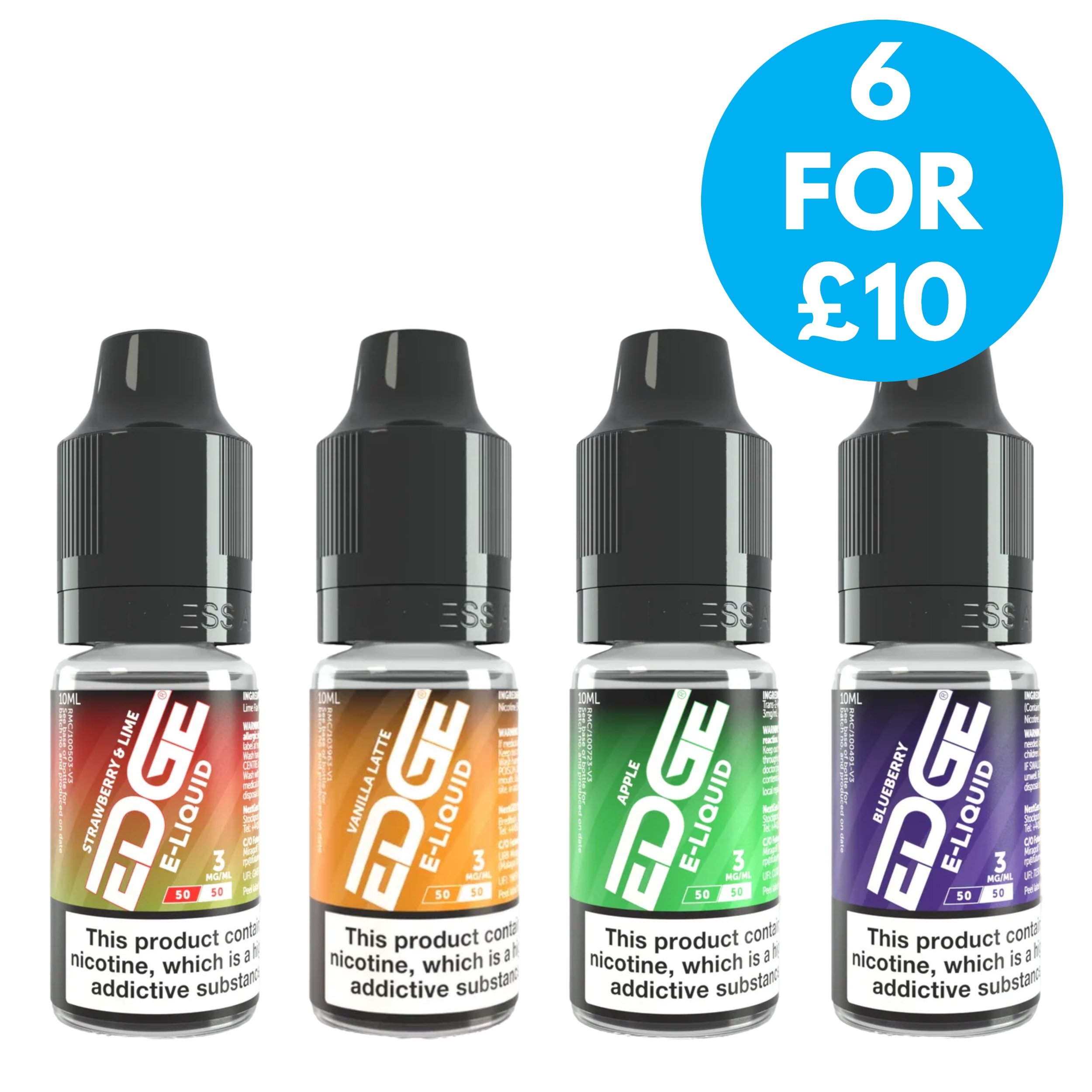 Introducing the latest e-liquids from EDGE, a brand committed to helping smokers make the switch by delivering premium, flavour packed products. Known as one of the UK’s top selling e-liquid brands, EDGE offers a wide range of strengths to suit every stage of your journey, including 0mg, 3mg, 6mg, 12mg, and 18mg. EDGE e-liquids are available in freebase and nic salt options, with a huge variety of flavours ranging from sweet and fruity to minty and refreshing.