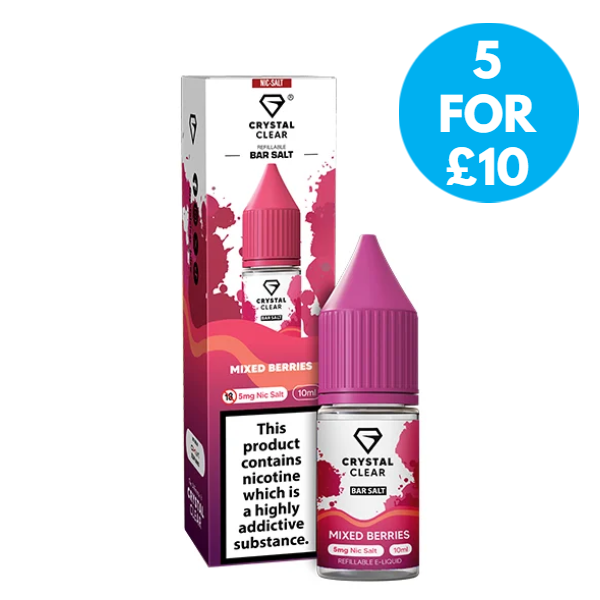 Crystal Clear Bar Nic Salts are now available in a brand new 5mg nicotine strength, which is an ideal option for beginners or ex-smokers making the switch. They have been designed to replicate the taste of disposables, they deliver the same bold flavours you’re used to, but with a much wider variety to choose from.