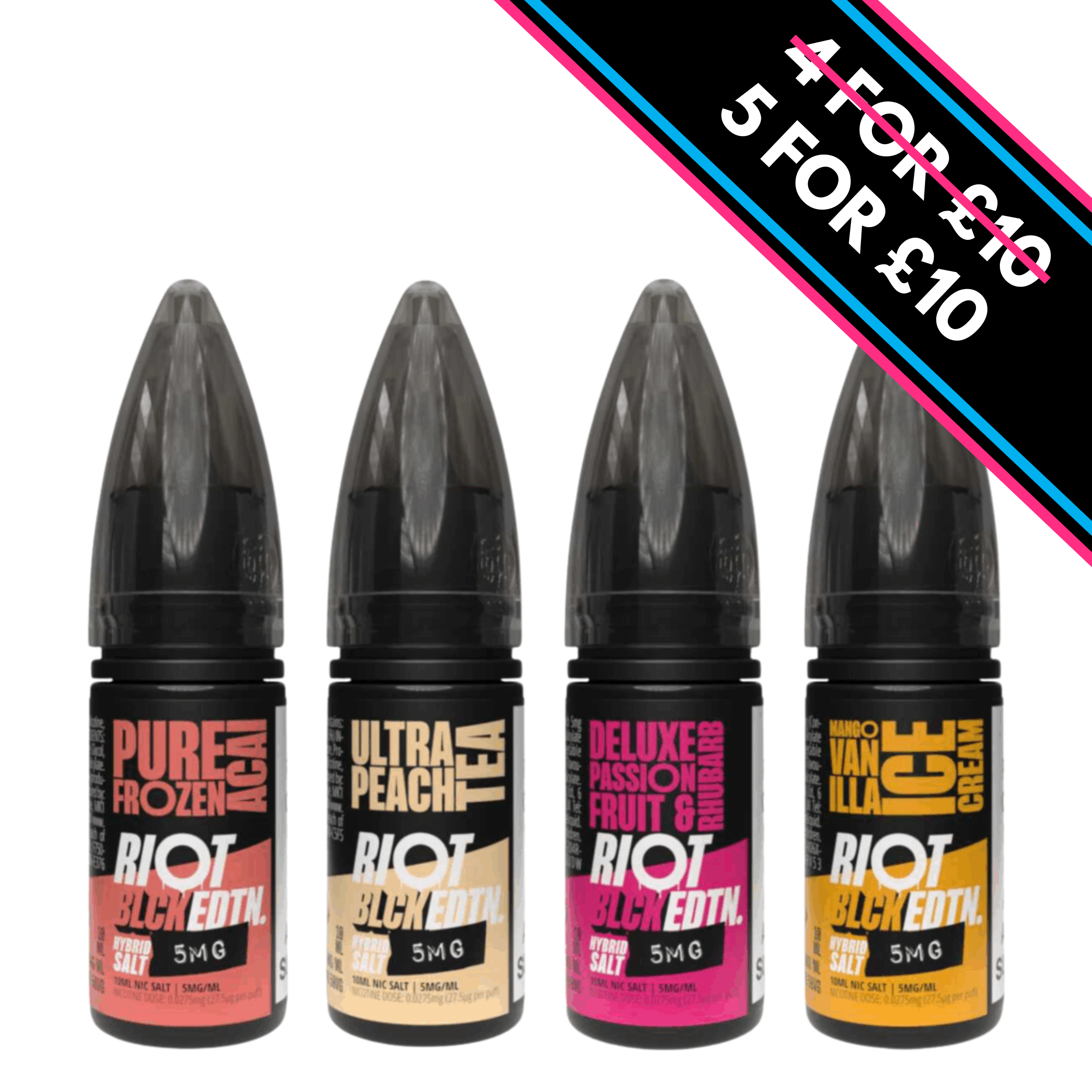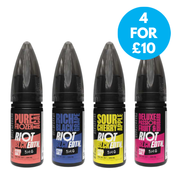 Indulge in a sensational vaping experience with 5mg Riot Squad Black Edition V2 Nic Salts 10ml. Perfectly balanced for use in pod kits, starter kits, and mouth-to-lung devices. With a 50VG/50PG ratio, it delivers a smooth throat hit and satisfying vapour production. The 10ml bottle is ideal for on-the-go use, and the 5mg nicotine strength caters to those who prefer a moderate level. Elevate your vape game with the irresistibly rich Black Edition V2 Nic Salts by Riot Squad.
