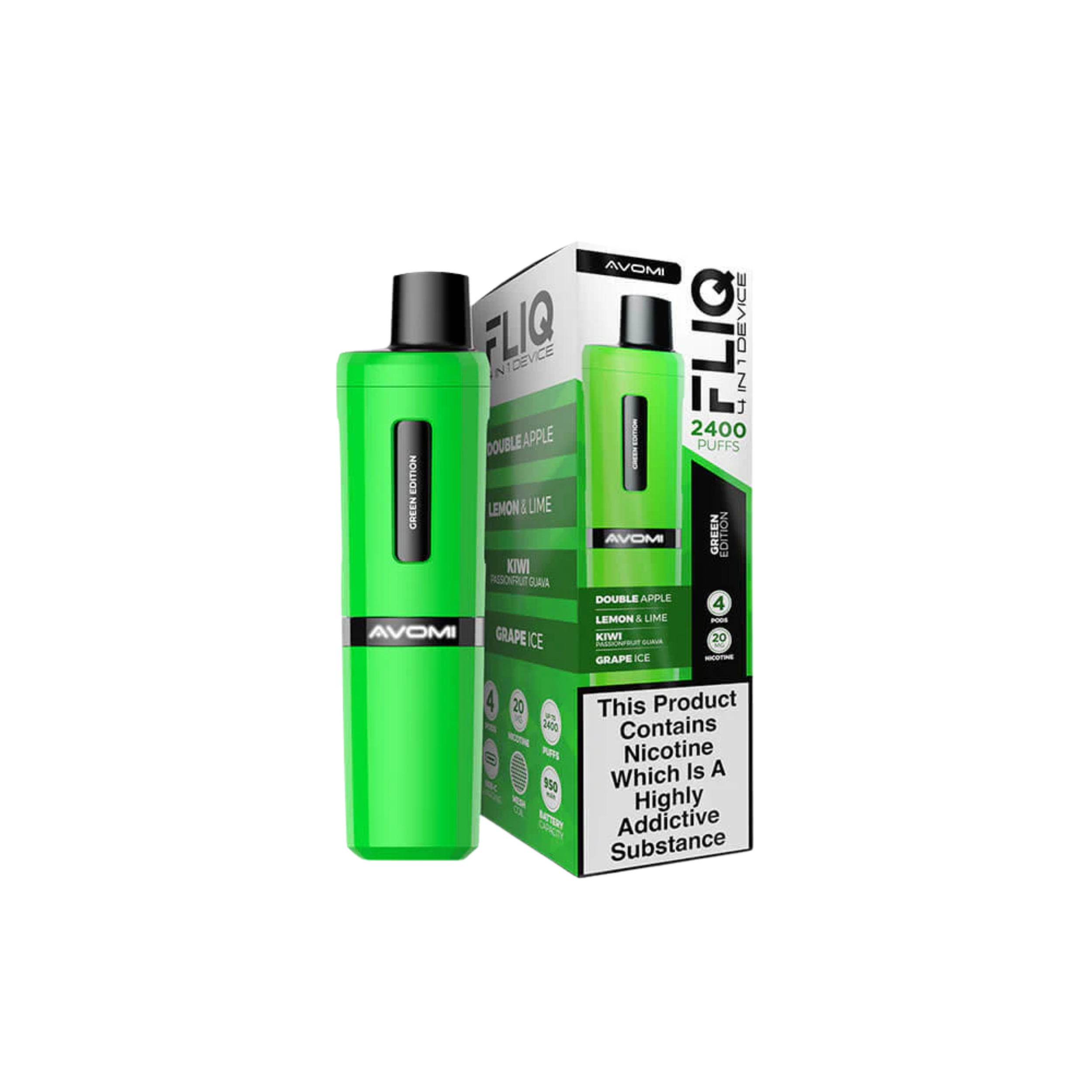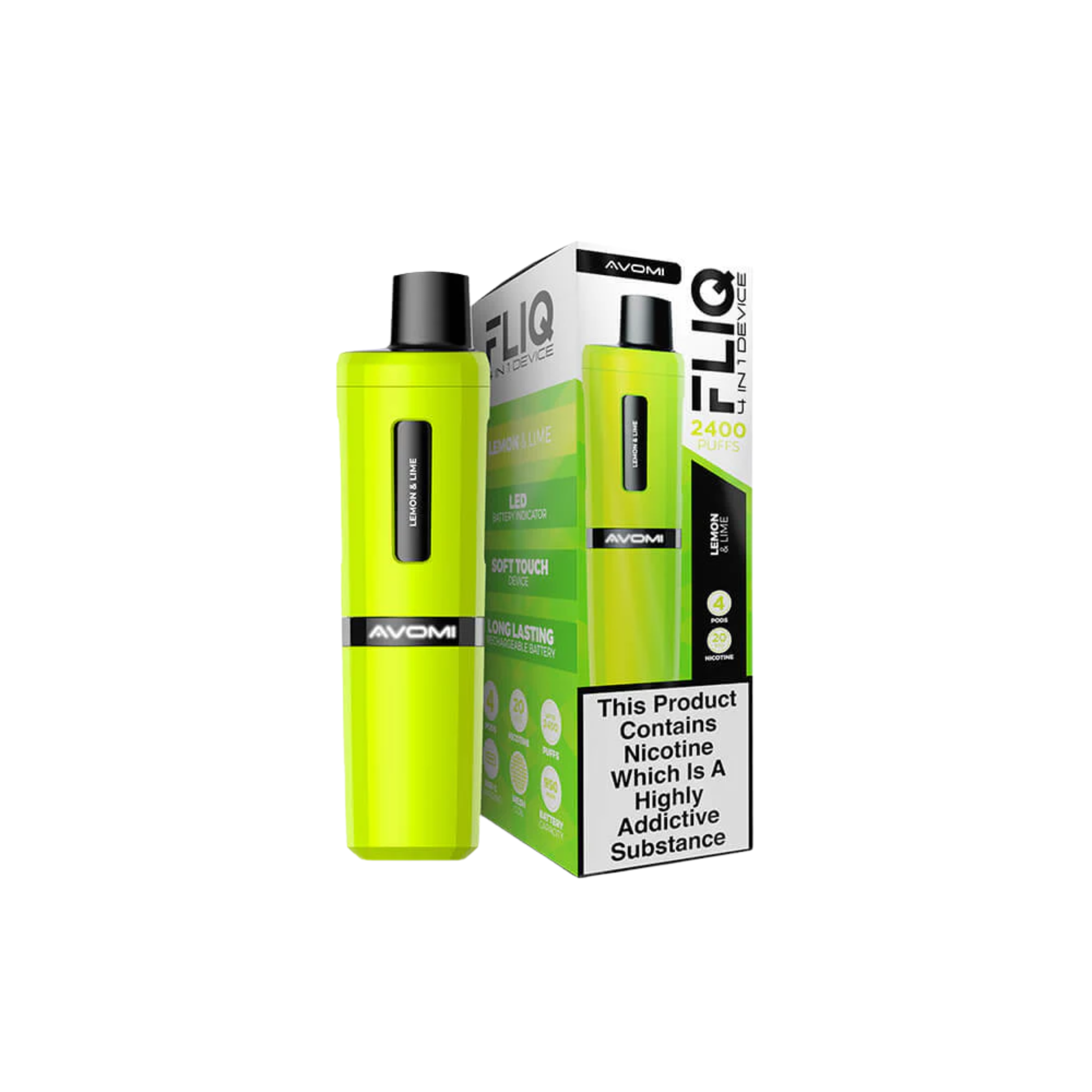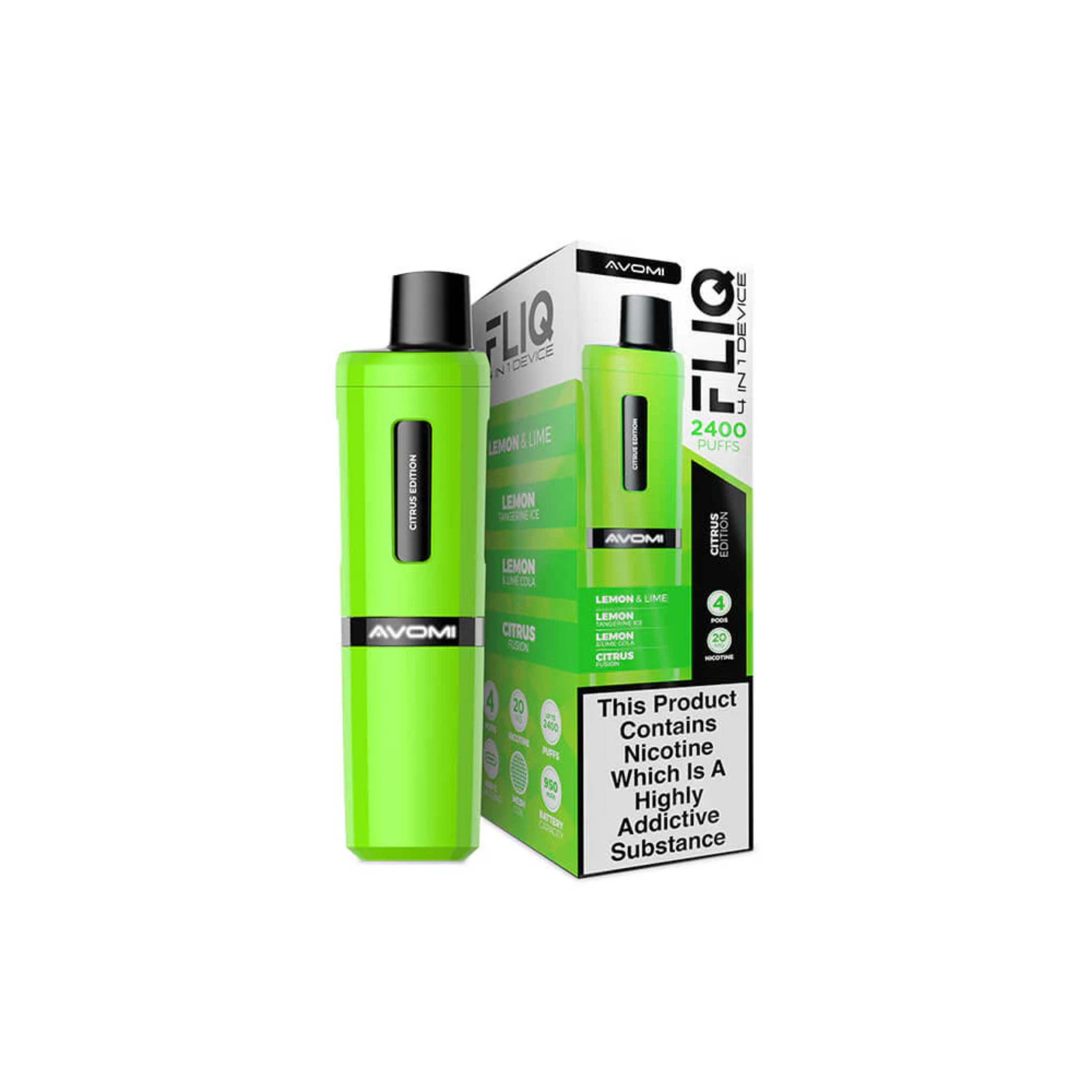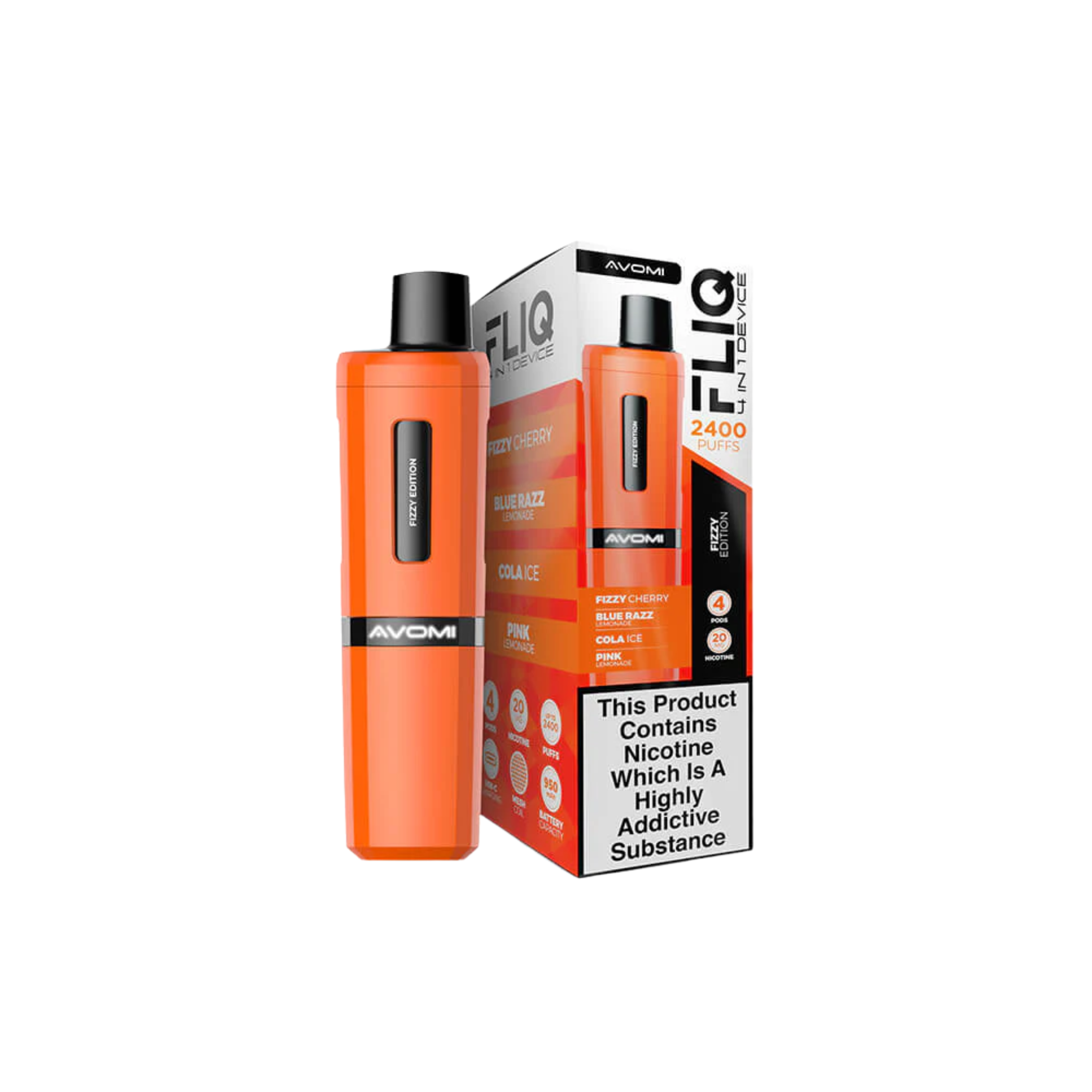 Avomi Fliq vape kit, 27 flavours, 2400 puffs between pod replacements