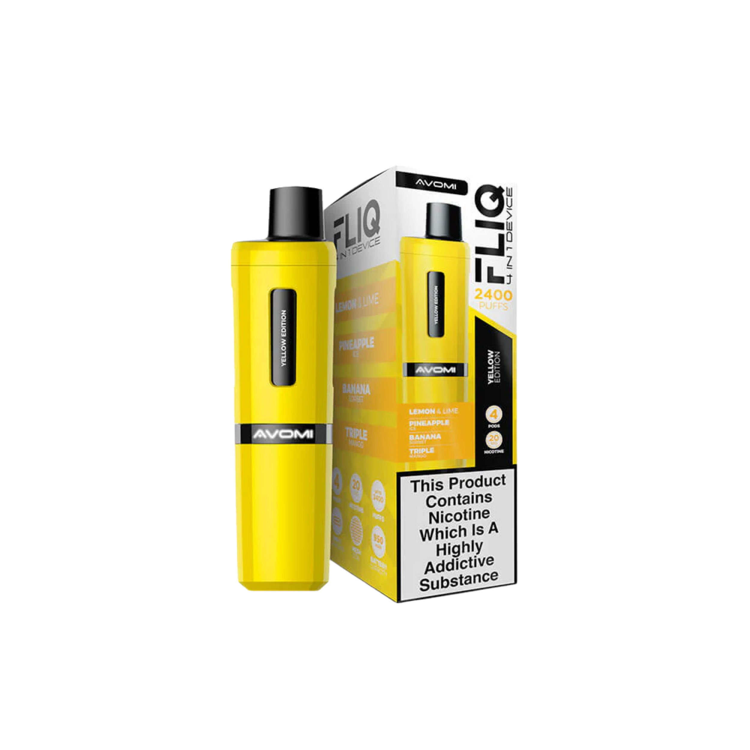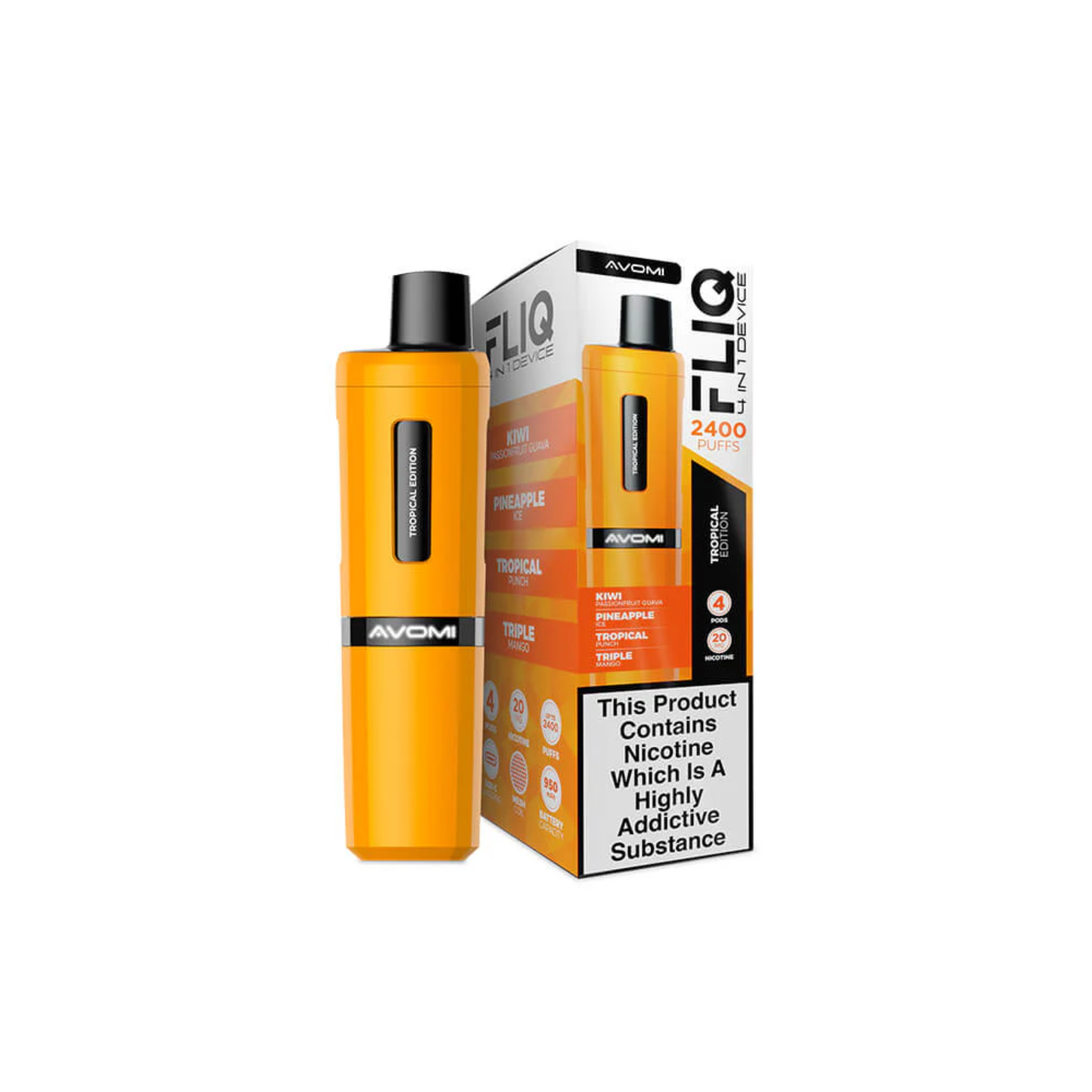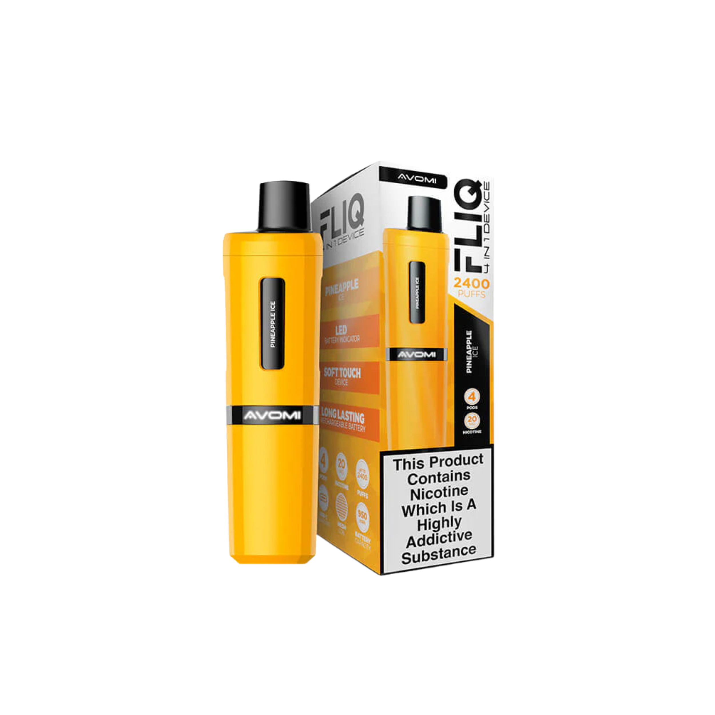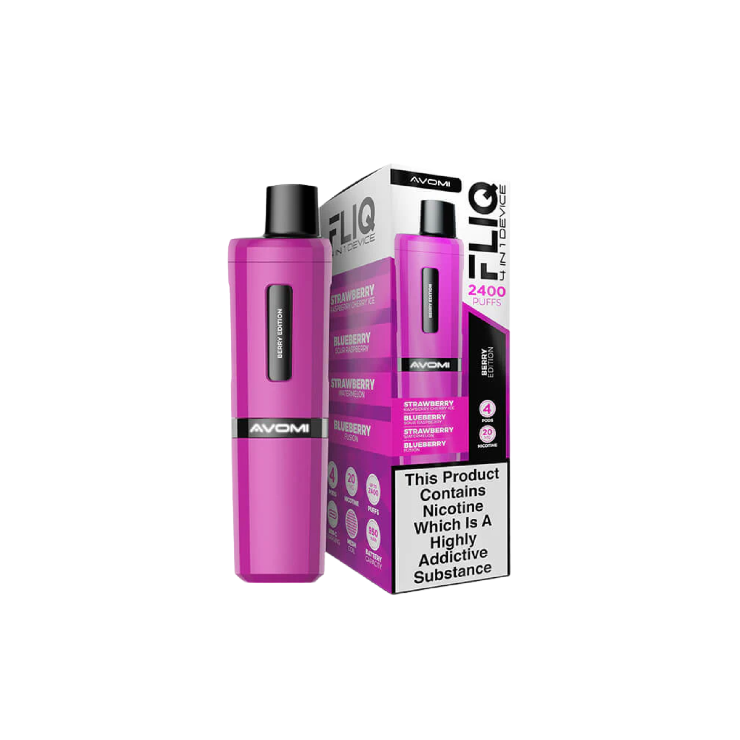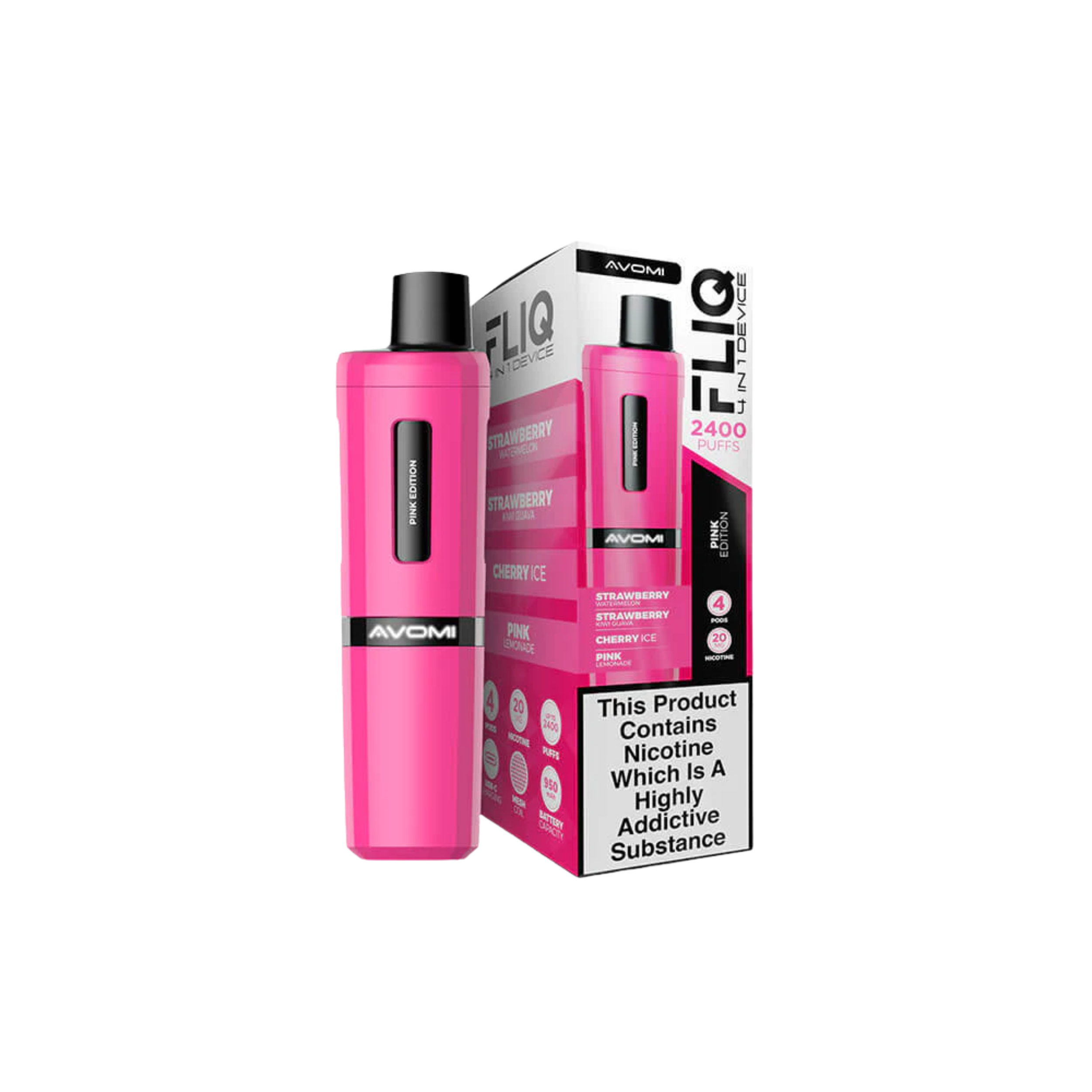 Avomi Fliq vape kit, 27 flavours, 2400 puffs between pod replacements