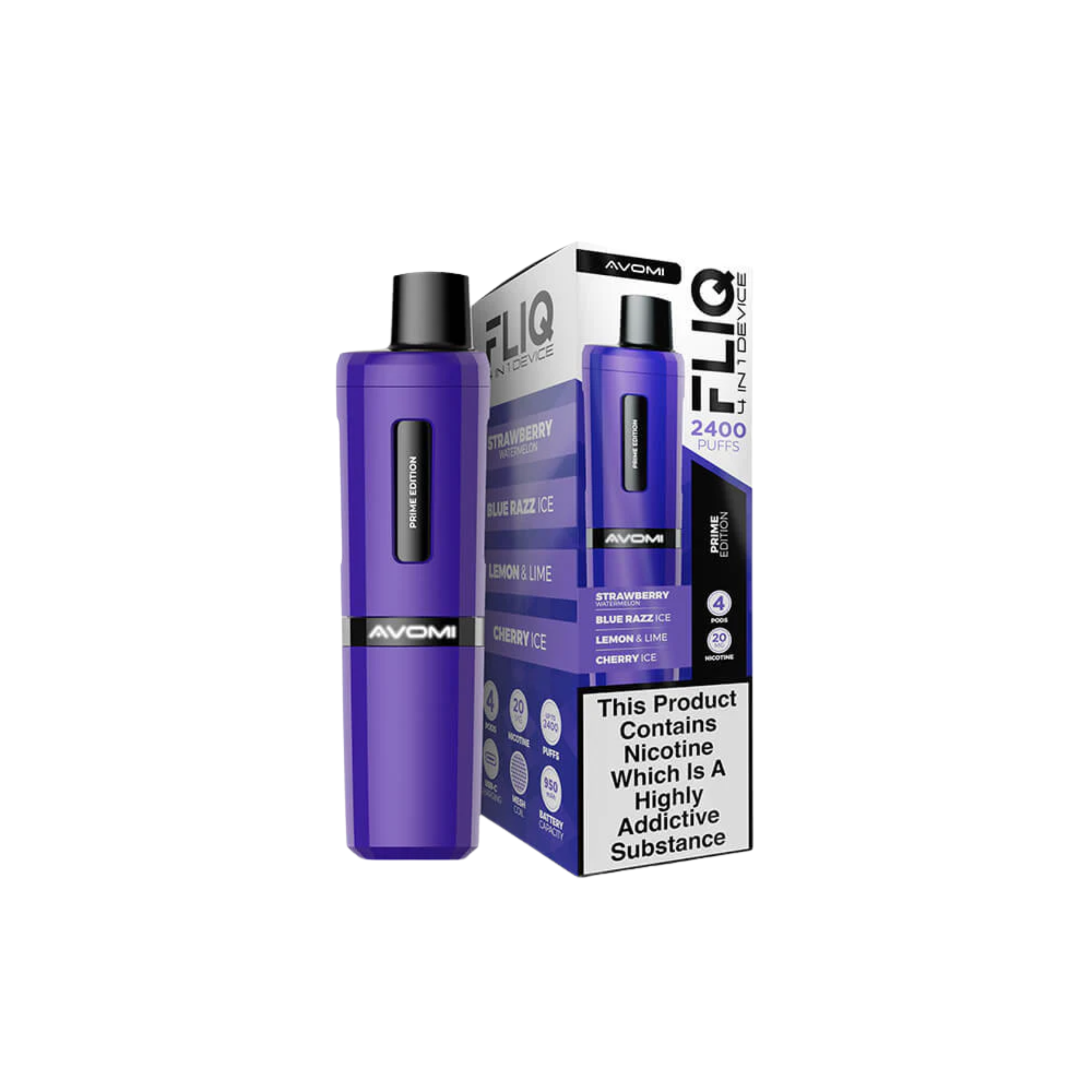 Each pod comes prefilled with 20mg nicotine salt e-liquid, ensuring a smooth throat hit, bold flavour, and fast-acting satisfaction. With up to 600 puffs per 2ml pod – and up to 2400 puffs per device, you can rely on the Avomi Fliq for a long-lasting and consistently enjoyable vape.