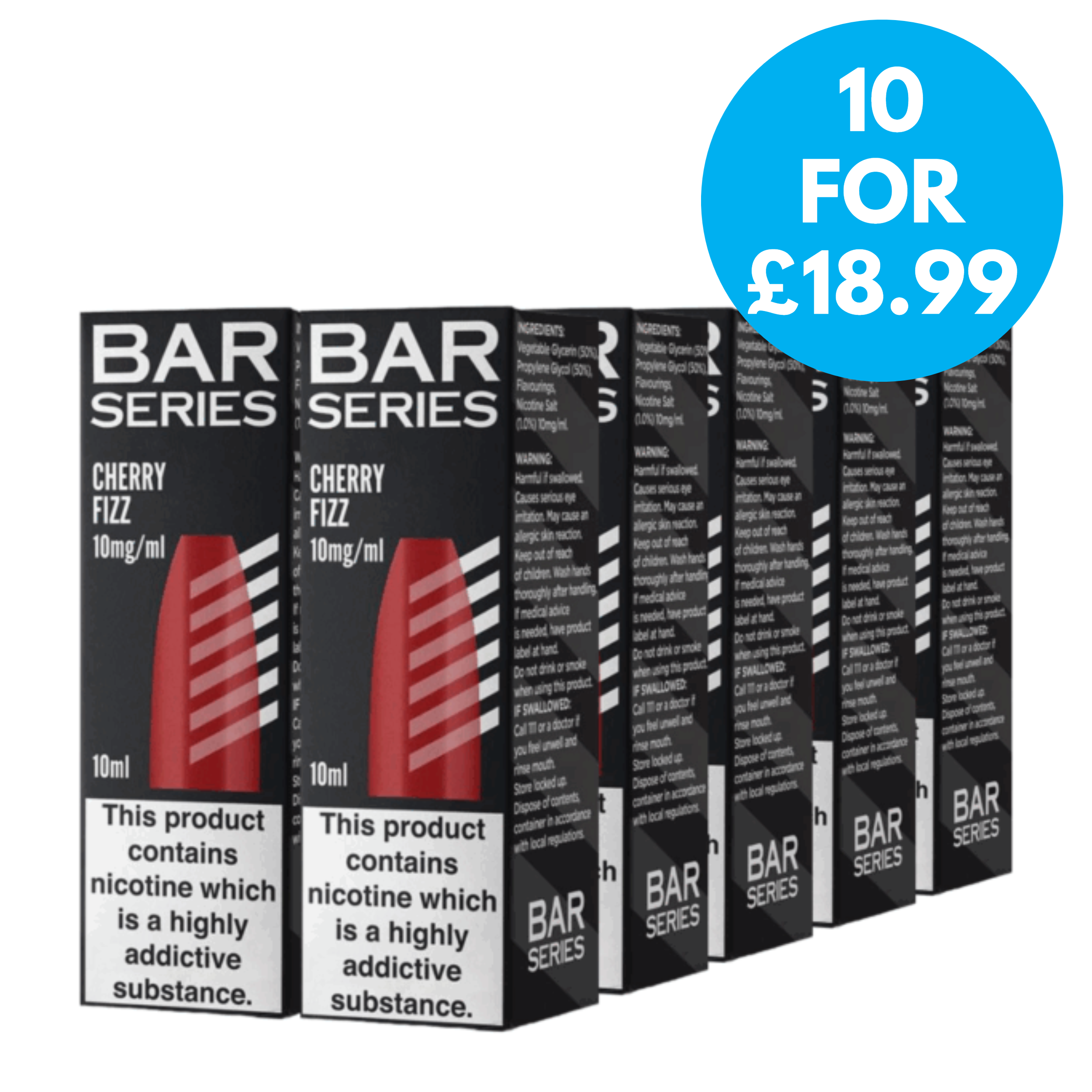 This is a multipack deal which includes 10 bottles of the 10mg Bar Series 10ml Nic Salts, for only £18.99.