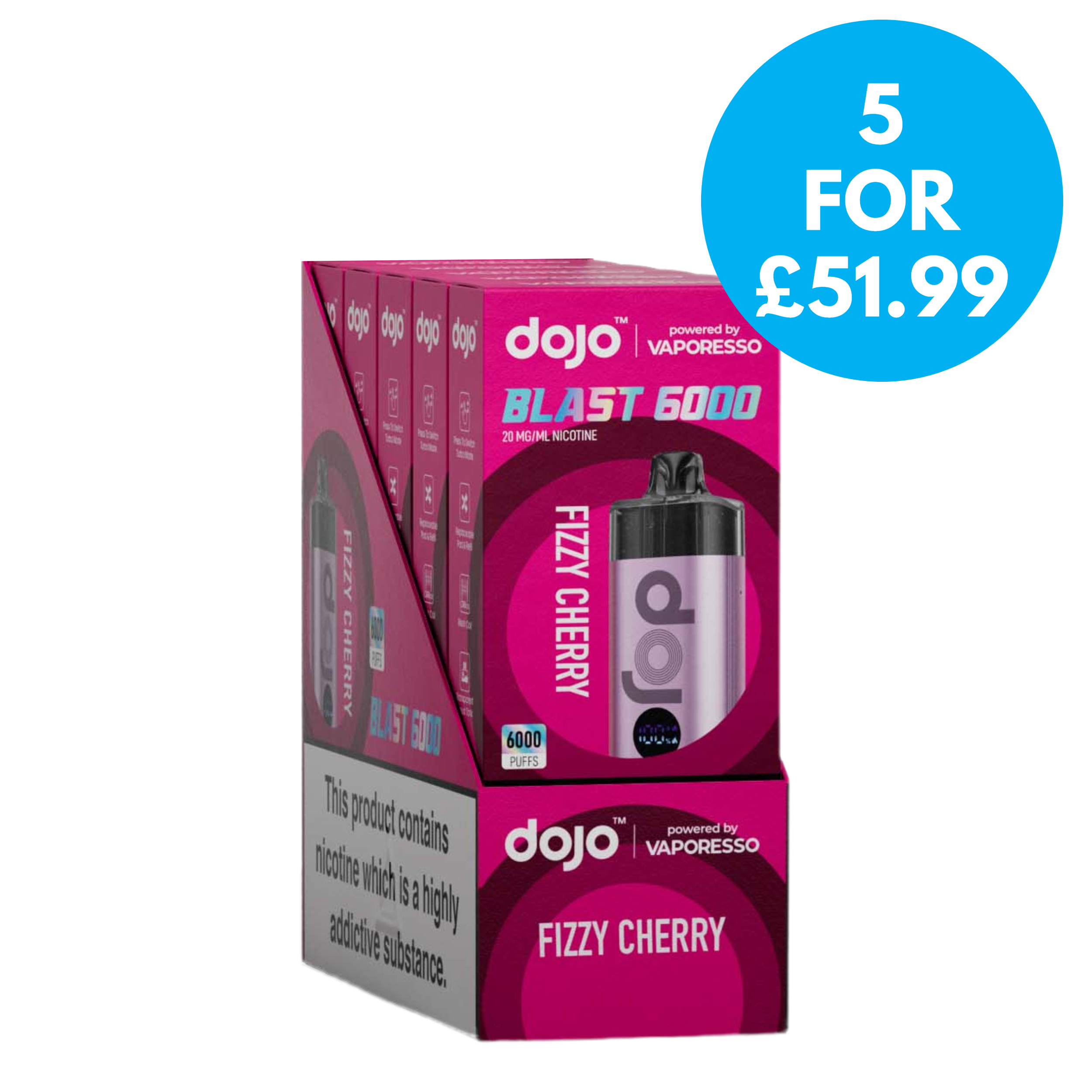 This is a multipack deal that includes 5 boxes of Vaporesso Dojo Blast 6000 Vape Kits, all for just £51.99.