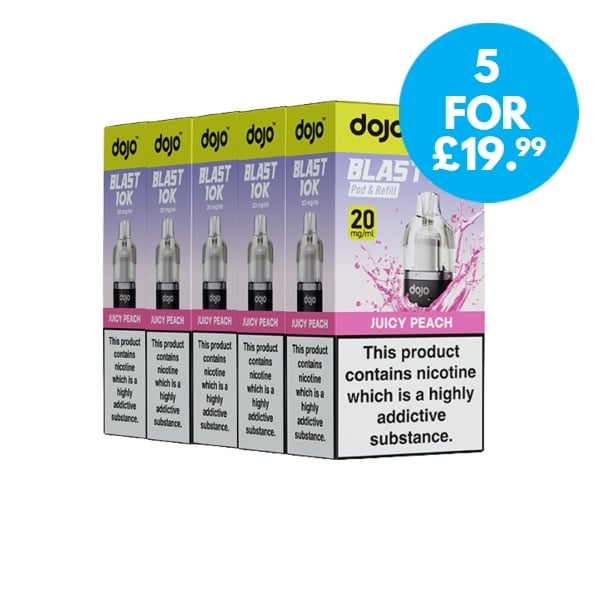 This multipack deal includes 5 boxes of the Vaporesso Dojo Blast 10k/Dojo Blast 30k Refill Pack, all for just £23.99.
