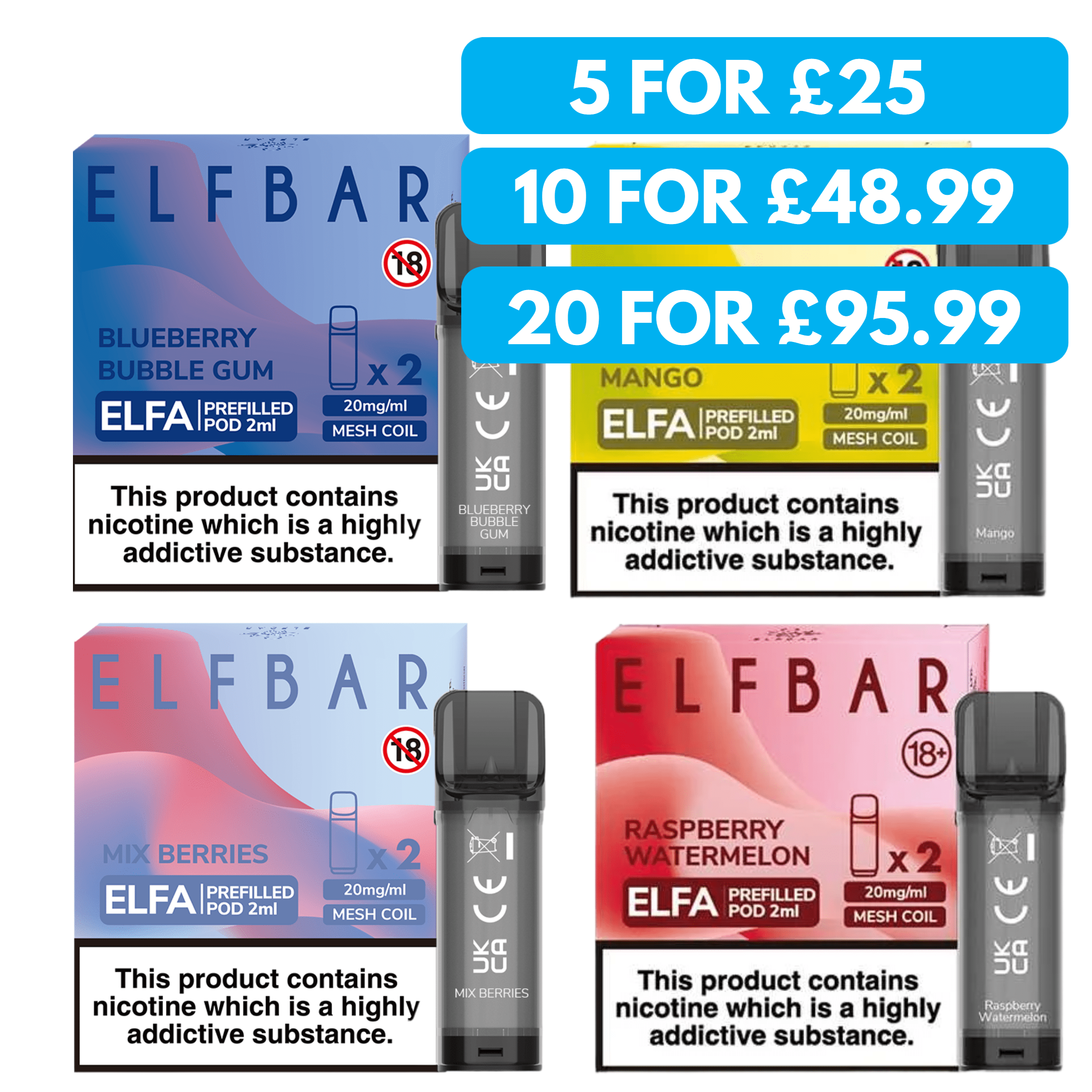 Please Note: These pods are compatible with the Elf Bar Elfa kit NOT the Elf Bar Mate 500 kit.