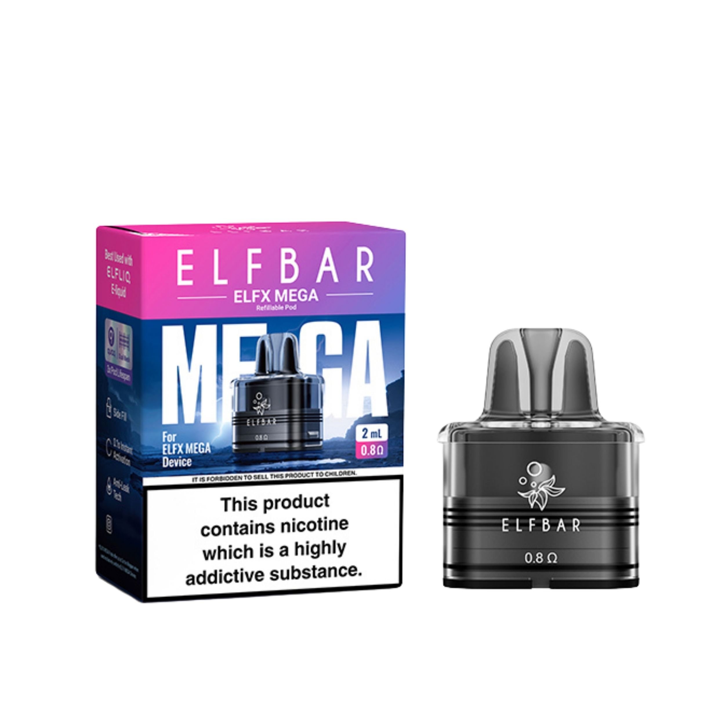 The Elf Bar Elfx Mega Pods are designed for use with the Elf Bar Elfx Mega Vape Kit, allowing you to vape seamlessly without any hassle. These pods deliver puffs that are rich in flavour while also producing high quality vapour. Each pod comes with a preinstalled coil, removing the need for messy coil changes and making your vaping experience smooth, simple, and convenient.