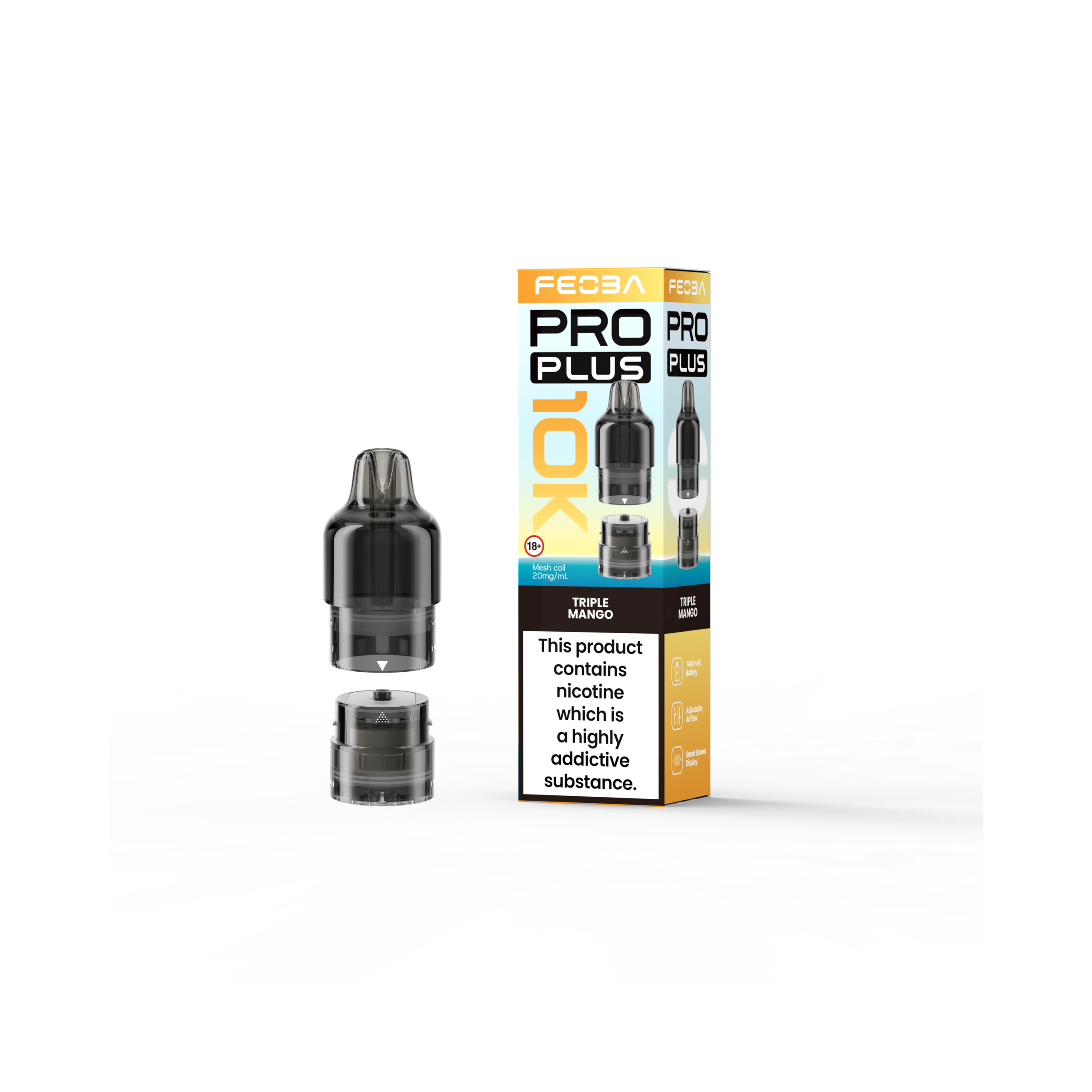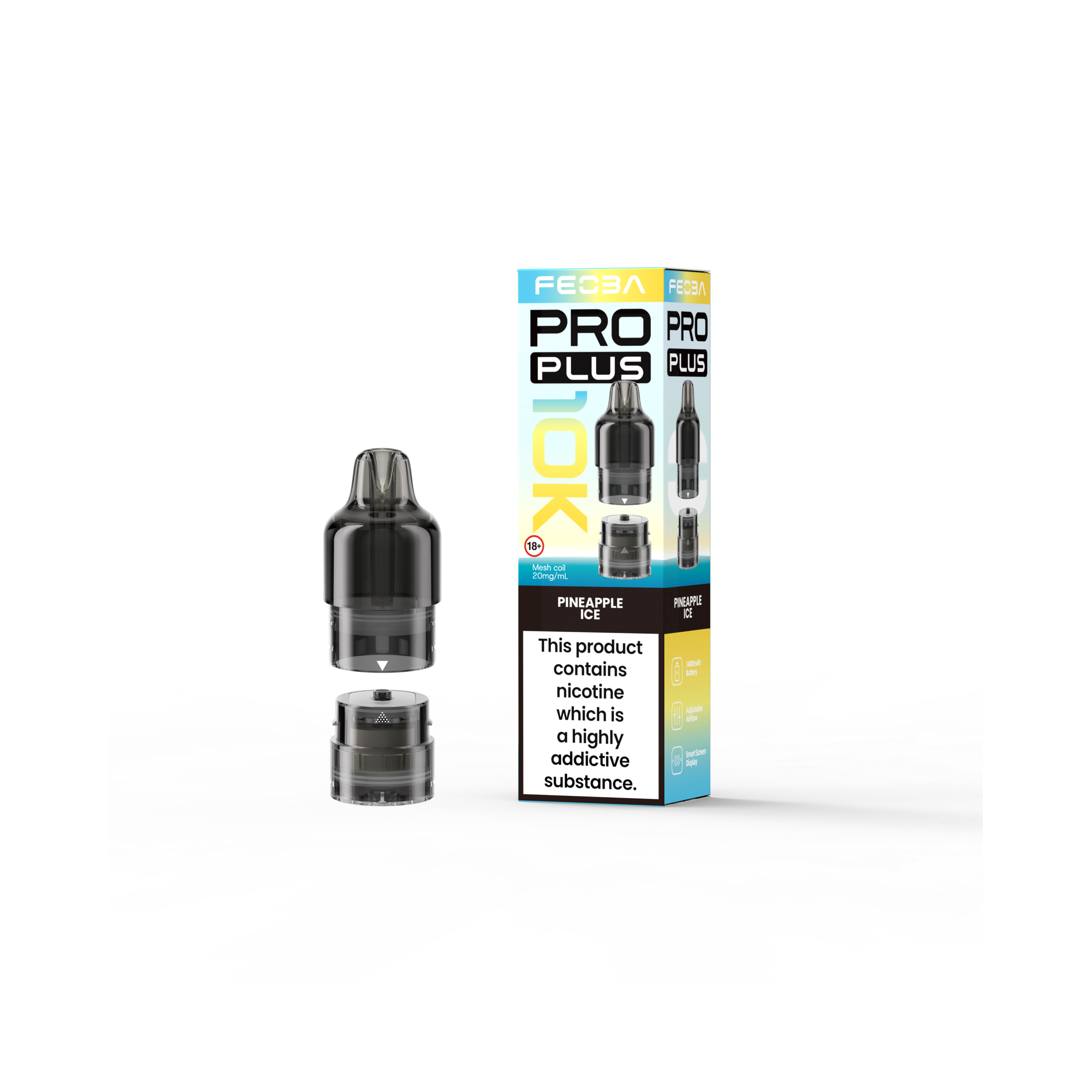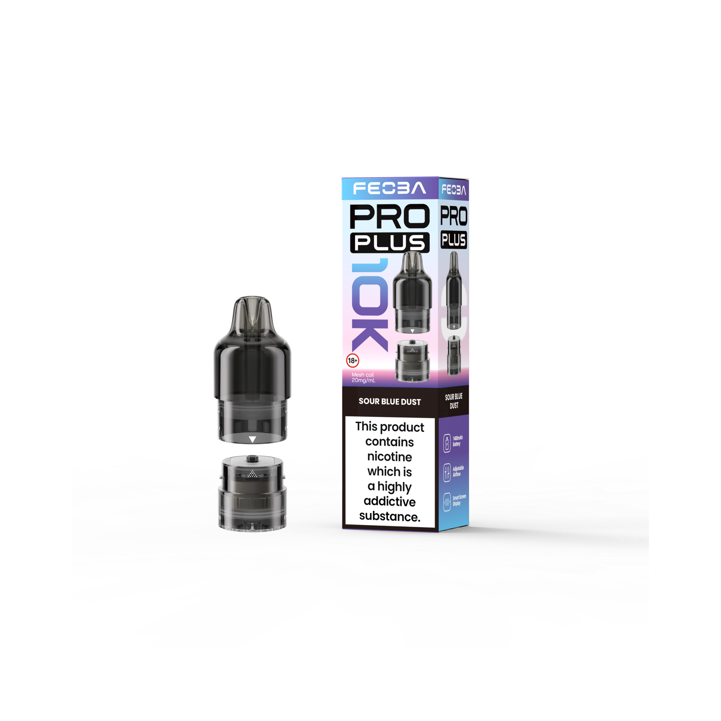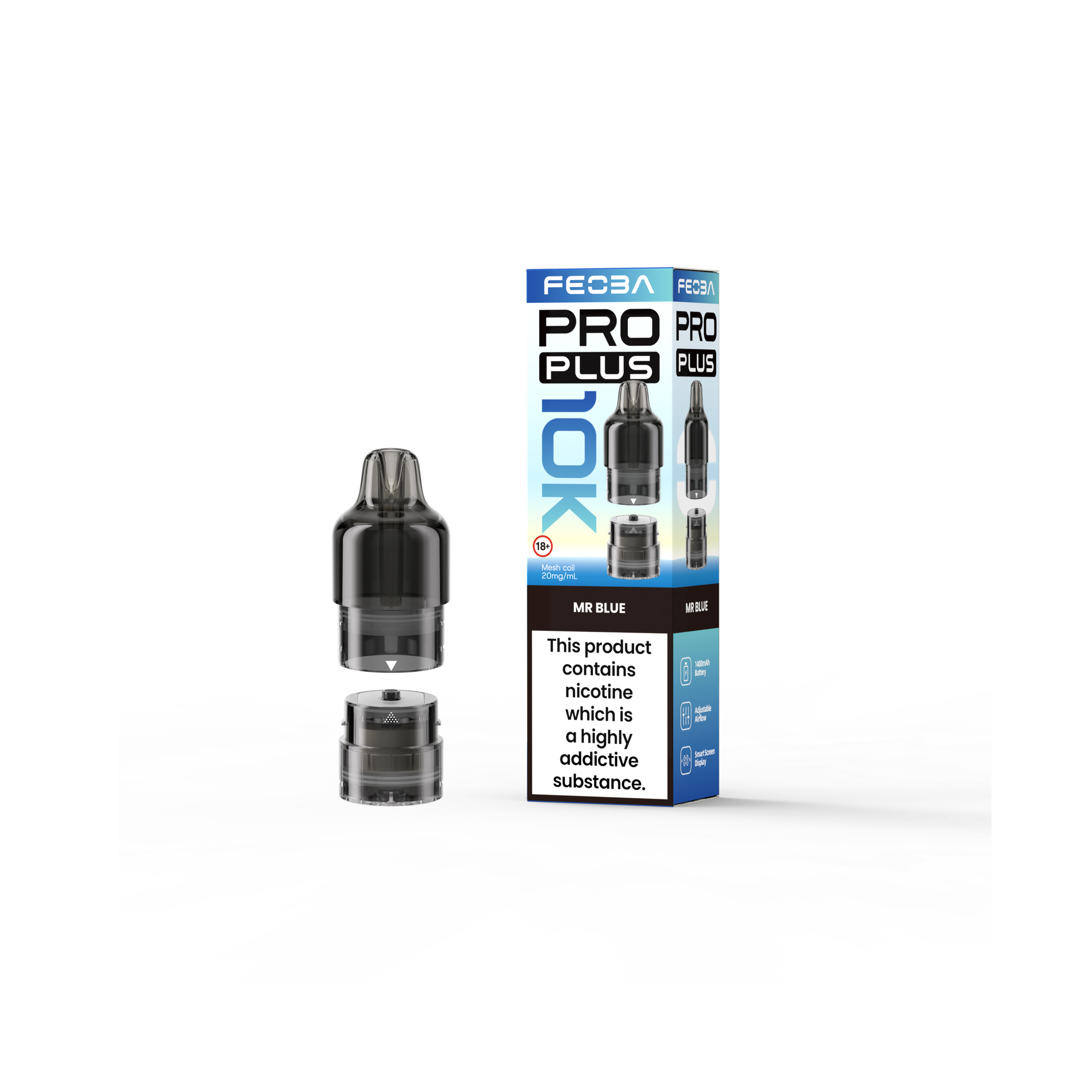 At the core of every 2ml pod and 10ml refill container is the advanced 1.1 Ohm mesh coil, which actively intensifies flavour clarity while consistently producing smooth vapour. Specifically designed for mouth-to-lung (MTL) vaping, it carefully balances vapour output with a refined throat hit. Consequently, the Feoba Pro Plus 10K Refill Pack is an ideal choice for beginners transitioning from cigarettes, while still delivering the familiar, cigarette-style draw experienced vapers appreciate.