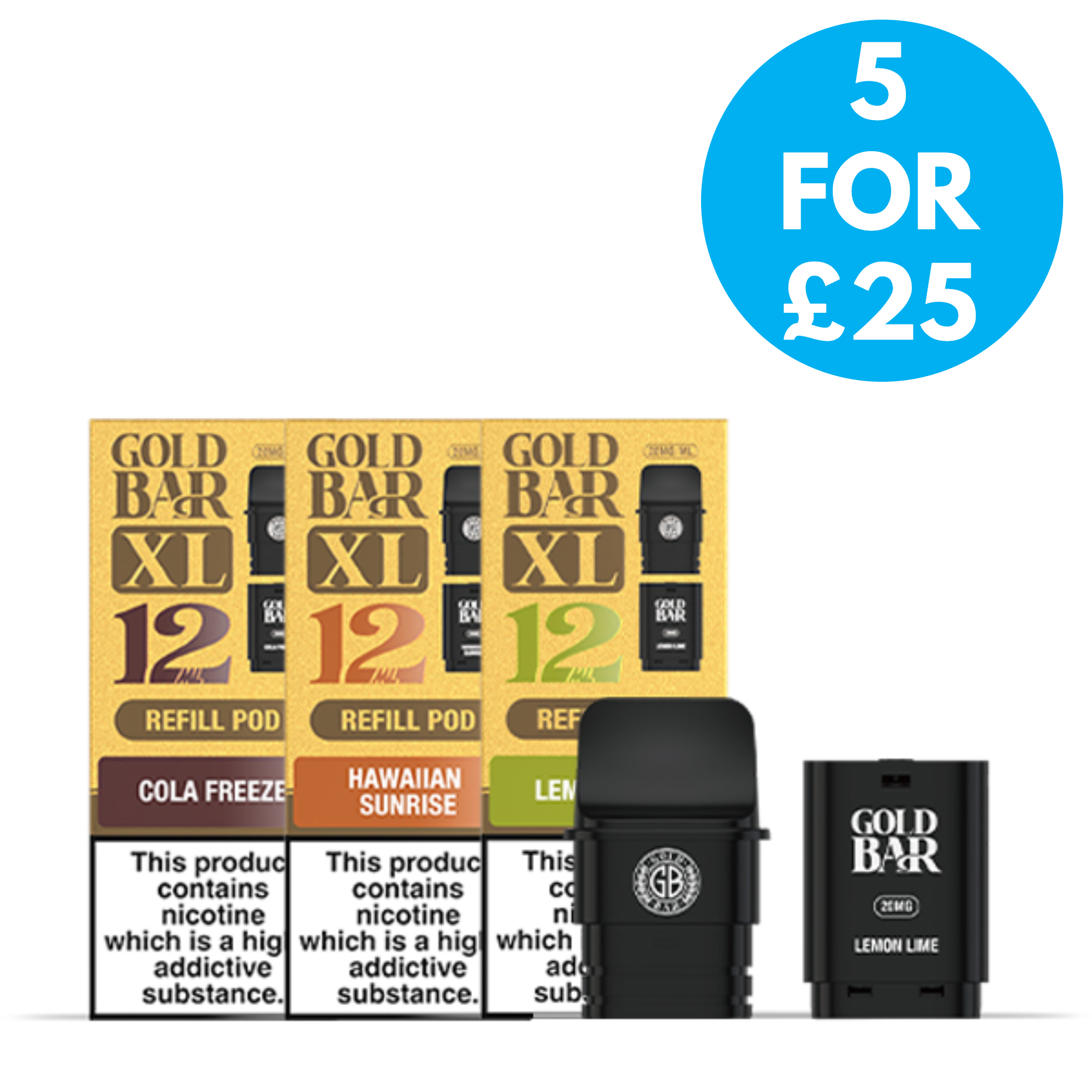 Gold Bar XL Prefilled Replacement Pods are designed exclusively to be used with the Gold Bar XL Vape Kit, delivering a smooth, hassle free vaping experience every time. Each pack includes a 2ml prefilled pod along with a 10ml refill container, giving you a total of 12ml of e-liquid, so you can enjoy longer lasting use from each pod.