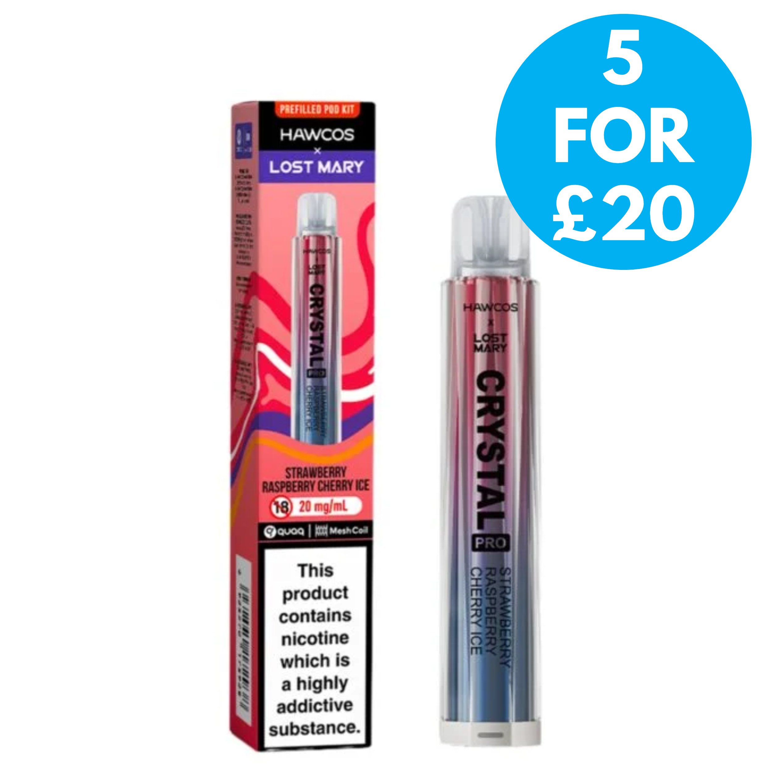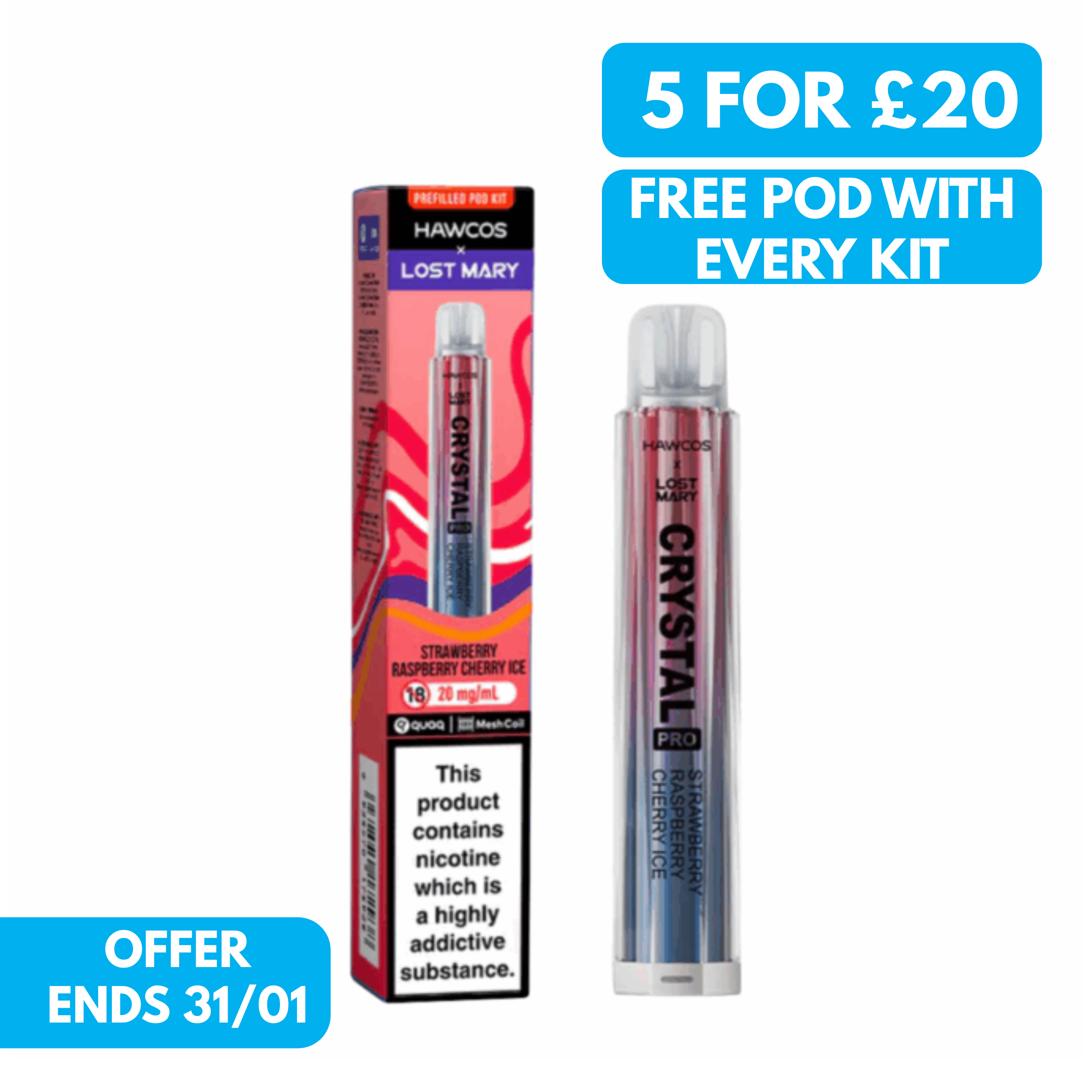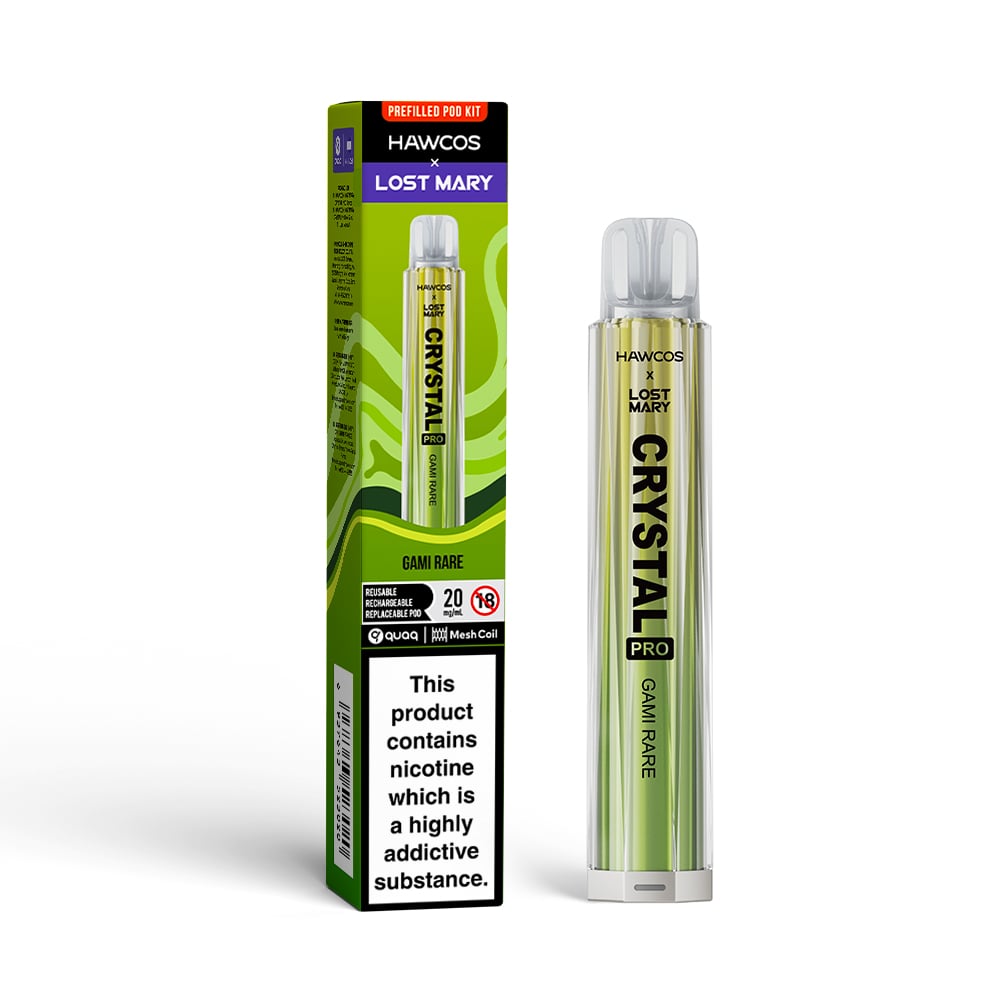 Each pod can deliver up to 600 puffs, approximately, although this may vary depending on your vaping habits. The transparent pod design lets you easily monitor your e-liquid levels, and when it’s time for a refill, simply replace it with a Hawcos x Lost Mary Crystal Pro Prefilled Replacement Pod.
