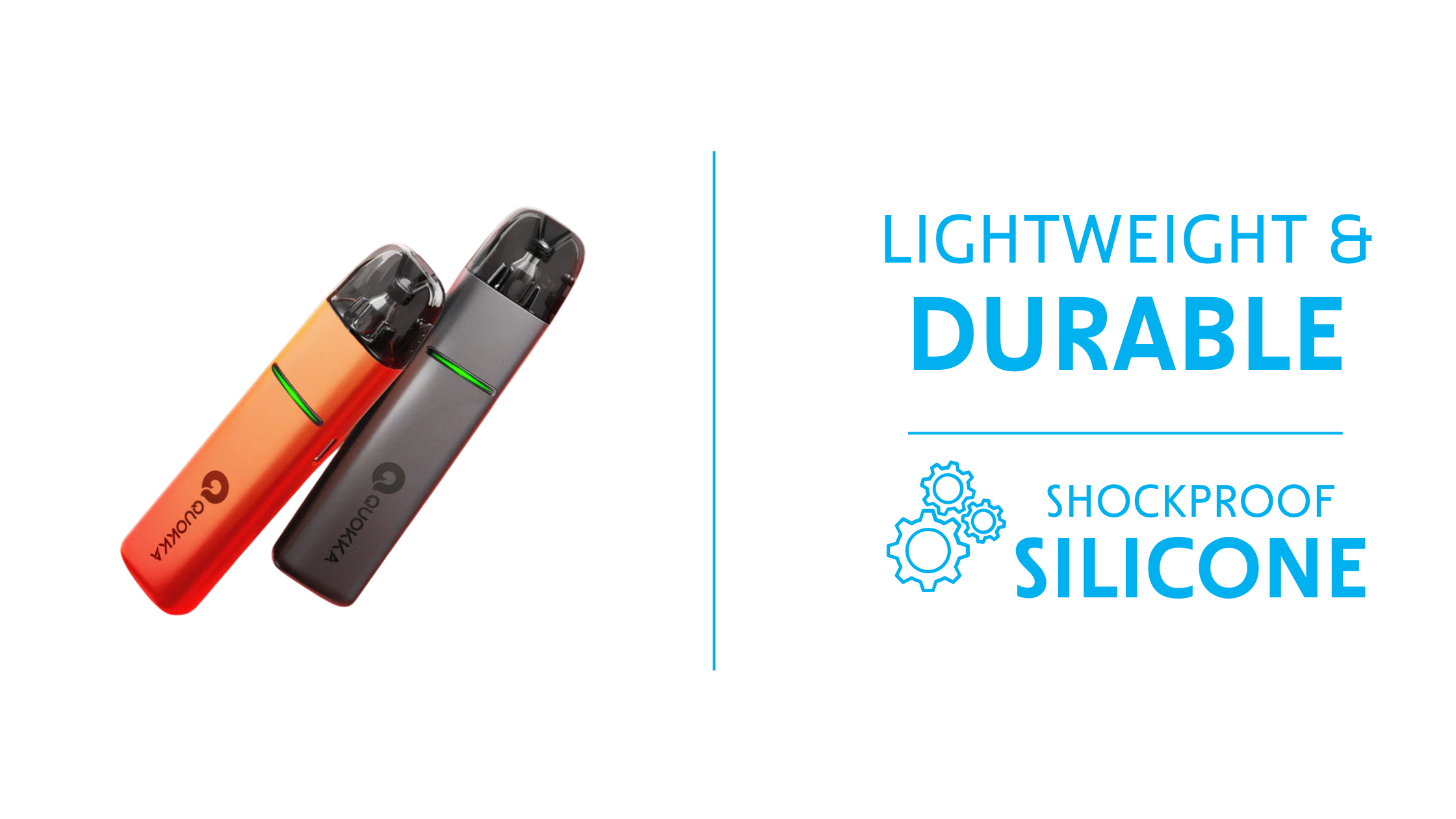 Crafted from premium aluminium alloy, the Quokka Elite is lightweight, durable, and stylish. Its ergonomic shape fits comfortably in the hand, while the shock-proof silicone base adds extra protection for everyday use. Meanwhile, the smart, dynamic, interactive LED lighting on the front provides visual feedback on your battery level without overwhelming the sleek design. Combined with its leak-resistant pod system, the Quokka Elite remains clean, reliable, and easy to maintain.
