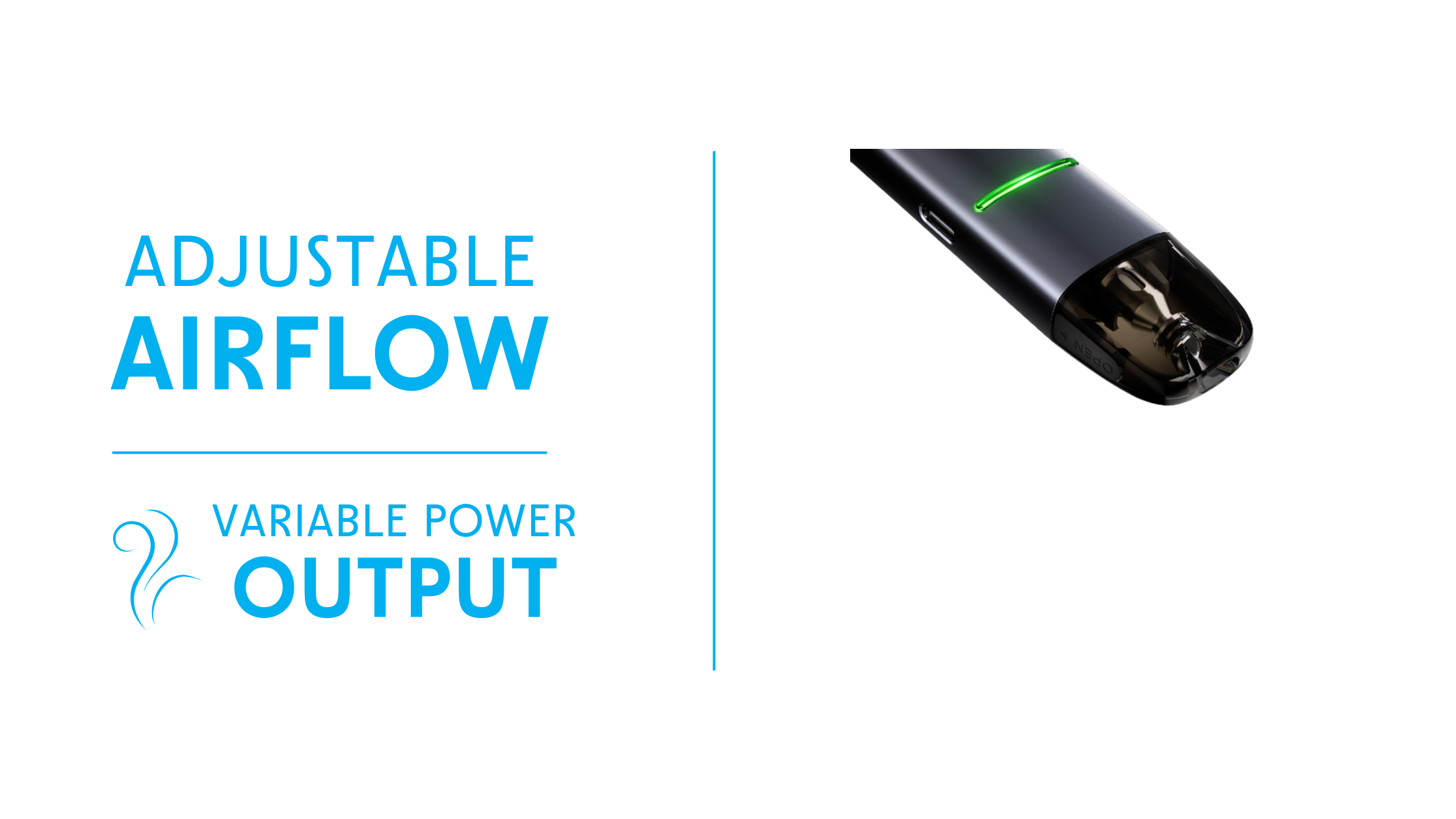 You can easily adjust the airflow using the slider on the side of the device. Simply move the slider to fine-tune the draw to your preference, whether you prefer a tighter or slightly airier inhale.