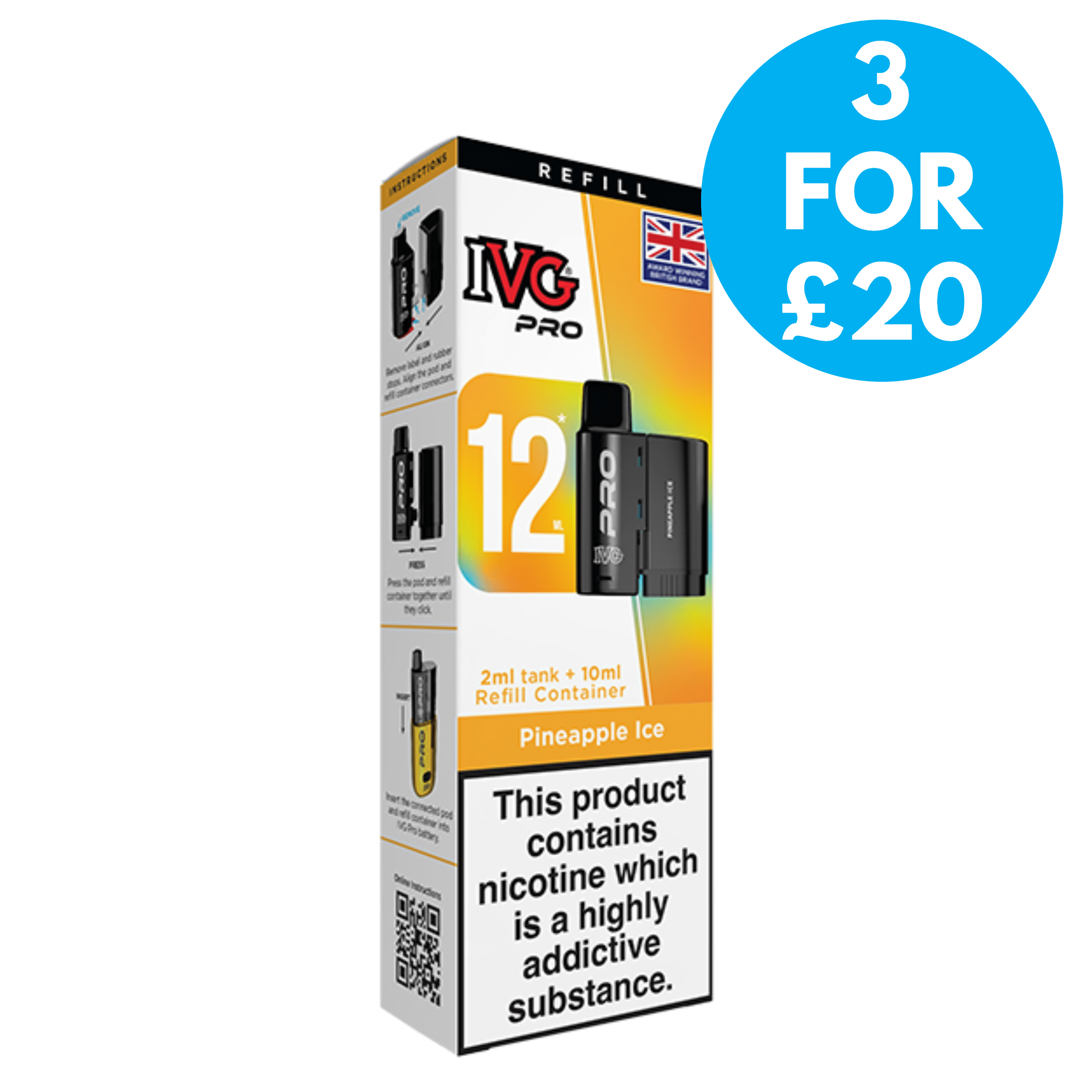 Reaching a huge 10,000 puffs (approx.), the IVG Pro 12 replacement pods contain a 2ml prefilled pod so you can start vaping immediately, along with a 10ml e-liquid reservoir which auto refills the main 2ml pod when you’re running low. Gone are the days of messy refills thanks to the IVG Pro pod, when you do need a top up, simply pop in a new replacement pod and away you go. The liquid inside the IVG Pro pods comes in a 20mg strength and is a nicotine salt e-liquid, rather than a standard freebase liquid. This means that not only will your cravings be relieved faster, but you’ll also find that it more closely replicates the taste and experience of the standard 600 puff disposable, which also uses nic salt e-liquids. The built in mesh coil will also help to amplify flavour and ensure a smooth vaping experience.