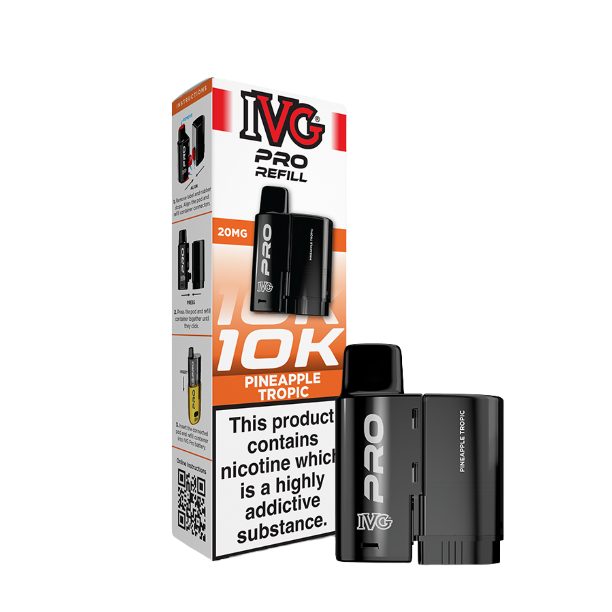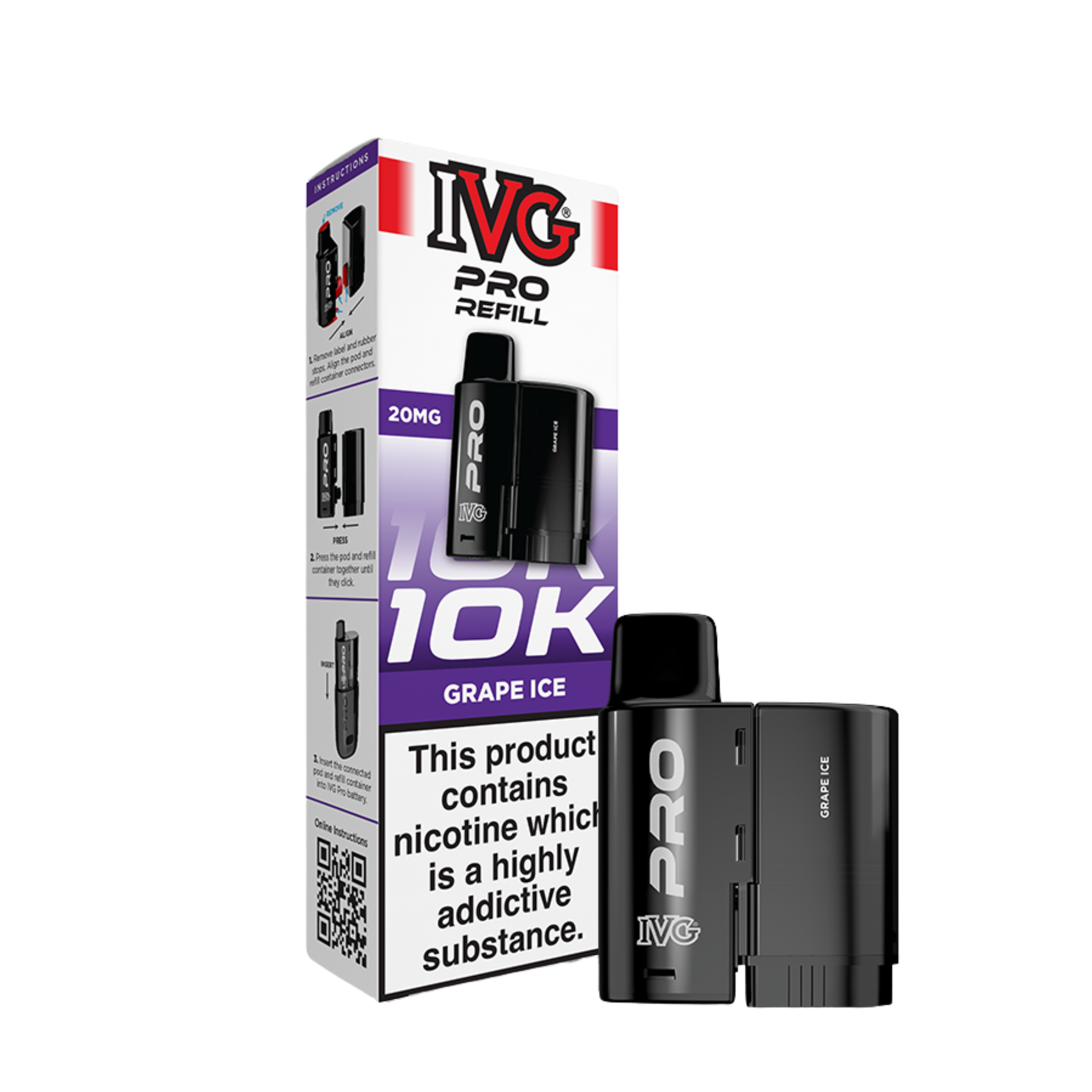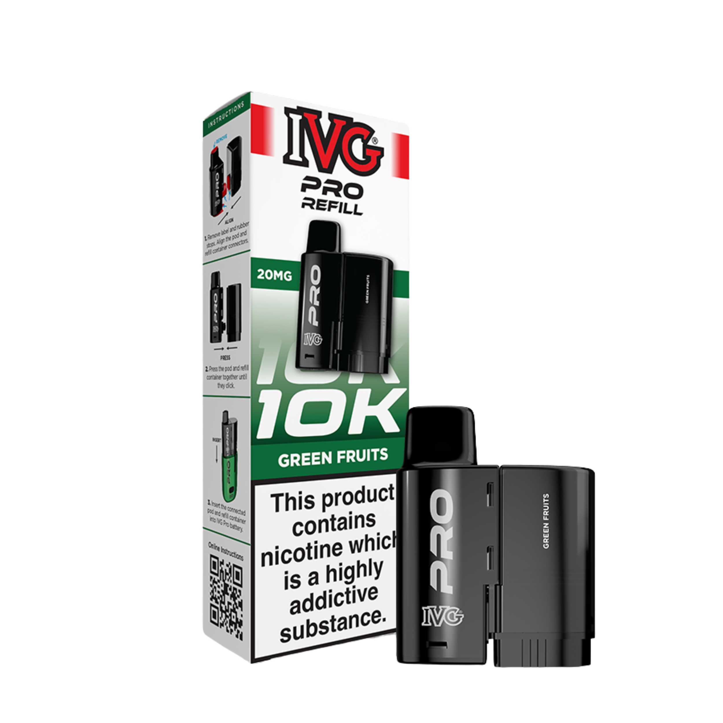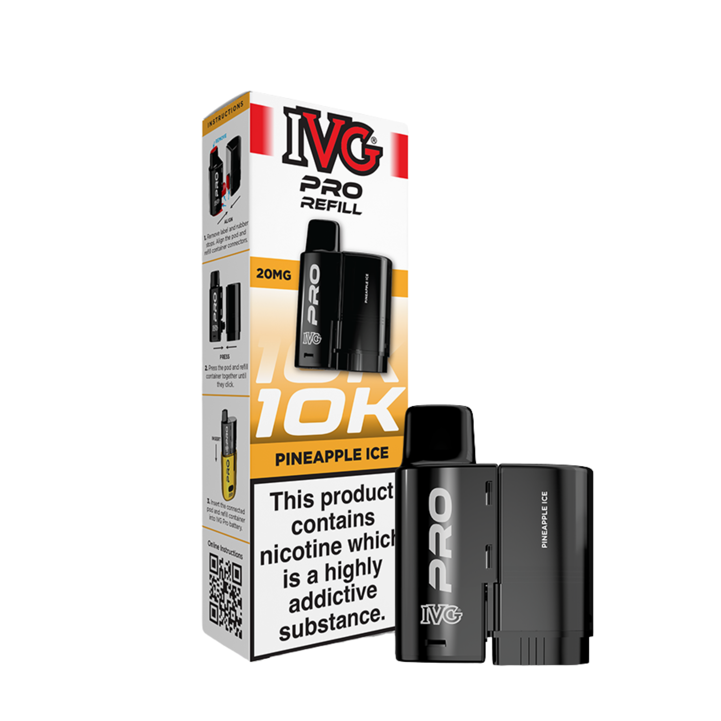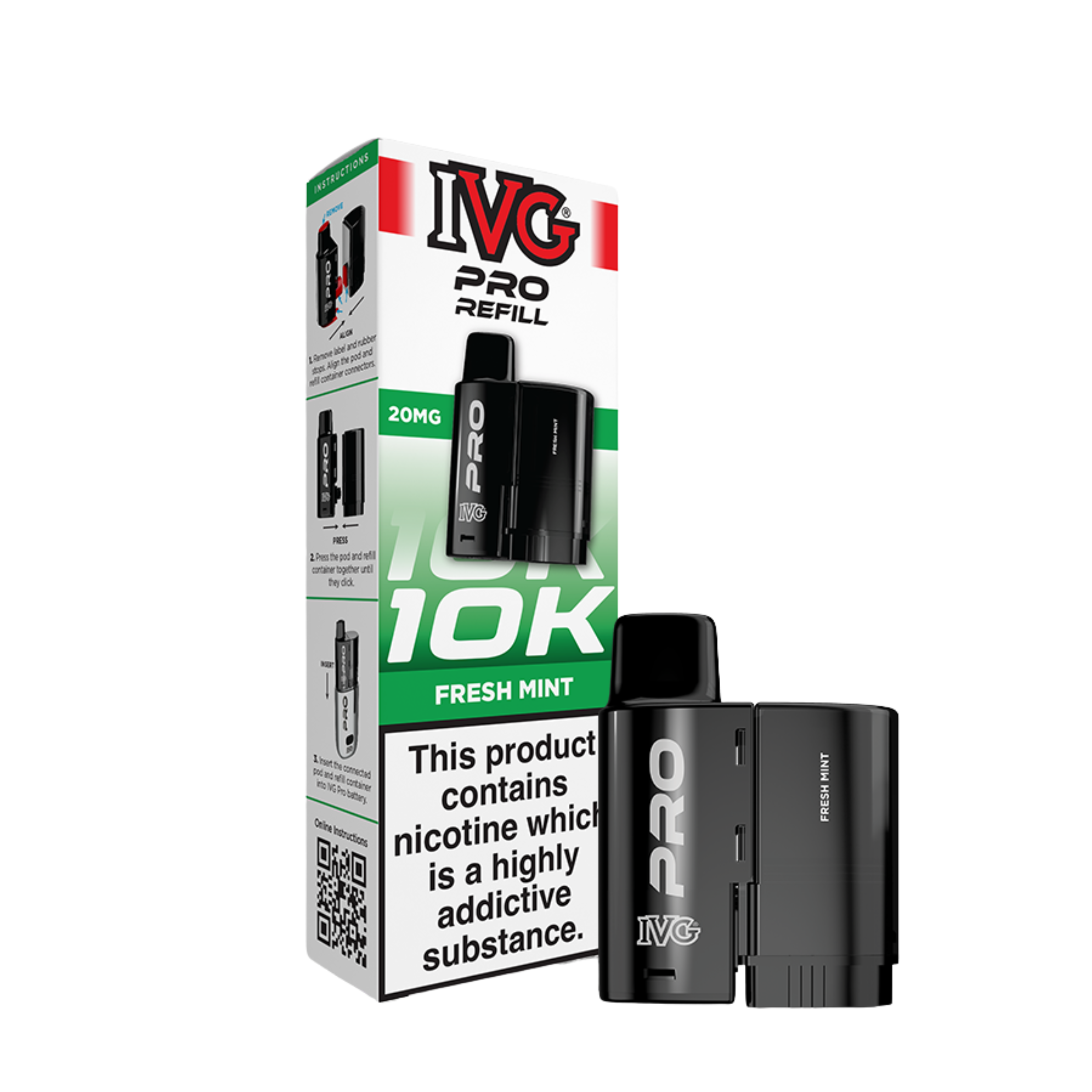 Reaching a huge 10,000 puffs (approx.), the IVG Pro 12 replacement pods contain a 2ml prefilled pod so you can start vaping immediately, along with a 10ml e-liquid reservoir which auto refills the main 2ml pod when you’re running low. Gone are the days of messy refills thanks to the IVG Pro pod, when you do need a top up, simply pop in a new replacement pod and away you go. The liquid inside the IVG Pro pods comes in a 20mg strength and is a nicotine salt e-liquid, rather than a standard freebase liquid. This means that not only will your cravings be relieved faster, but you’ll also find that it more closely replicates the taste and experience of the standard 600 puff disposable, which also uses nic salt e-liquids. The built in mesh coil will also help to amplify flavour and ensure a smooth vaping experience.
