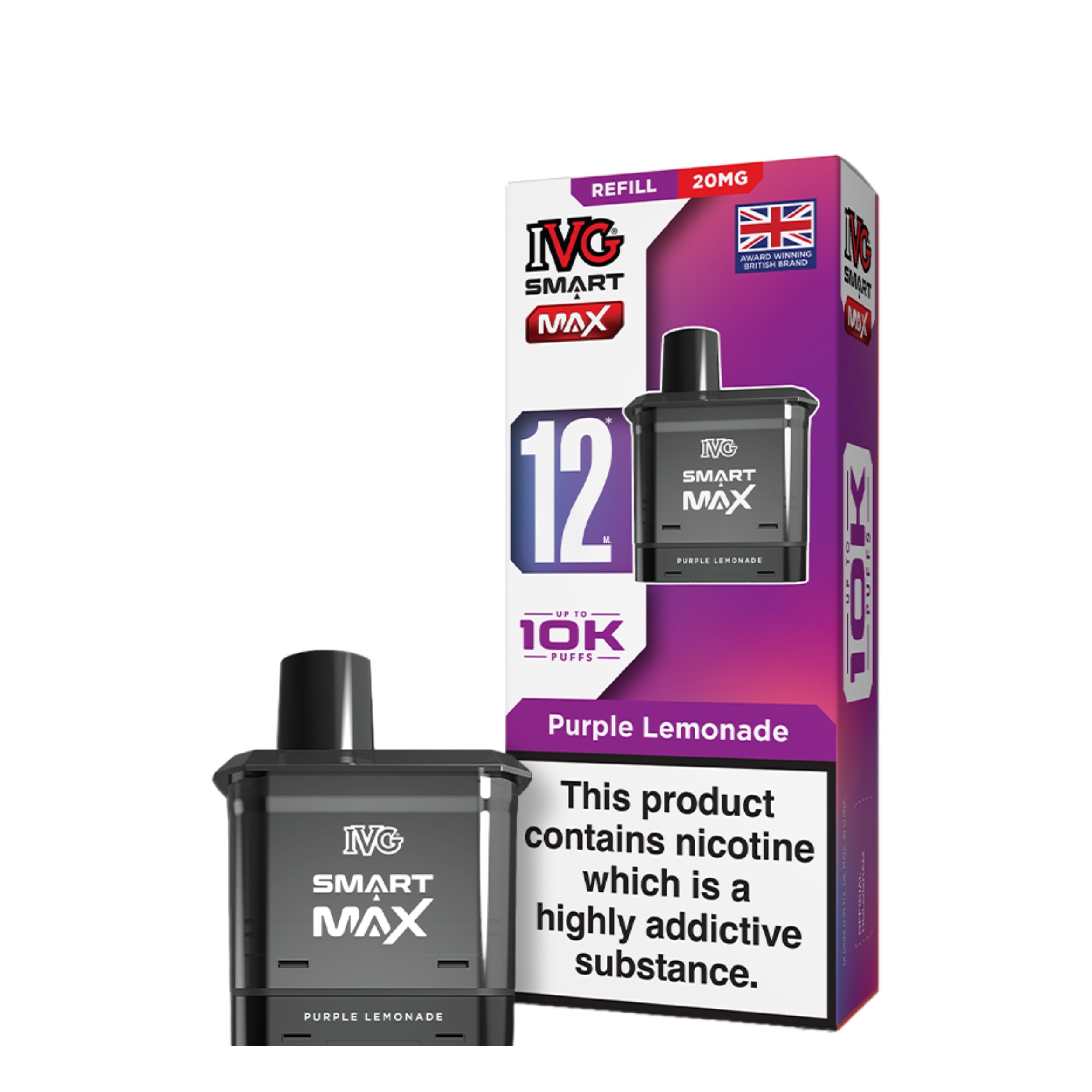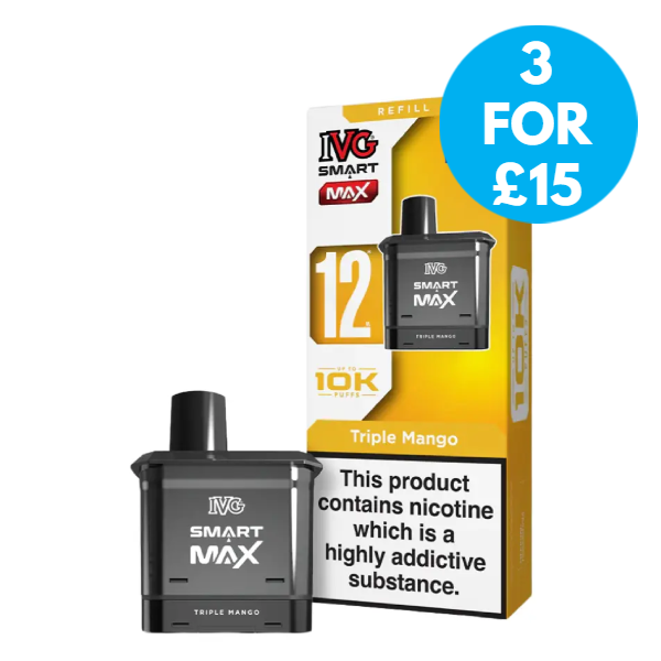 The IVG Smart Max replacement pods are available in a 20mg (2%) nicotine strength, which is the maximum allowed in the UK. This strength provides smooth throat hits, while the nic salt formulation ensures faster absorption for quicker nicotine satisfaction.