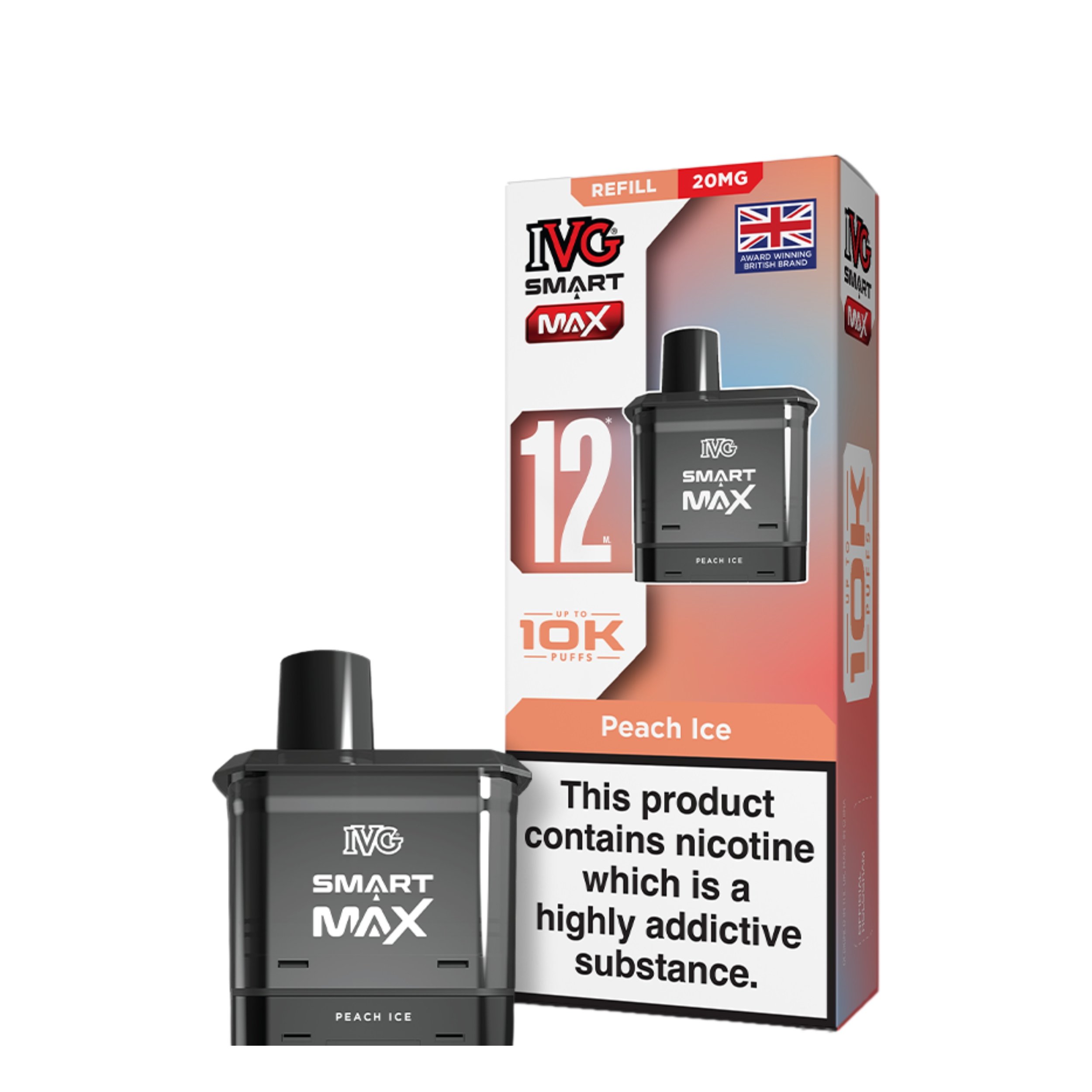The IVG Smart Max prefilled replacement pods are designed to work seamlessly with the IVG Smart Max Vape Kit. Each kit includes a 2ml prefilled pod loaded with IVG’s premium e-liquid, along with a 10ml refill container, so you’ll always have extra e-liquid on hand to keep your vape running. The prefilled pods deliver approximately 10,000 puffs and contain 20mg (2%) nicotine salt e-liquid for quick, satisfying nicotine hits.
