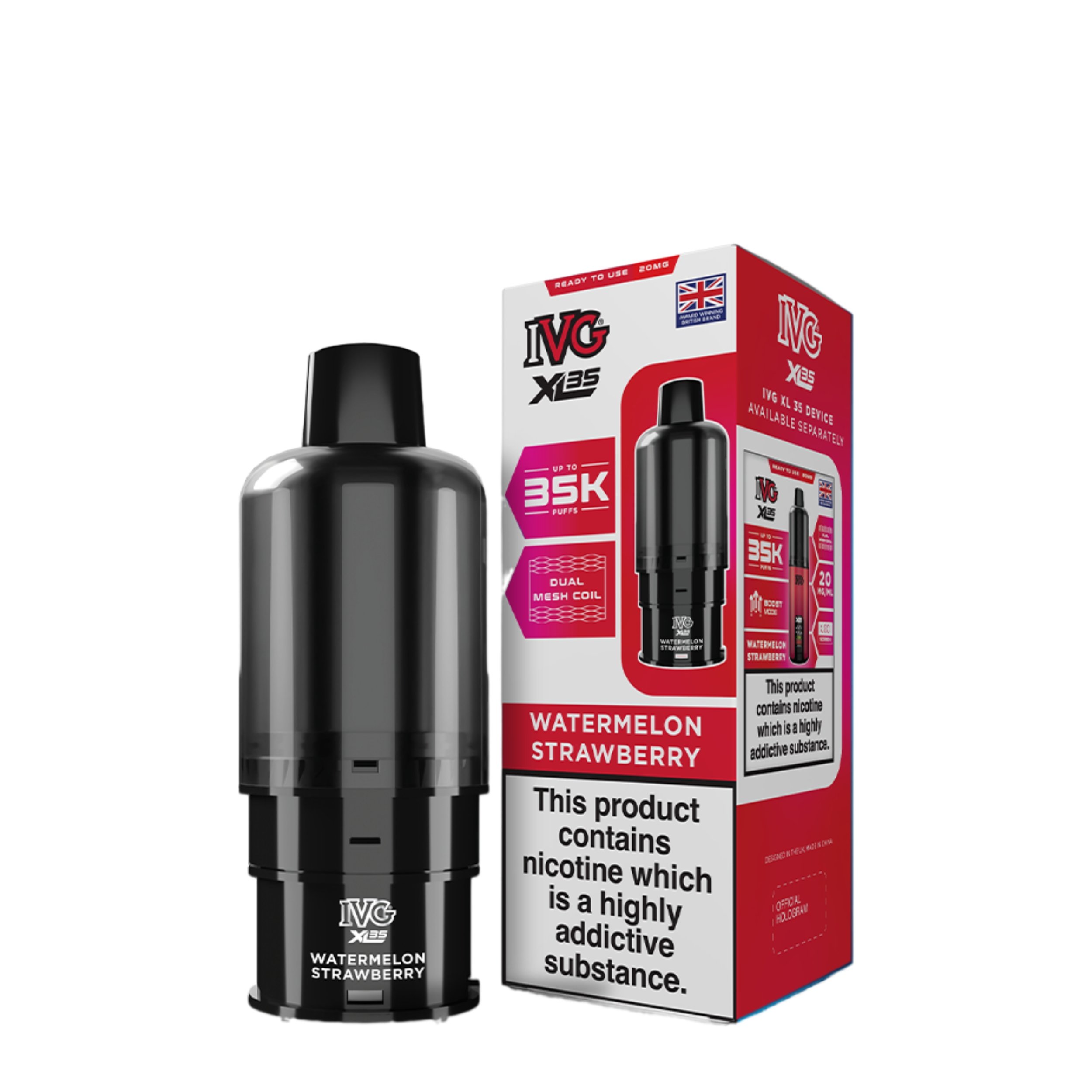 Each pod offers up to 35,000 puffs, making them an ideal choice for vapers who want convenience, reliability, and a big puff count. Filled with IVG’s premium nic salt e-liquid, they ensure fast nicotine absorption while delivering a smooth, satisfying throat hit. Designed for mouth-to-lung vaping, they closely replicate the feel of a traditional cigarette, making them perfect for ex-smokers.