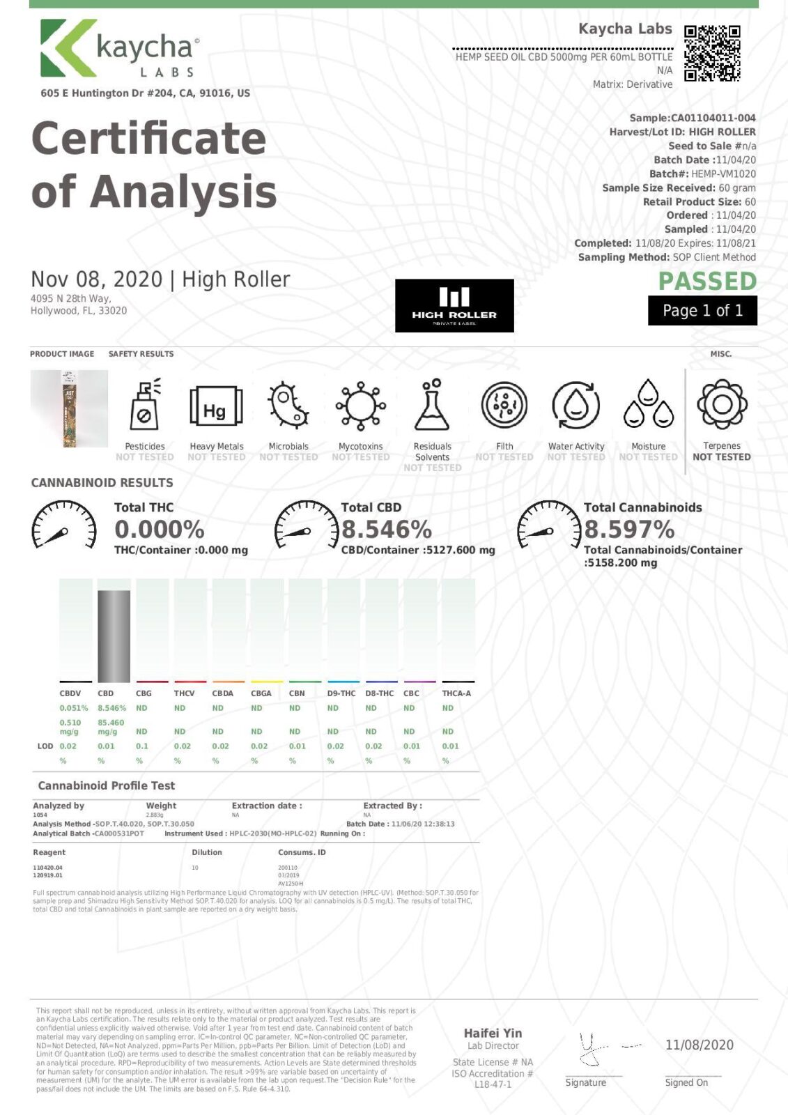 Hemp seed oil, broad-spectrum cannabidiol (CBD).
