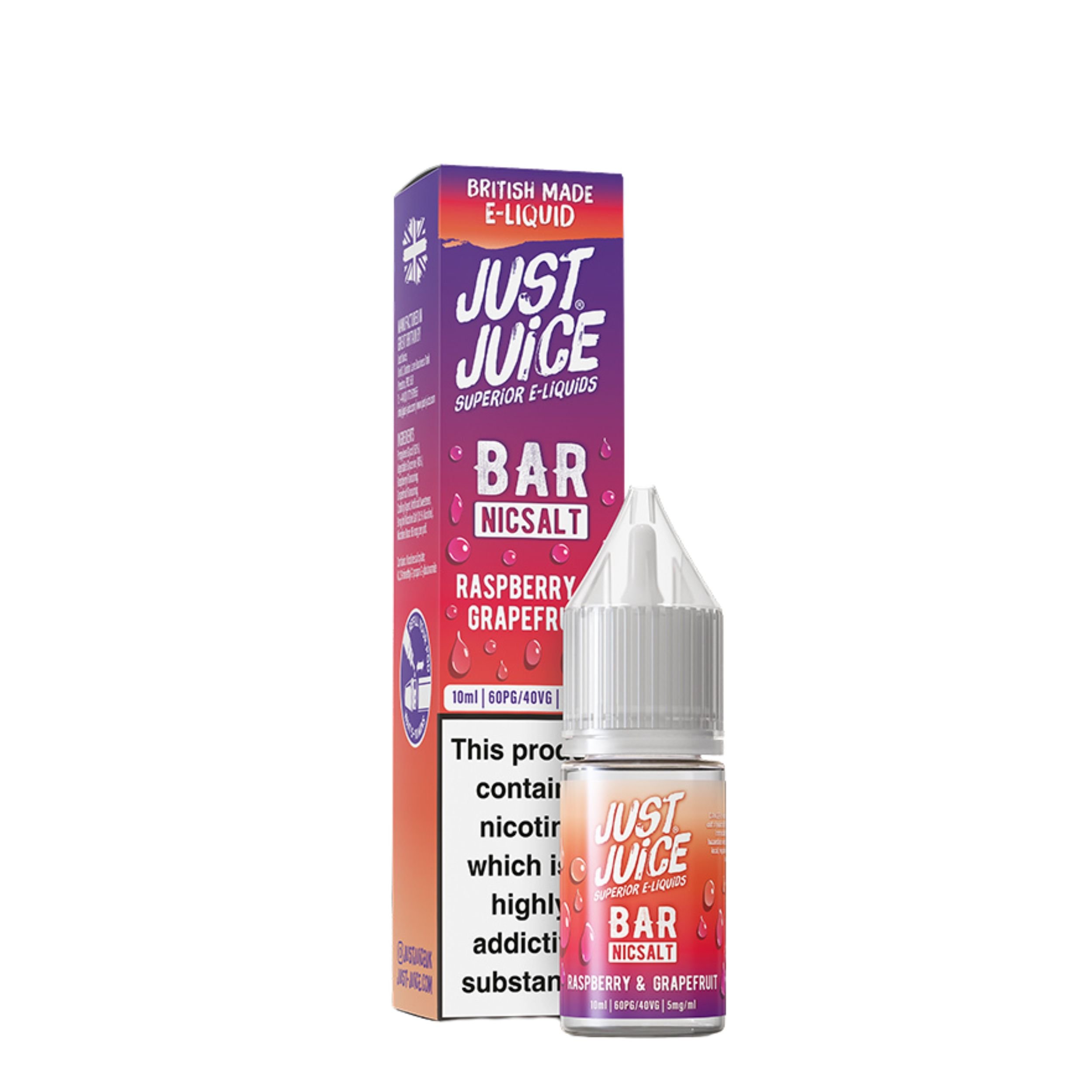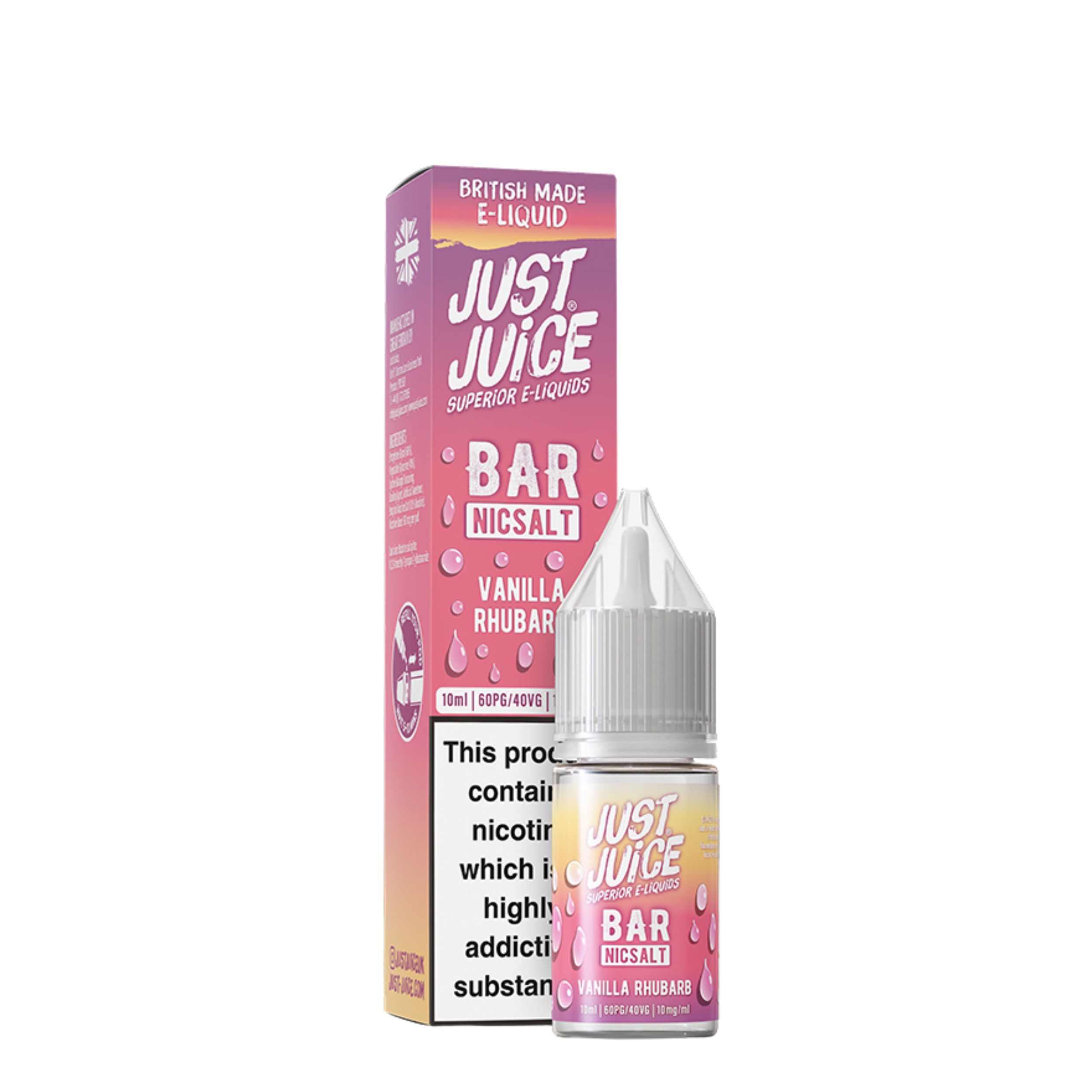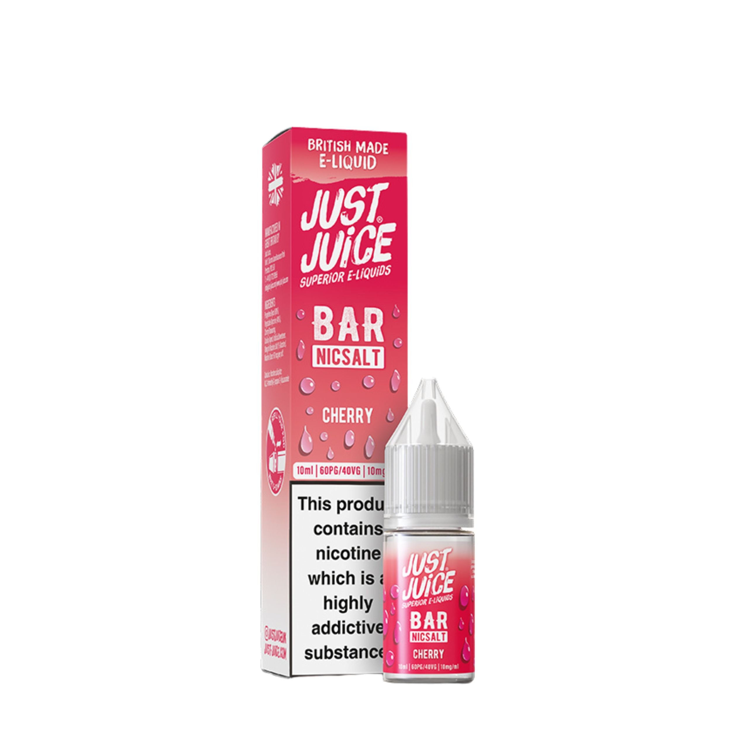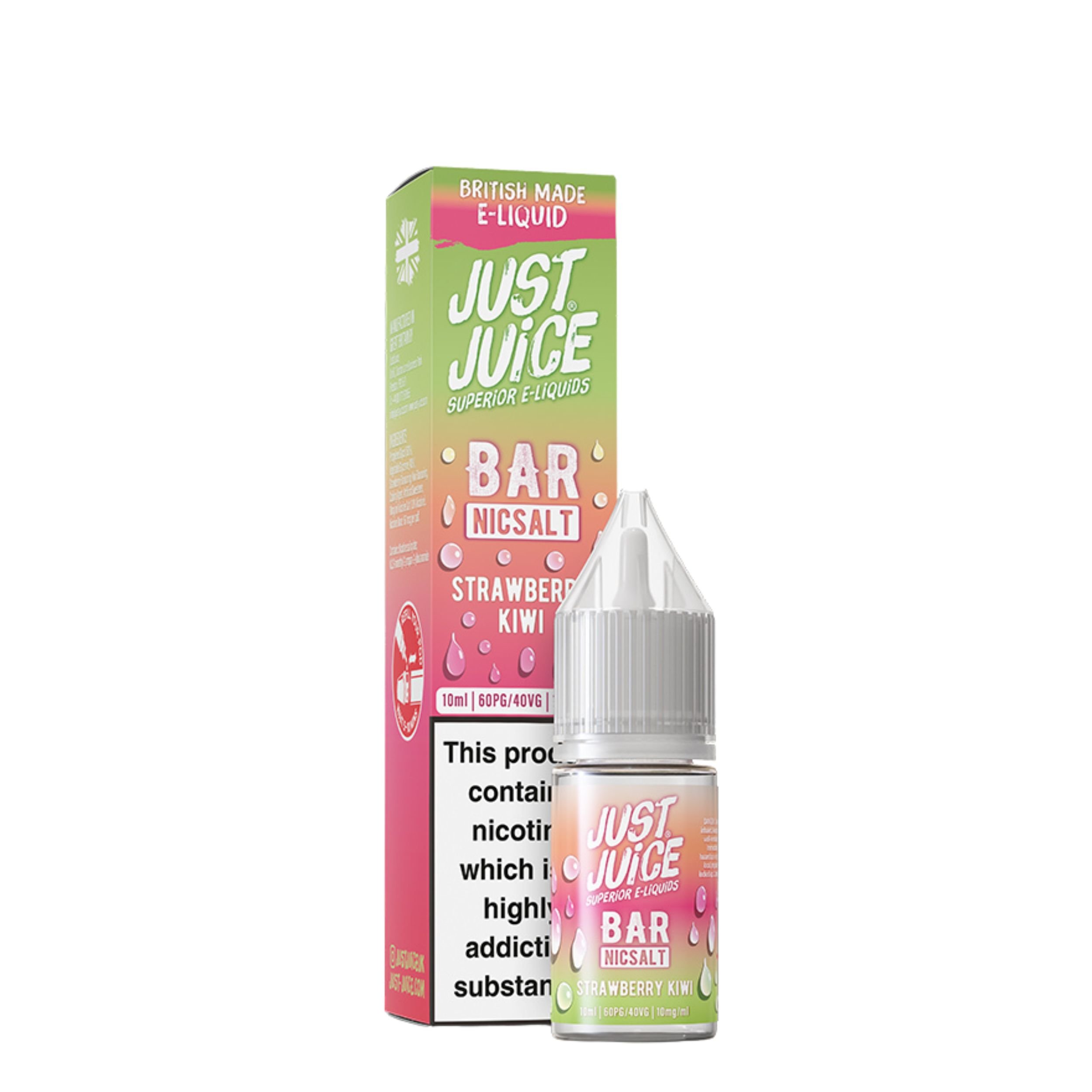 The Just Juice Bar Salts range is available in 10mg and 20mg nicotine strengths, giving you the choice to select which nicotine strength suits your smoke free journey best. They also feature a convenient drip tip nozzle that makes refilling your device mess free and hassle free, as well as being cost effective vaping solution since you are getting more for your money and it can last longer.
