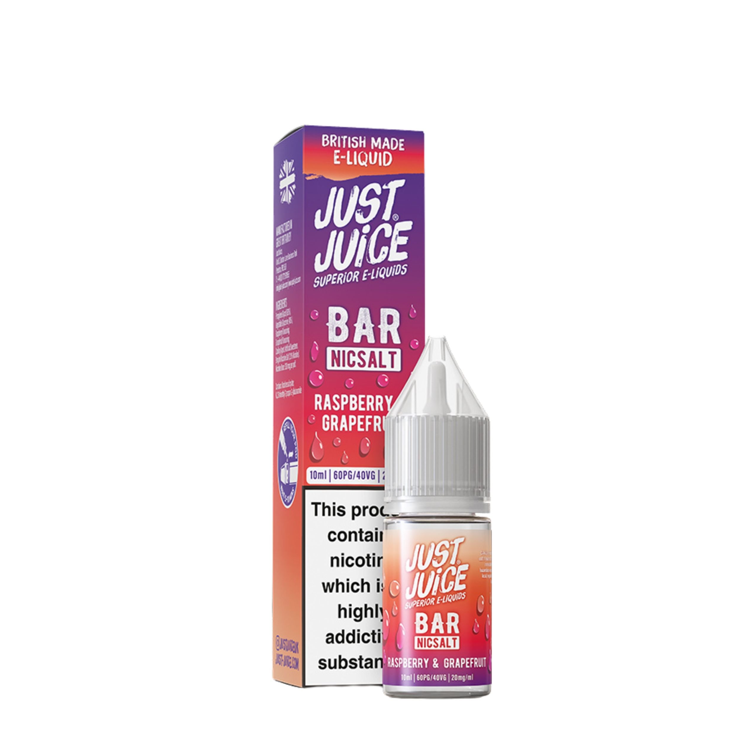 The Just Juice Bar Salts range is available in 10mg and 20mg nicotine strengths, allowing you to choose the best option for your smoke free journey. These e-liquids are ideal for ex-smokers looking for a change, as they provide a smooth delivery similar to a cigarette. Plus, each bottle features a nic salt formula, offering a stronger and faster nicotine delivery.
