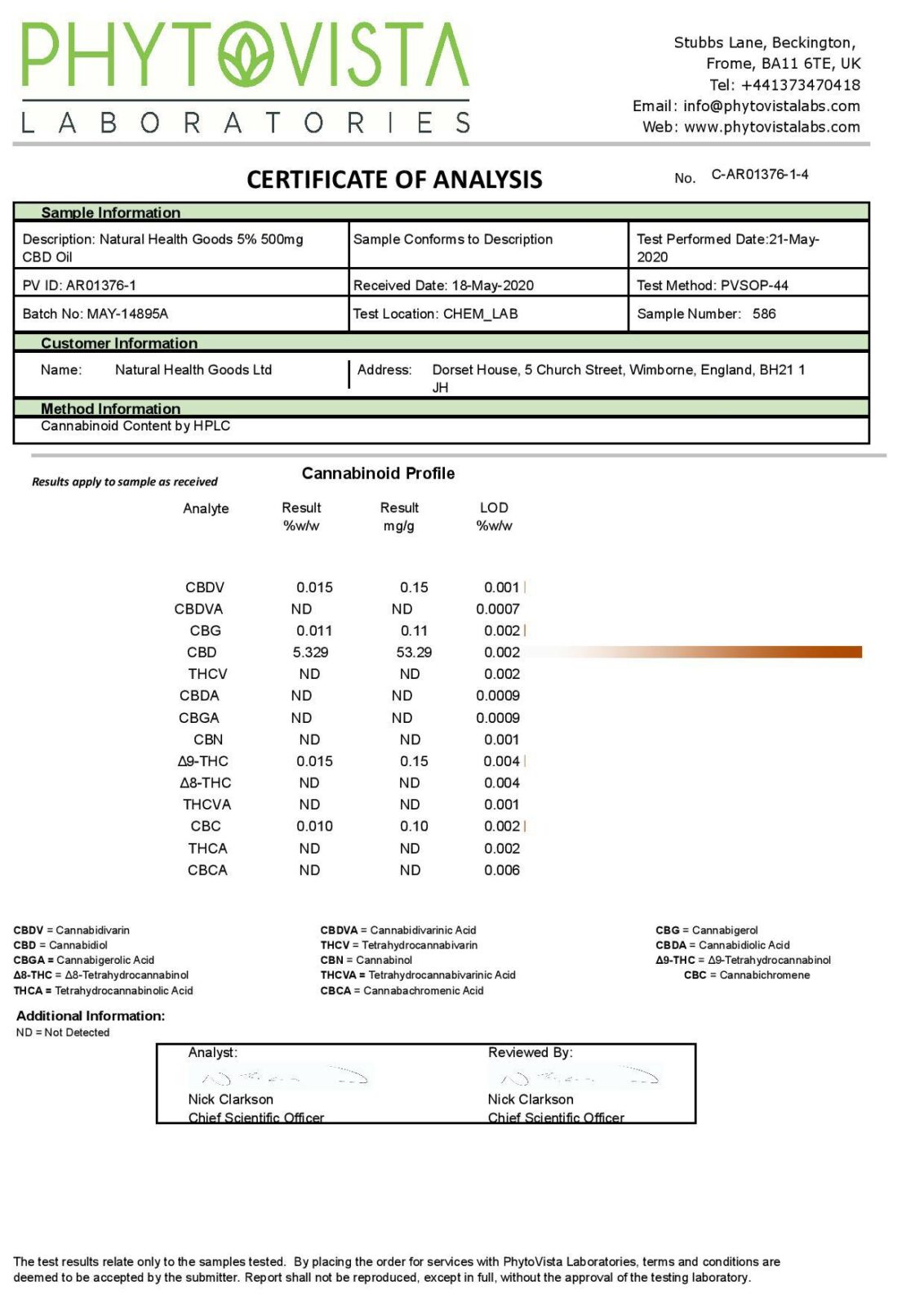 – The 500mg CBD Oil (5%) is made from the whole-plant extract and is rich natural terpenes and phytocan nabinoids. The full-spectrum CBD extract is mixed with organic hemp seed oil and provides a true entourage effect.