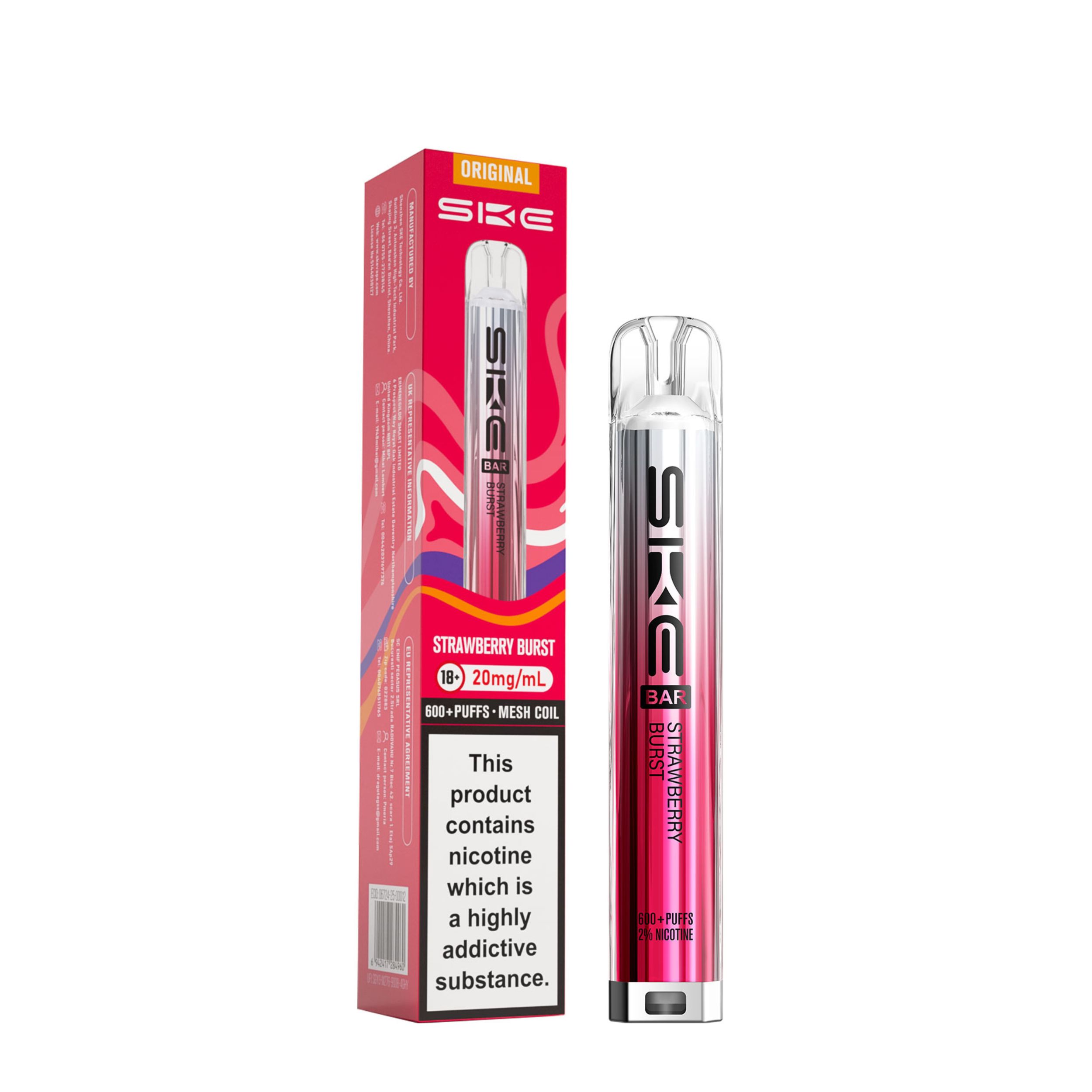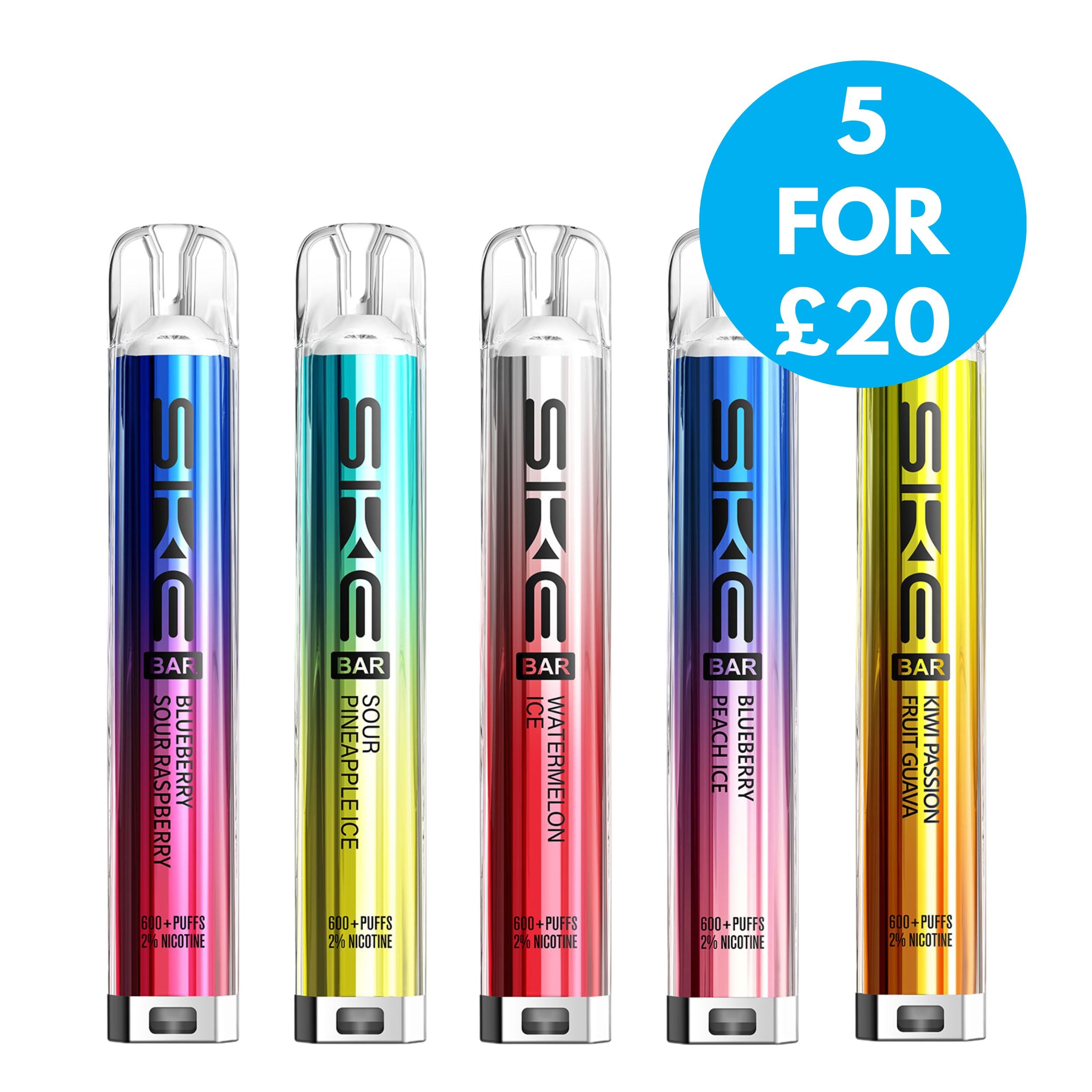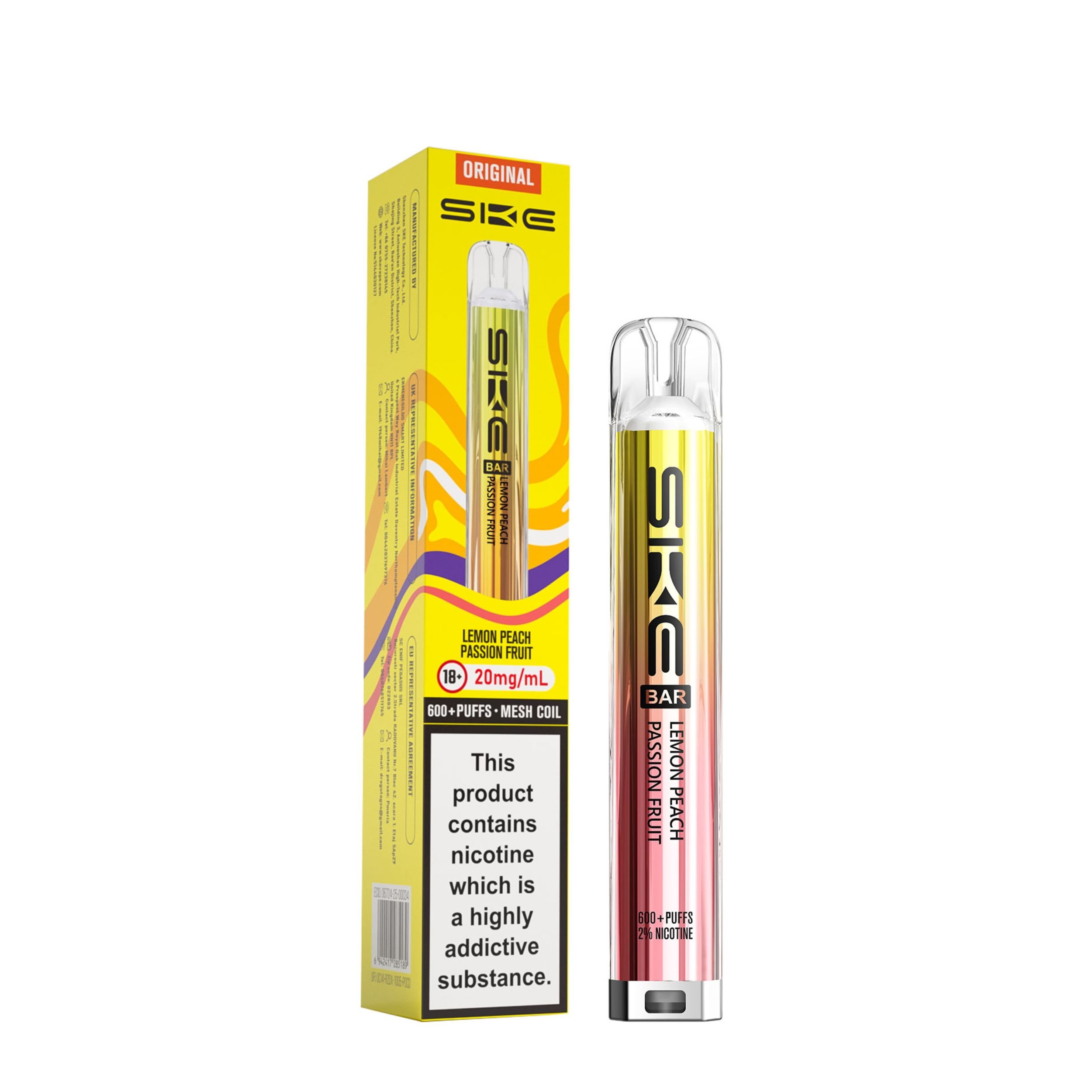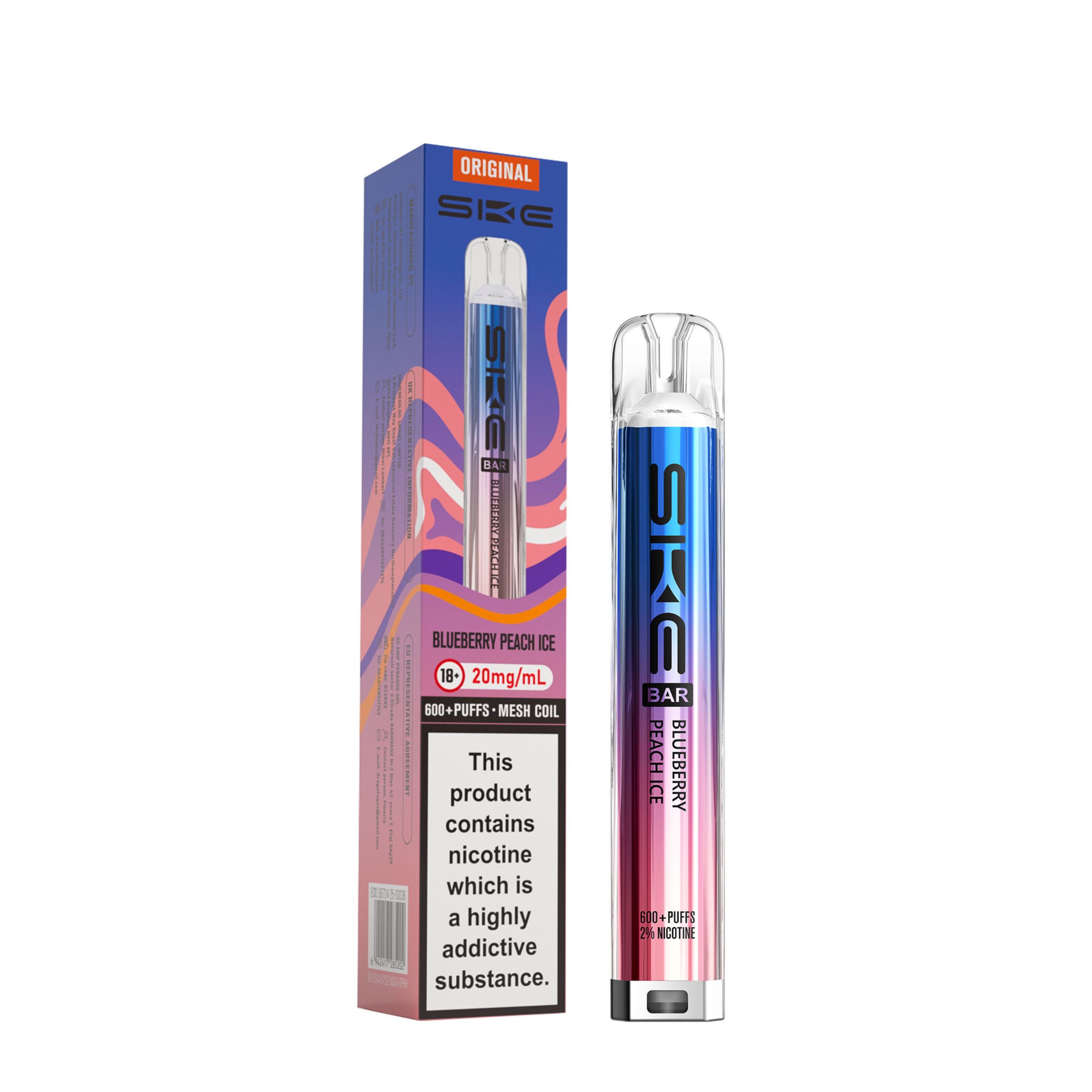 Each kit comes with a 2ml prefilled pod and the SKE Crystal battery device. Once the 2ml pod has run out, simply click the two buttons at the bottom of the device and slide the old pod off, then slide a new SKE Crystal Bar 600 pod on. This kit is a great user friendly vape, best suited to beginners looking to transition from smoking as well as regular vapers. It’s a compact device that is easy to use on the go and is also discreet.