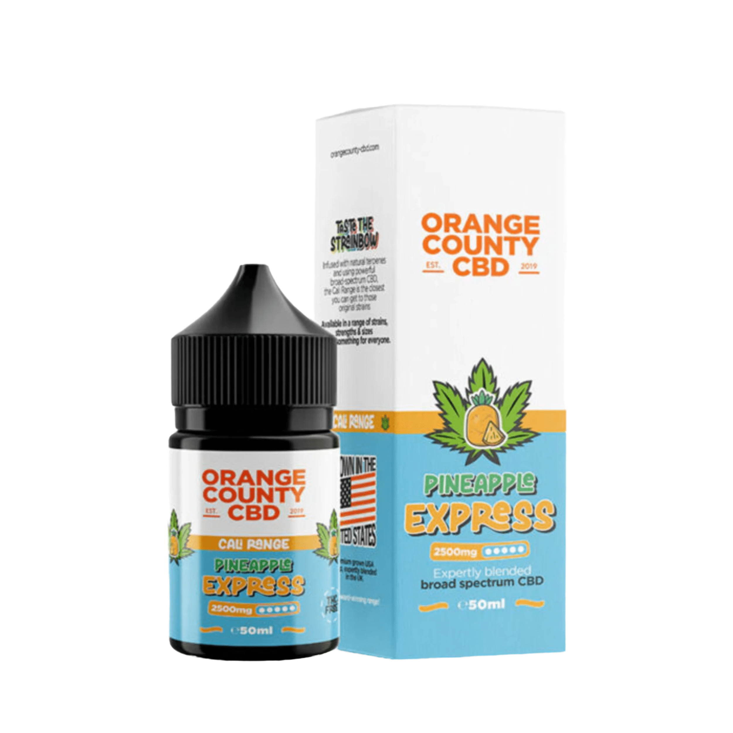 The Orange County CBD Cali Range 2500mg e-liquid is an excellent long-lasting option, especially with its generous 50ml bottle size, meaning fewer refills and less worry about running out.
