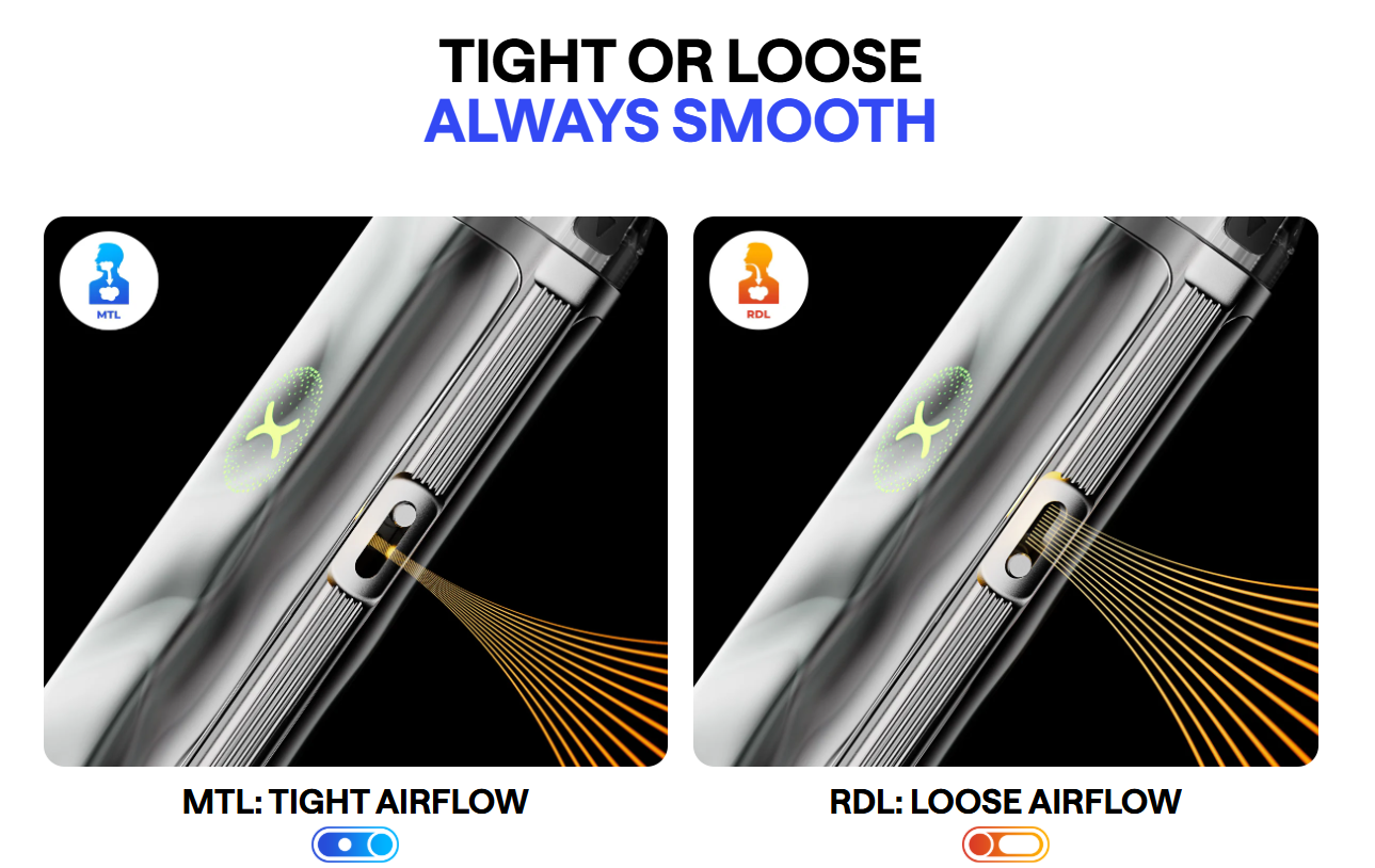 With a maximum power output of 30W, the Xlim Go 2 delivers bold, flavourful vapour. Its adjustable airflow allows you to fine tune your draw, making it easy to switch between a tight mouth-to-lung experience and a looser restricted direct-to-lung style.