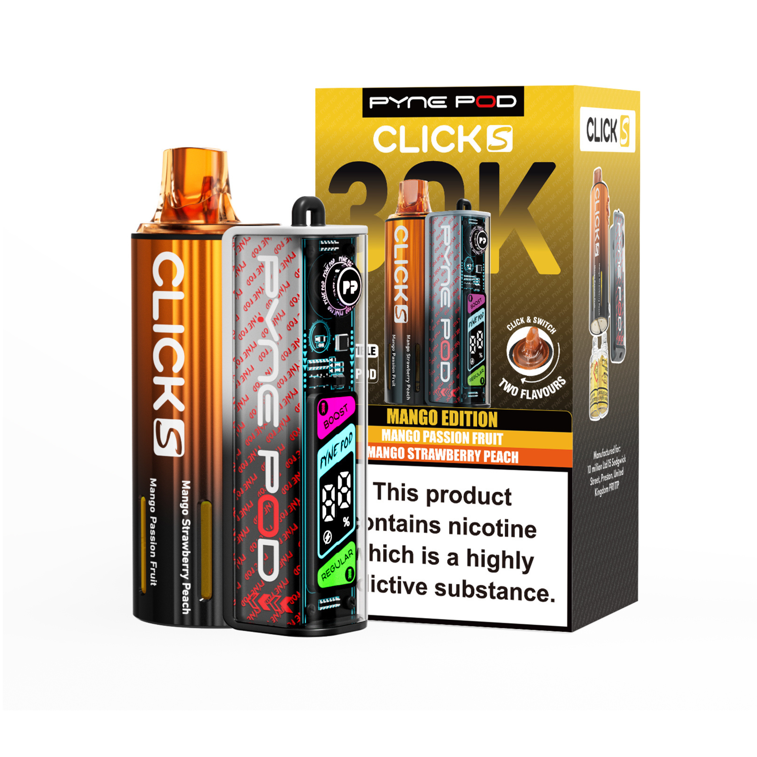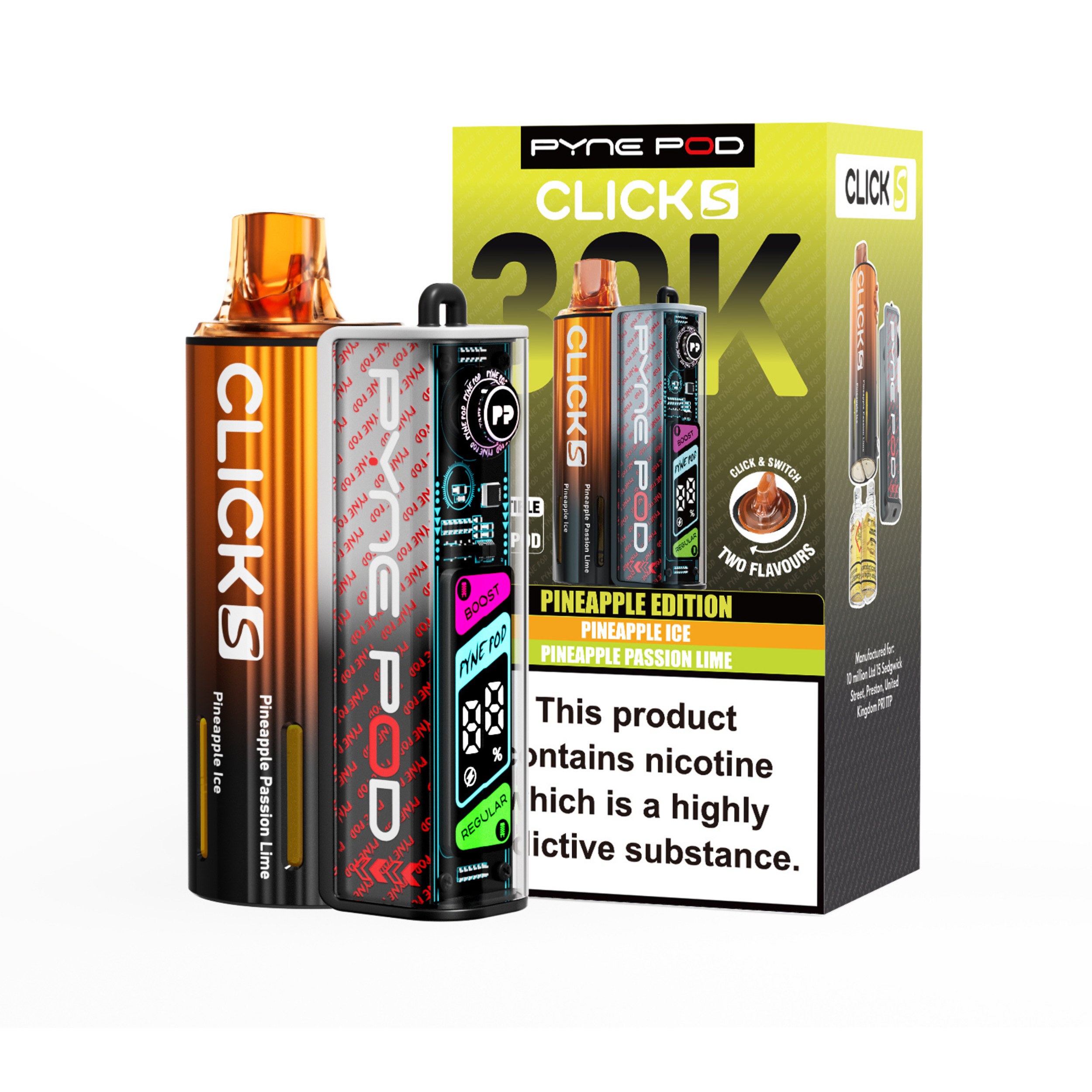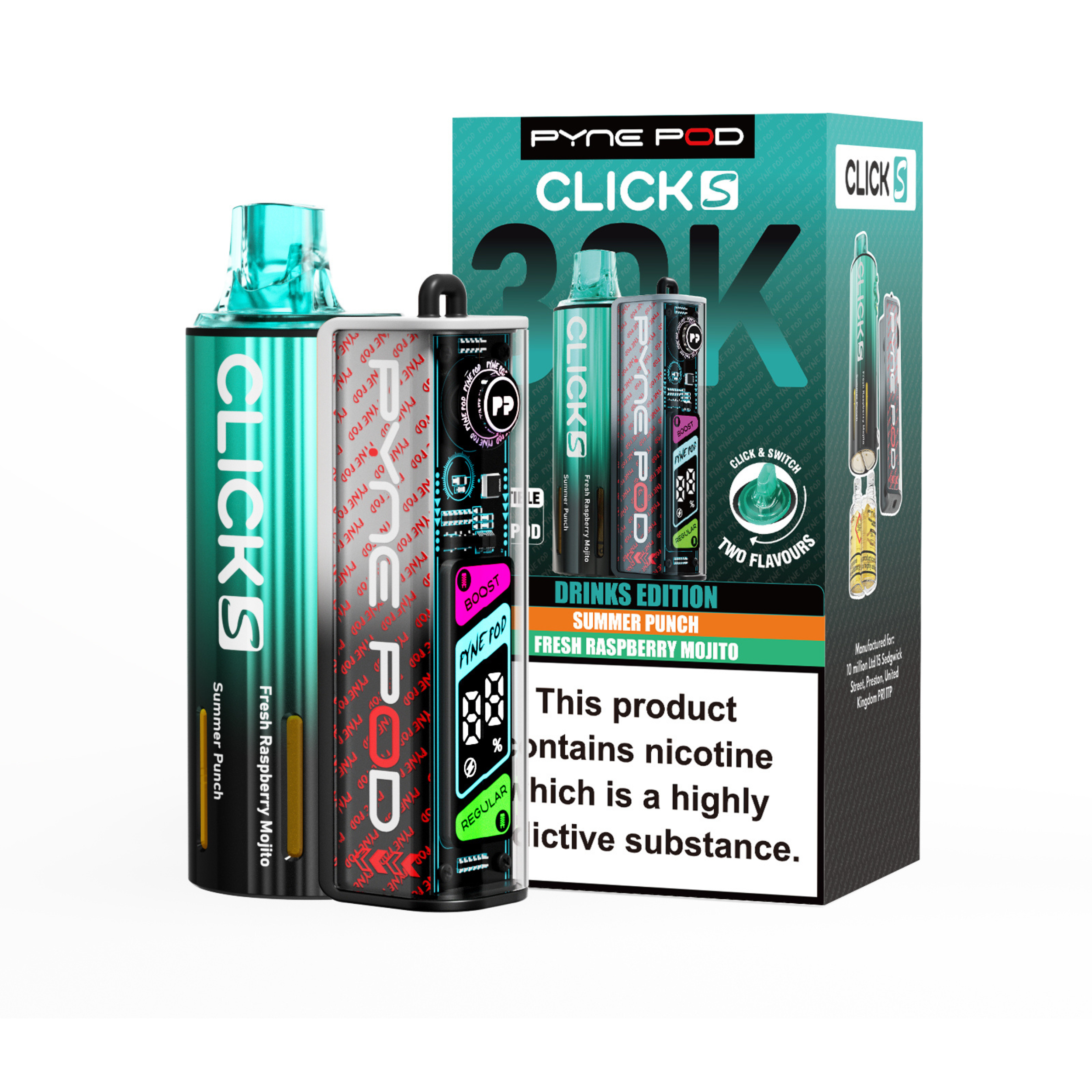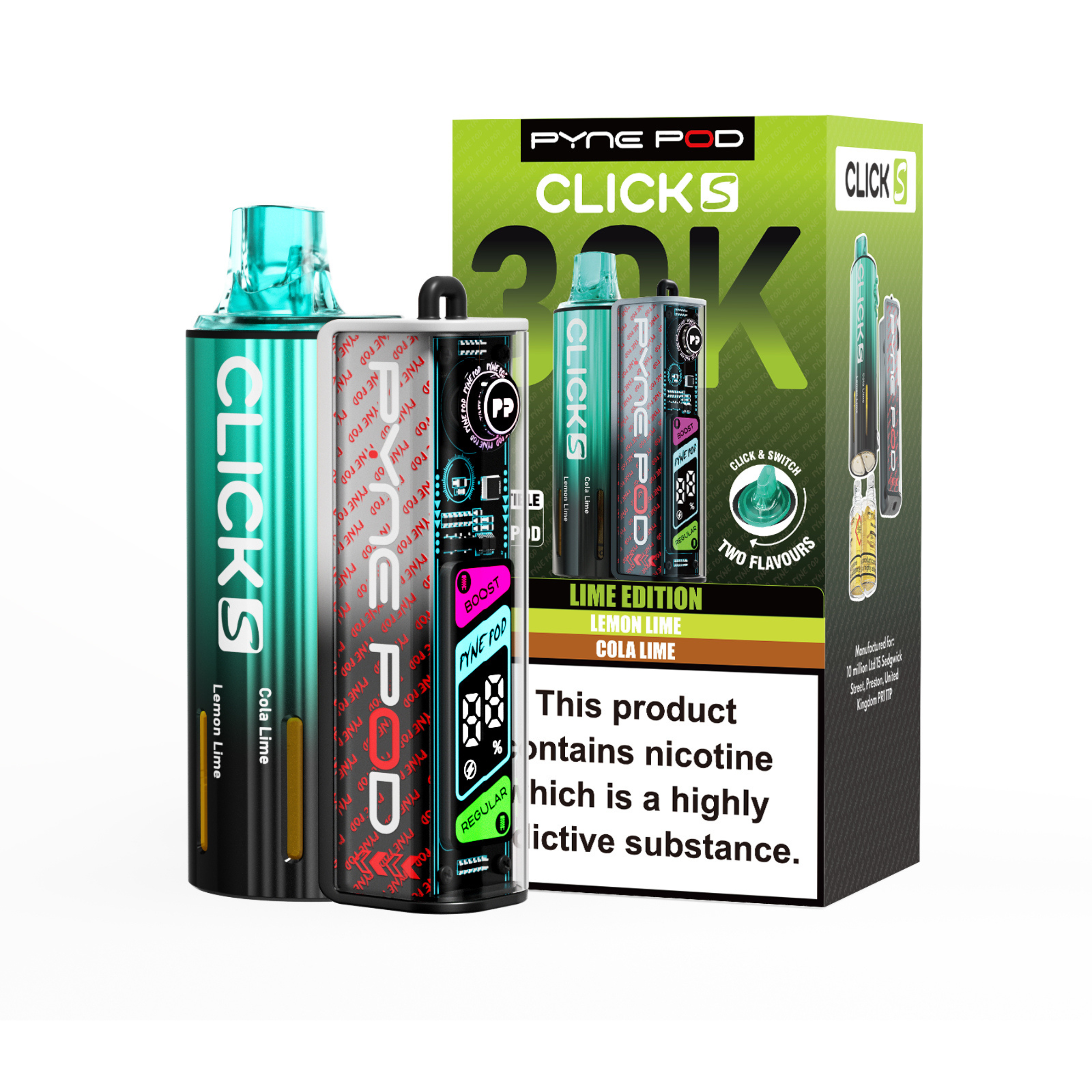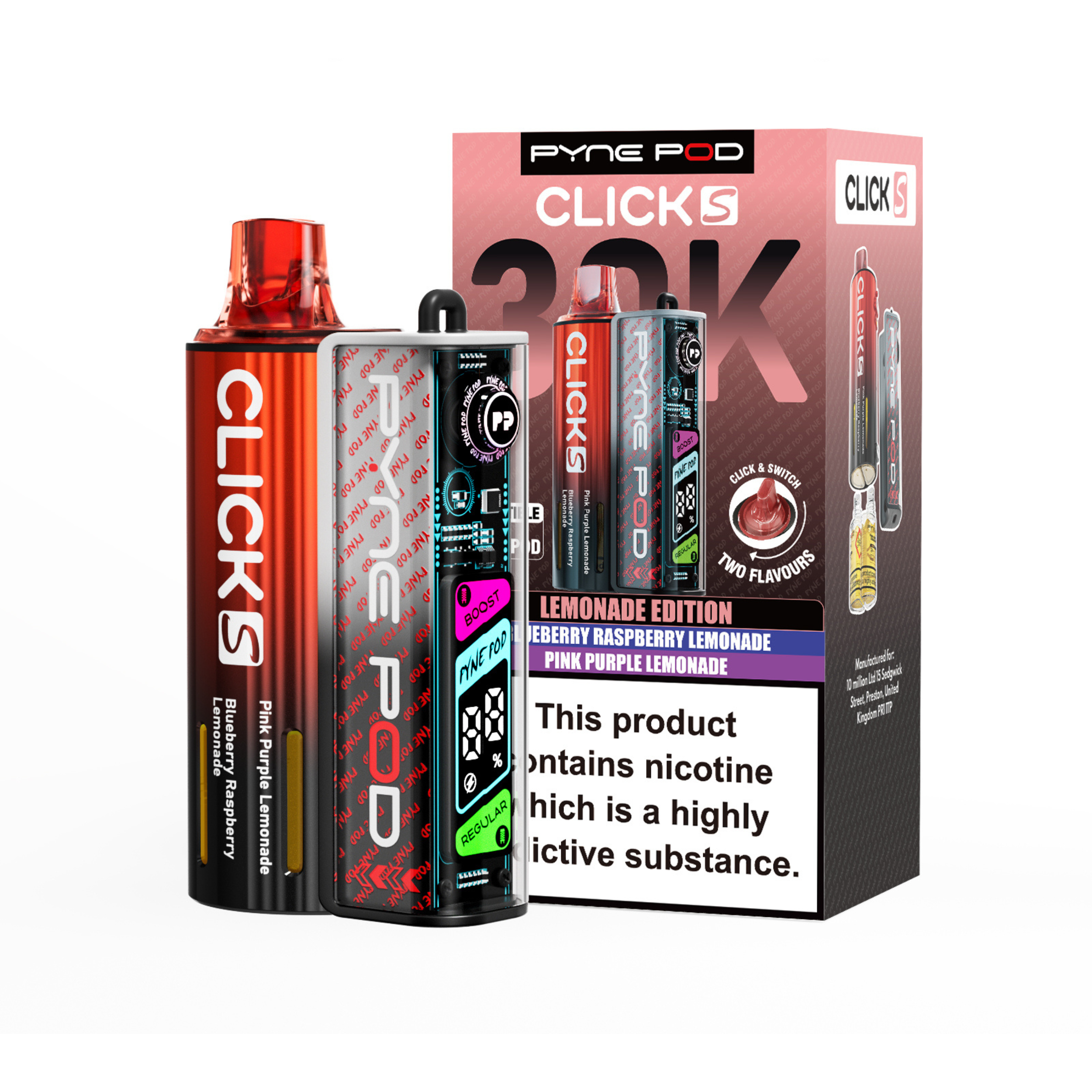 The Pyne Pod S 30K is available in a variety of dual-flavour editions, including Drinks, Lime, Mango, Red, and Sweet; each offering its own distinctive taste profile to suit different preferences.