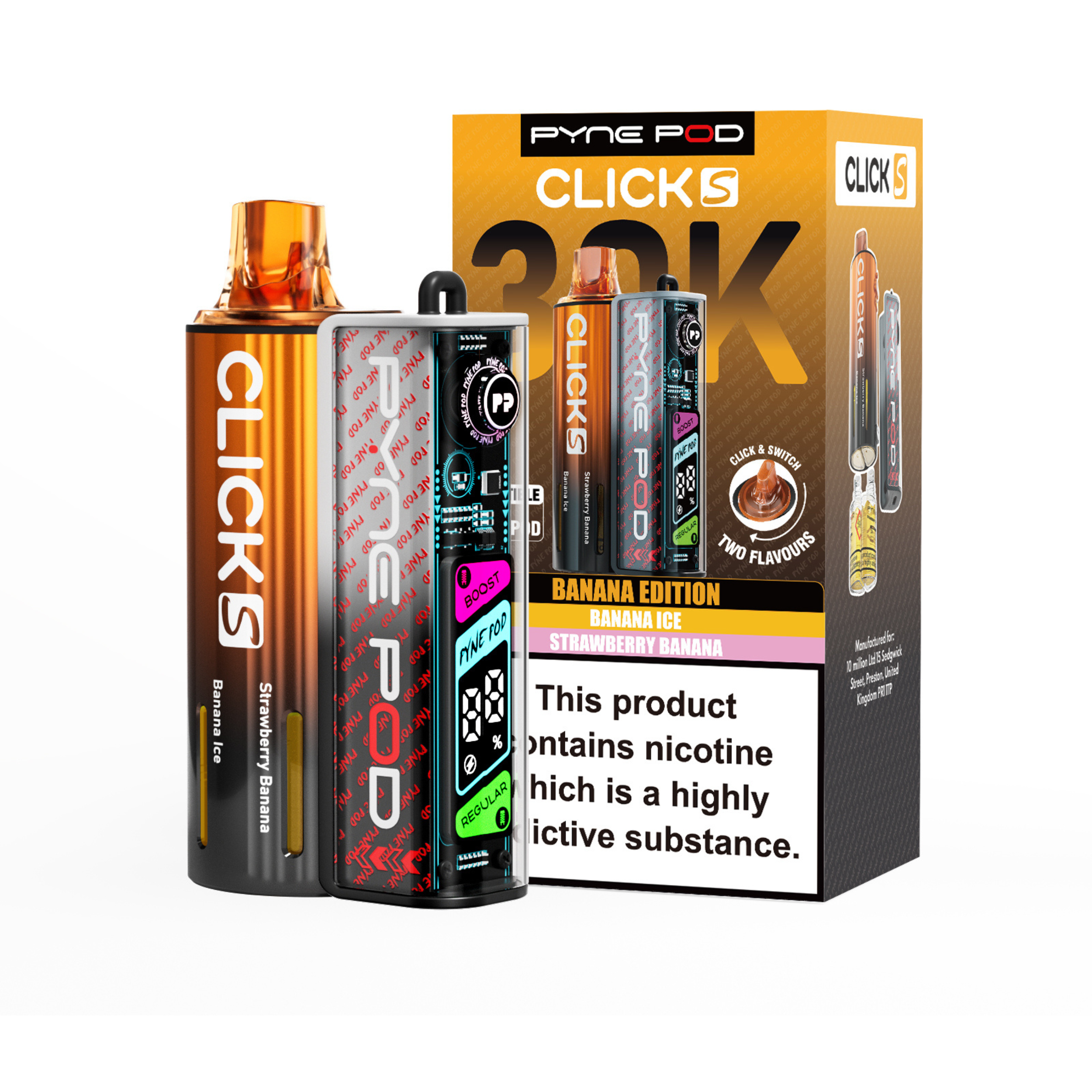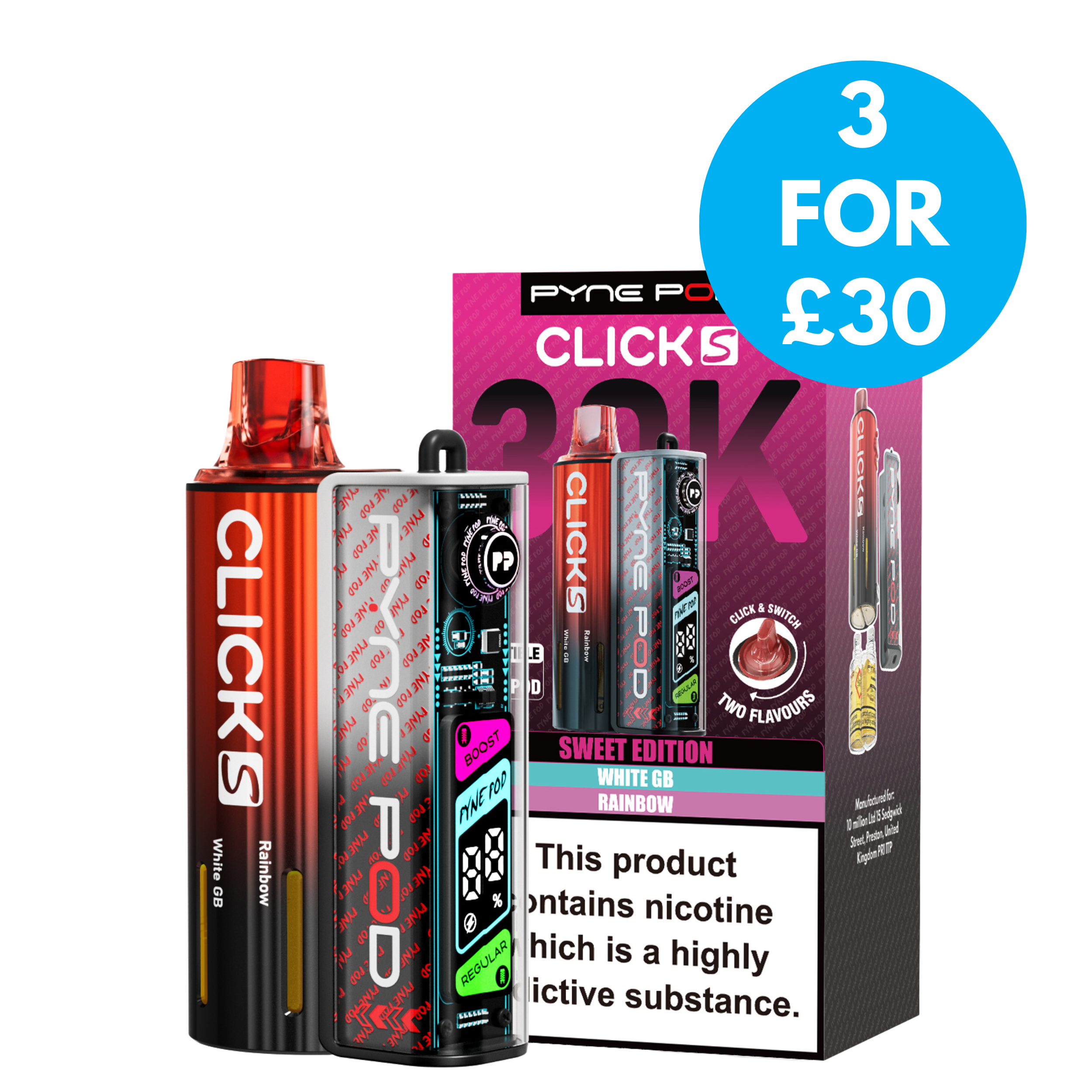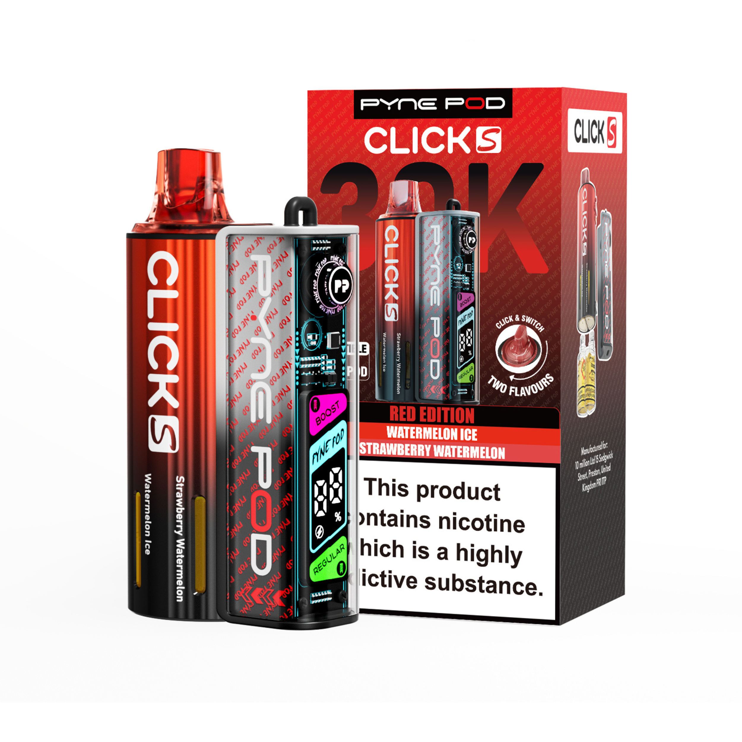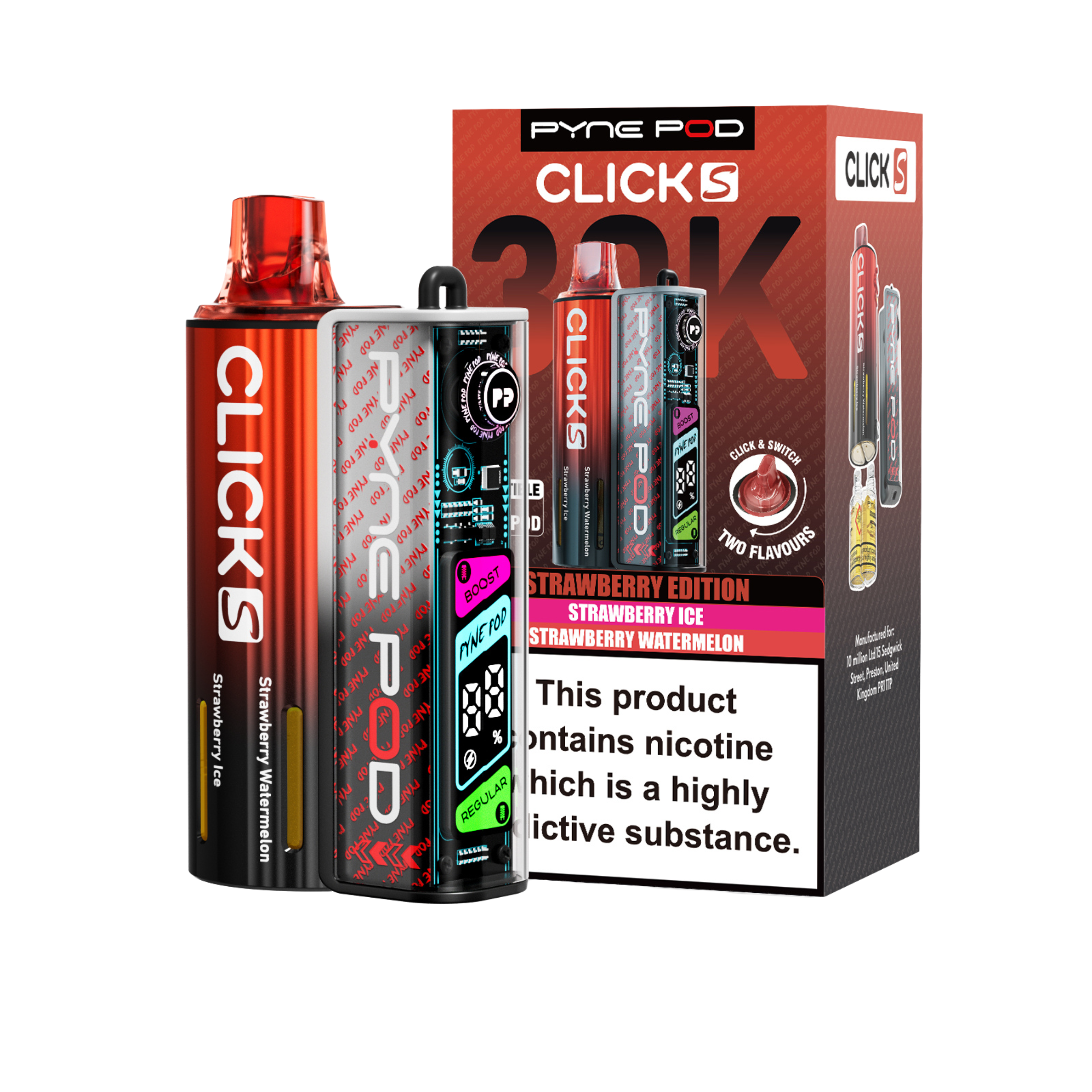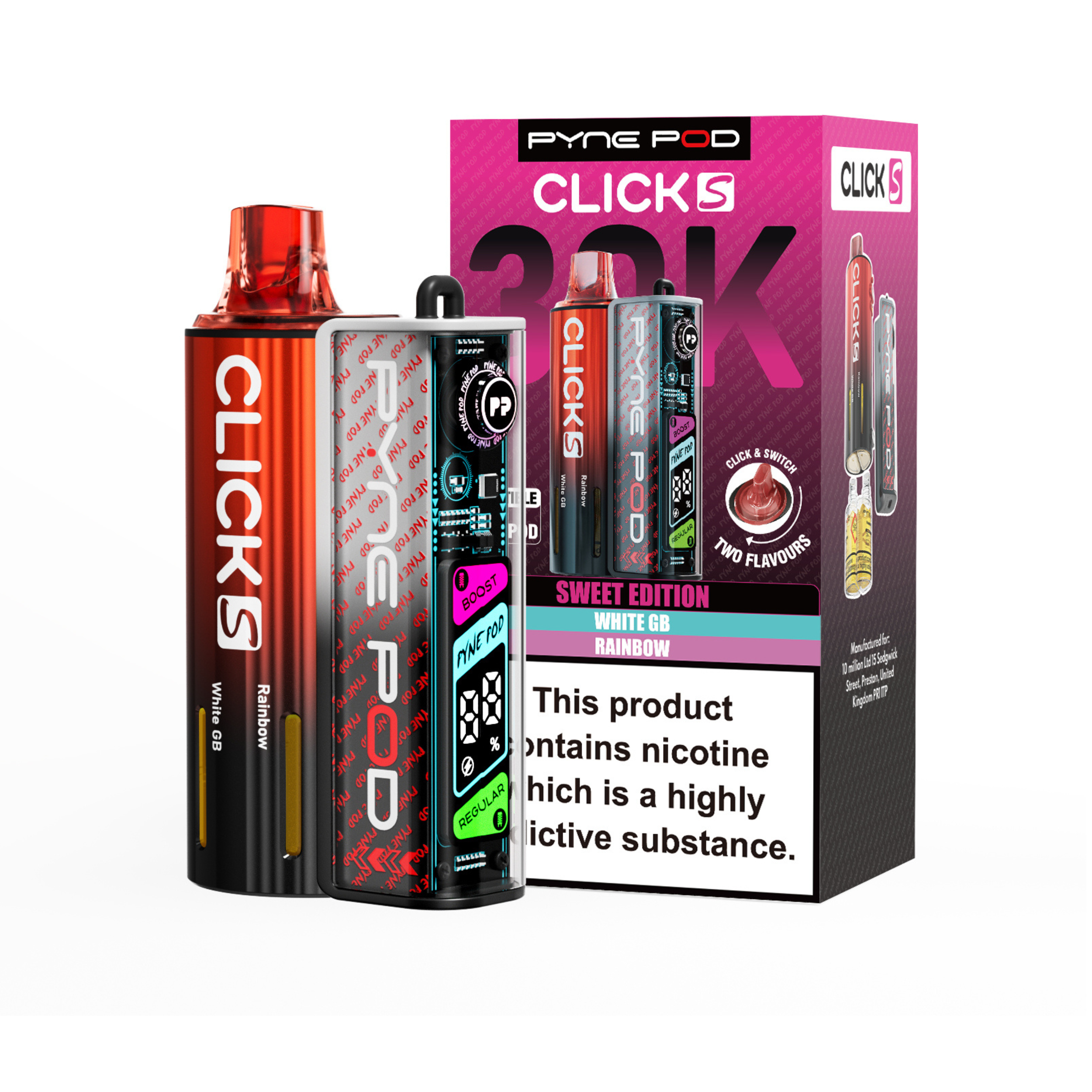 The Pyne Pod S 30K is available in a variety of dual-flavour editions, including Drinks, Lime, Mango, Red, and Sweet; each offering its own distinctive taste profile to suit different preferences.