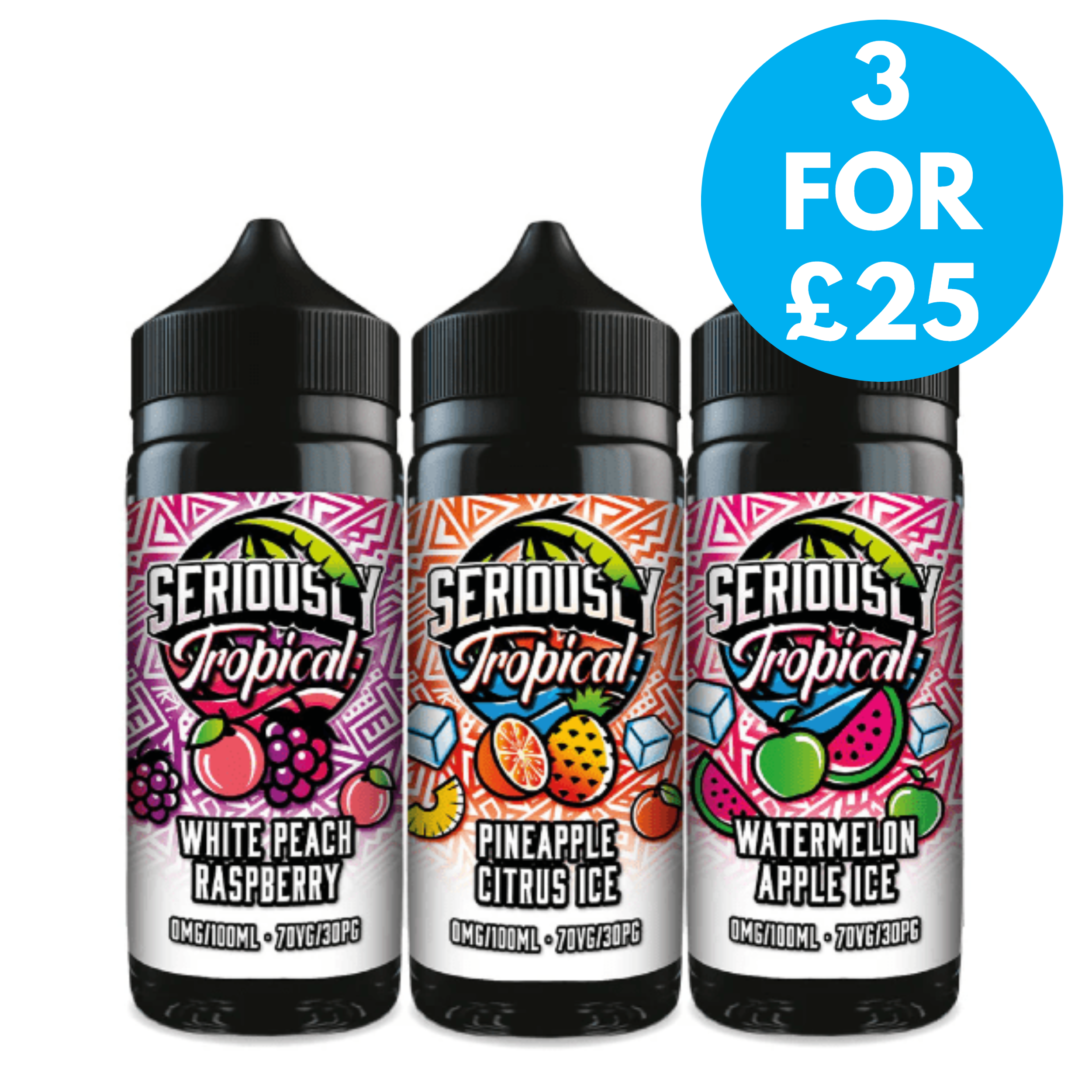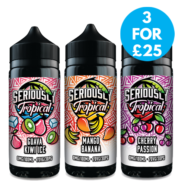The Seriously Tropical e-liquids are a range of High VG Liquids from Doozy Vape Co that work best in Sub Ohm Vape Tanks. Each flavoured bottle is a 70% VG/30% VG e-liquid with a 100ml capacity. Each Seriously Tropical shortfill bottle can be used with two 10ml nicotine shots which can be added as required. With 5 fantastic flavours to choose from you are bound to find your next everyday vape.