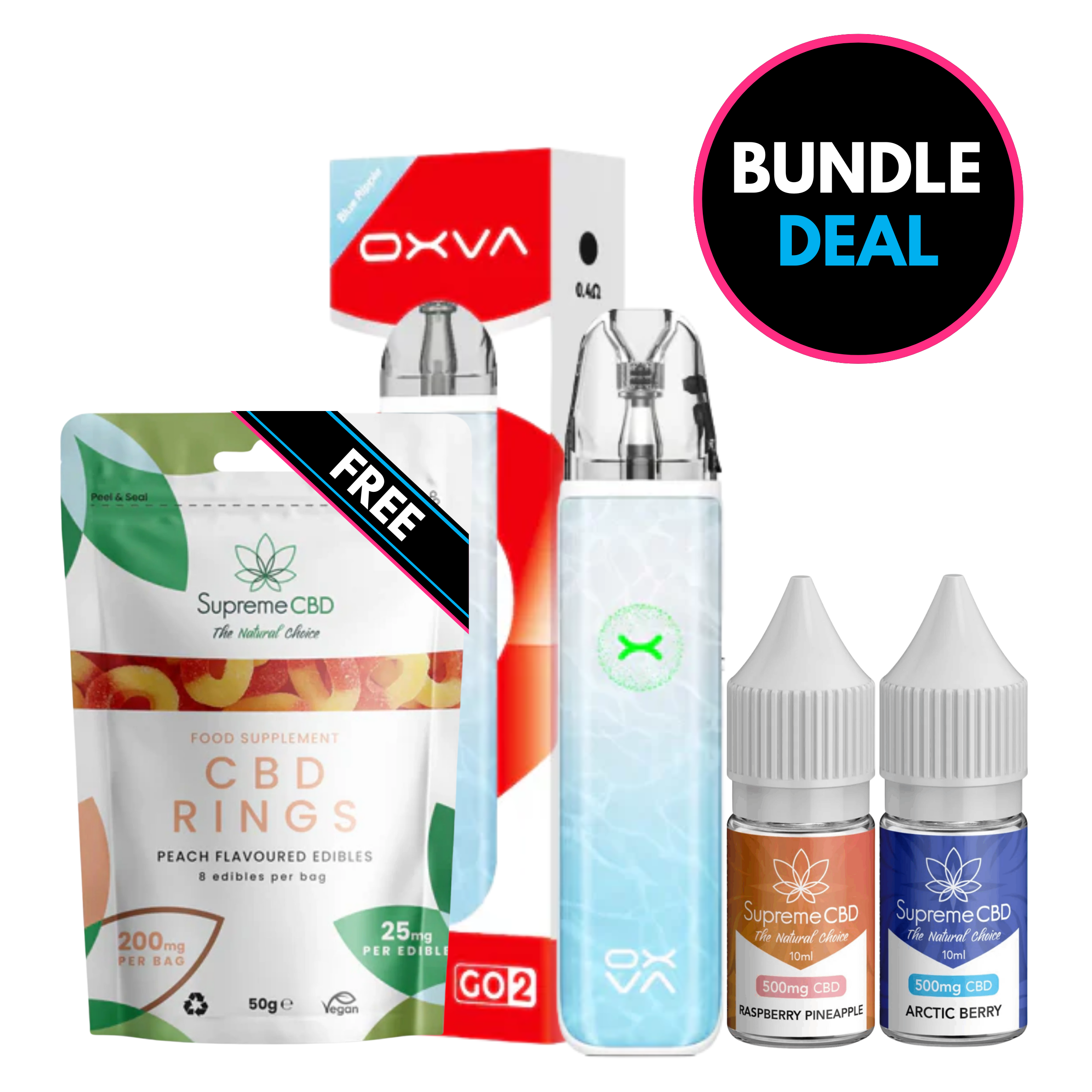 This low strength CBD bundle includes 1 x Oxva Xlim Go 2 Vape Kit, 2 x Supreme CBD 500mg E-liquids, and 1 x Free Supreme 200mg Gummy Grab Bag, giving you a great variety of high quality products. It’s the perfect starter option, offering excellent value for money, all for just £19.99.