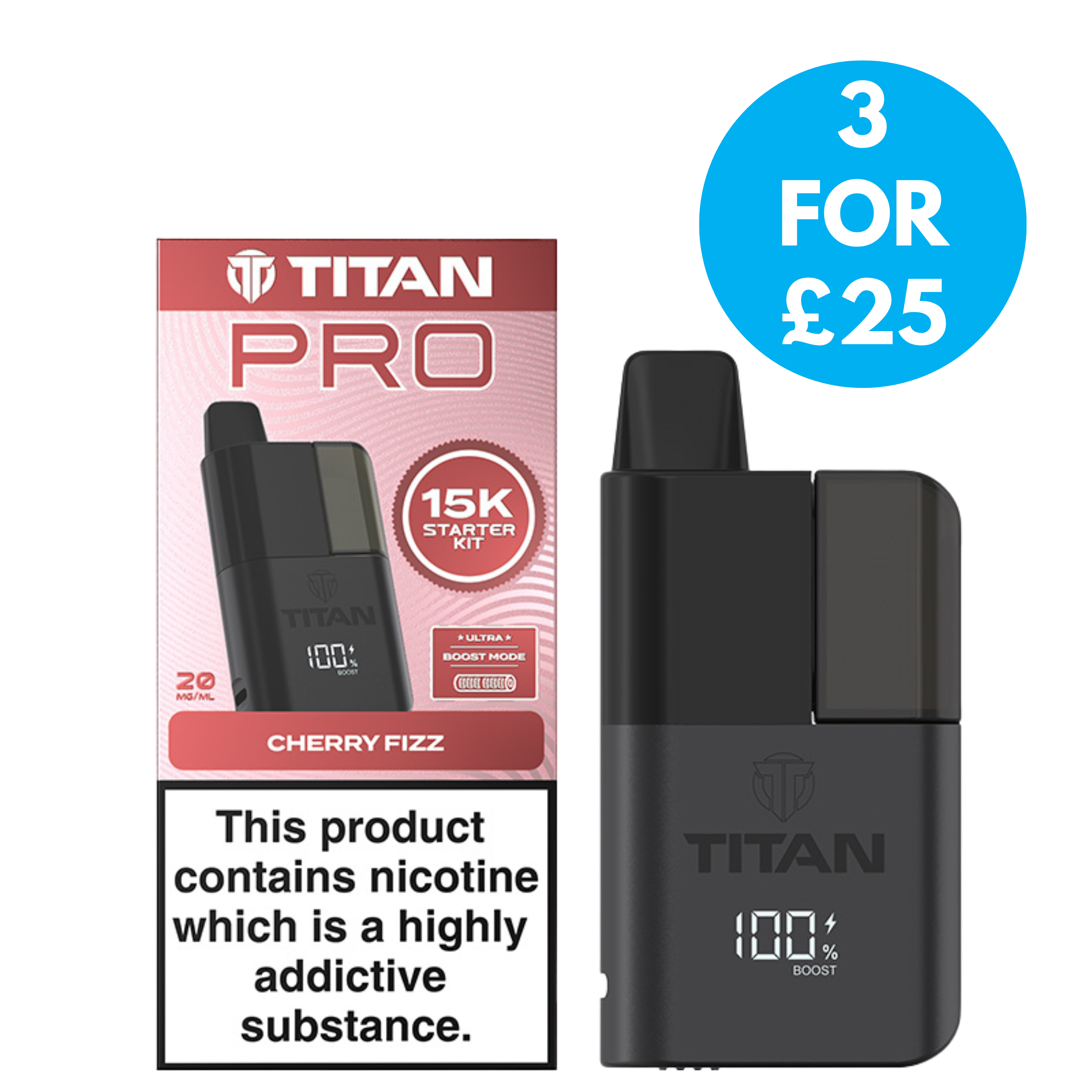 Boost Mode On The Titan Pro 15K Prefilled Pod Kit Increases Power from 10W to 13W to enhance flavour and vapour.