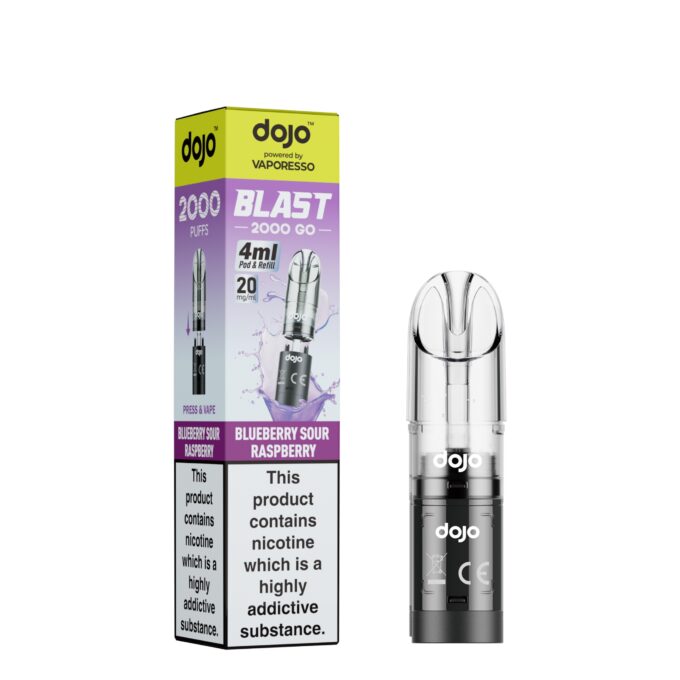 The Dojo Blast 2000 replacement pods are replacement pods for the Dojo Blast 2000 pod vape kit, with 1 x 1ml prefilled pod and 1 x 3ml refill container included in the box giving you 4ml total of liquid and approximately 2000 puffs per pack. They come in a 20mg nicotine strength for quick craving relief with Corex 2.0 heating coil tech for amplified flavour, cloud production and coil longevity. The Corex 2.0 mesh is unique to Vaporesso’s products, and can be found in all of their prefilled pod devices and in their standard replacement pods for refillable vape kits.