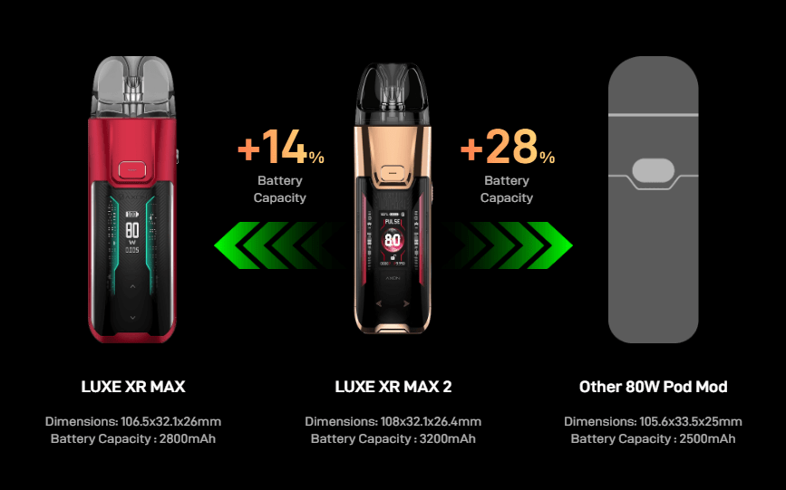 The Luxe XR Max 2 kit comes equipped with a powerful battery that delivers 14% more power than the original Luxe XR Max, all without increasing its size. Vaporesso have managed to maintain the kit’s sleek, compact design while extending its battery life, giving you more vaping time in a portable package.