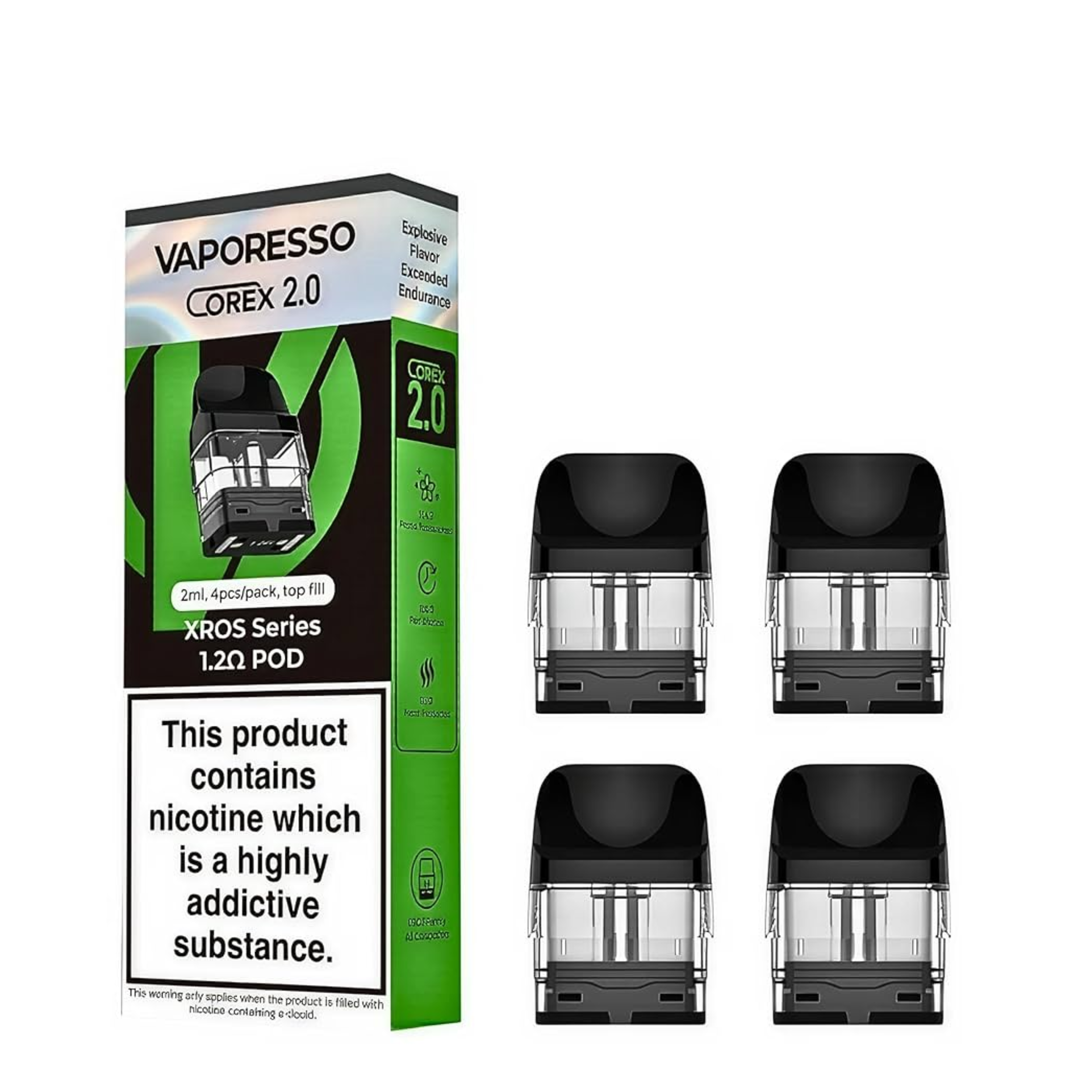The new Vaporesso Corex 2.0 pods are compatible with all Xros kits (0.4Ohms only compatible with the Xros pro, Xros 4, and Xros 4 mini). The pods have an improved heat distribution system allowing for a fuller flavour, paired with the upgraded cottons increased absorbency that ensures the cotton stays evenly saturated even when you’re running low on liquid. This helps to prevent coil burnout and extend the life of your pod. This even heating and higher cotton absorbency means that the coil should last up to 50% longer than the original Xros pods!