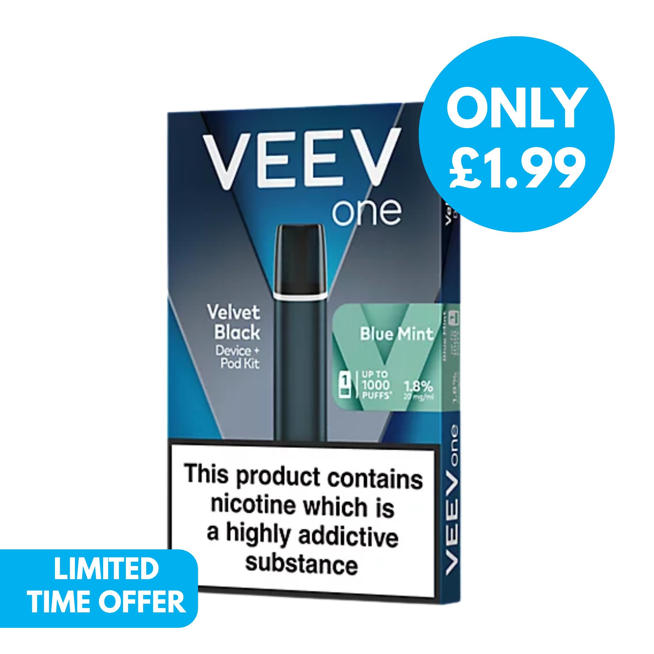 This straightforward device makes a great choice for anyone looking for a smoking alternative. Each kit includes a black velvet Veev One device and a 2ml prefilled pod, providing a couple of days of use before needing a replacement. Once the 2ml pod runs out, simply swap it for a new one. The device is compatible with both the Veev One Prefilled Pods and the newer Veev One X range. Each pod delivers up to 1000 puffs (approx.), although this may vary depending on your vaping style.
