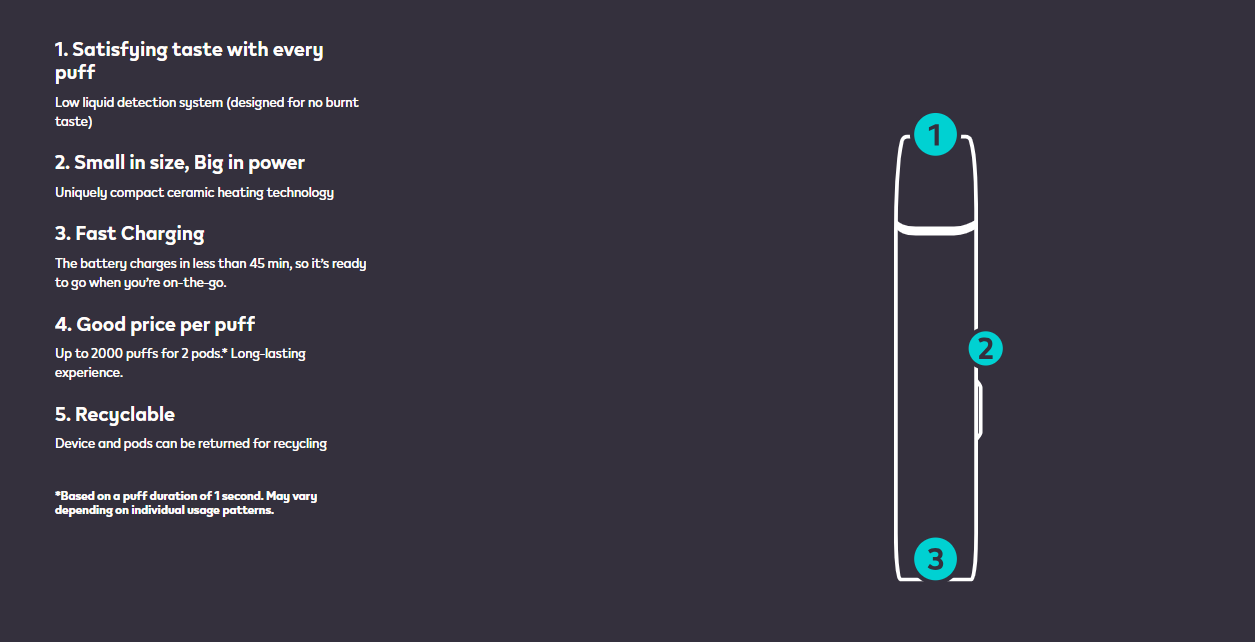 In one pod is a sweet yet minty flavour that’s cooling, and in the second pod is a classic earthy tobacco flavour.