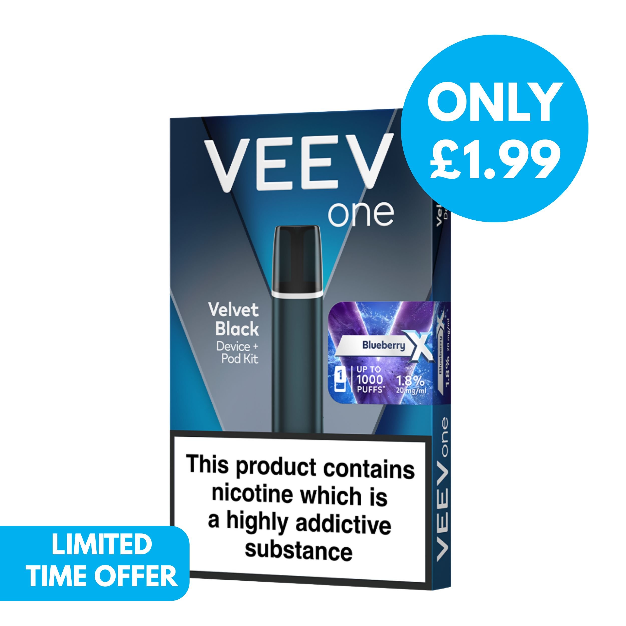 Compact and simple, this device is ideal for beginners or ex smokers, as it has been designed with both simplicity and performance in mind. Each kit includes a stylish black velvet Veev One device and a 2ml prefilled Veev One X pod, allowing you to vape for a couple of days before needing a replacement. Once the 2ml pod runs outm simply swap it for a new one. Each pod delivers up to approximately 1000 puffs, this can vary depending on your vaping style.