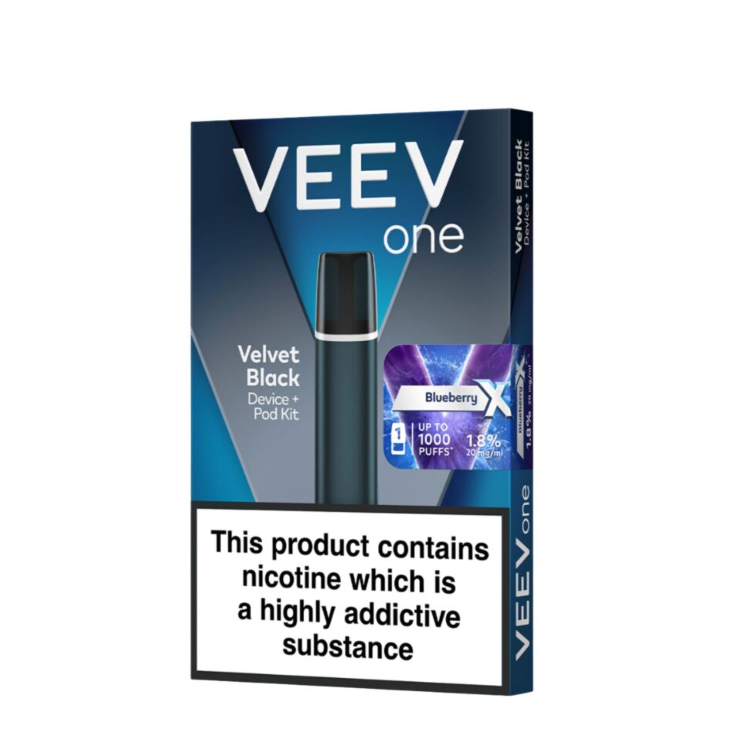 Compact and simple, this device is ideal for beginners or ex smokers, as it has been designed with both simplicity and performance in mind. Each kit includes a stylish black velvet Veev One device and a 2ml prefilled Veev One X pod, allowing you to vape for a couple of days before needing a replacement. Once the 2ml pod runs out, simply swap it for a new one. Each pod delivers up to 1000 puffs (approx.), this can vary depending on your vaping style.