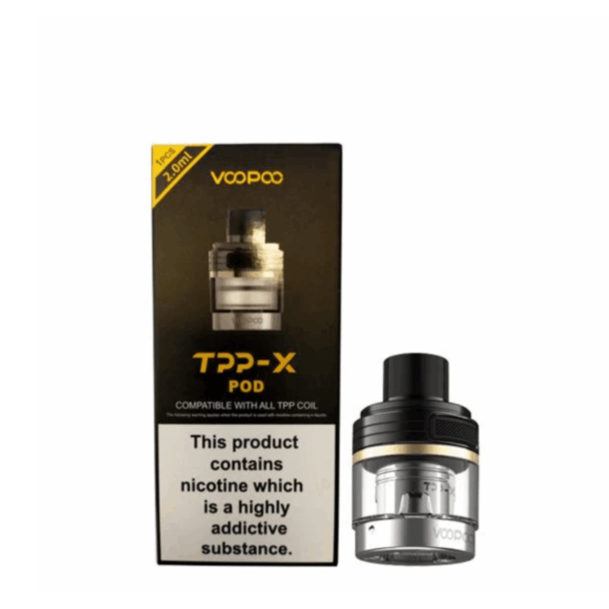 • 1 x Voopoo TPP-X 2ml Replacement Pod (Coils Not Included)